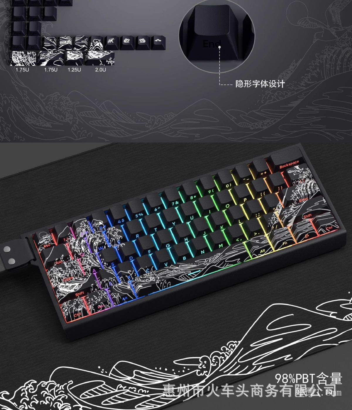 "우키요에 2.0" 키캡은 5면 승화 공예 패턴 반투명 맞춤형 키캡 측면 투명 크리에이티브를 선택합니다.스토어 가기