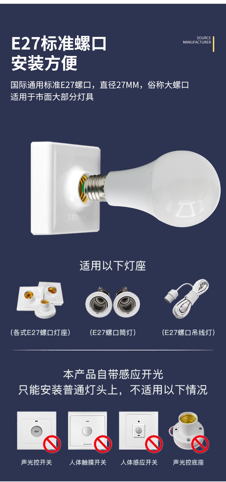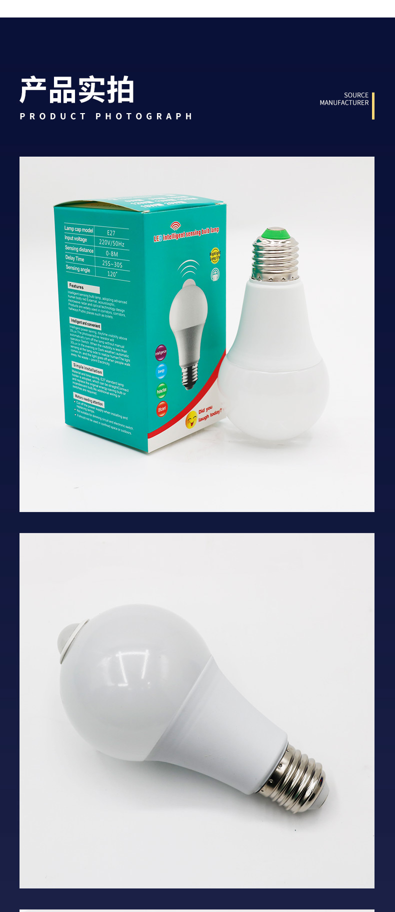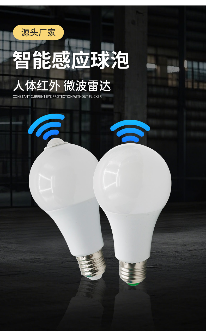 LED 레이더 인체 감지 전구 5W E27 나사형 광센서 전구 복도 조명 레이더 센서