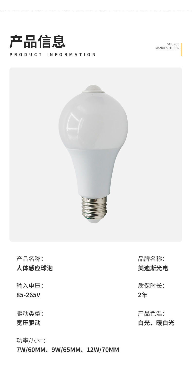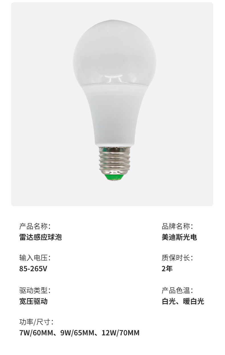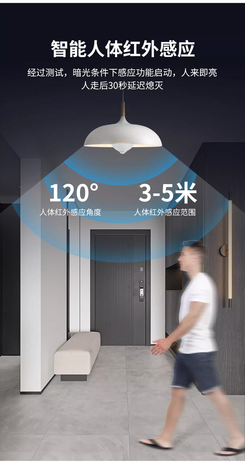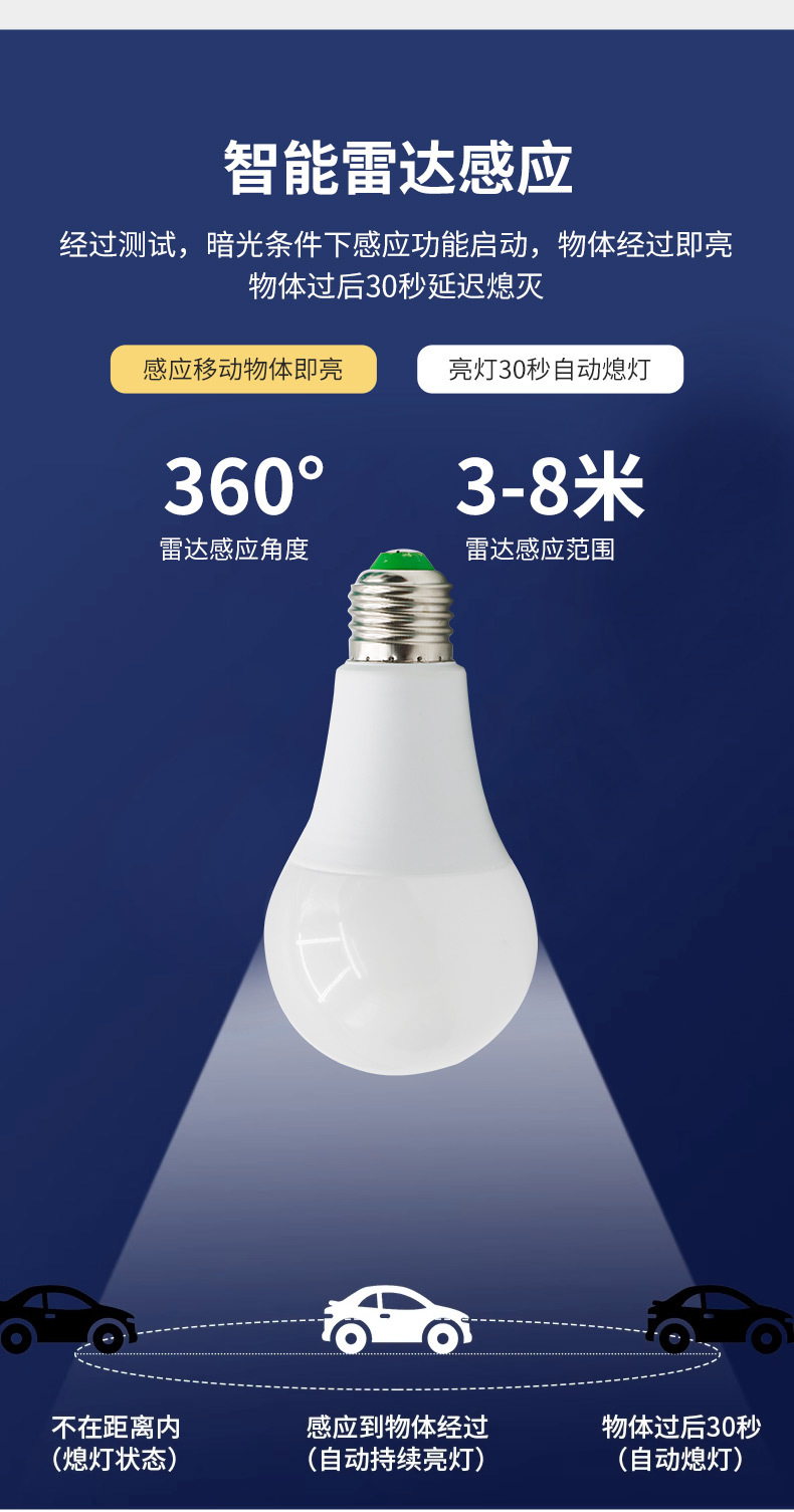 LED 레이더 인체 감지 전구 5W E27 나사형 광센서 전구 복도 조명 레이더 센서스토어 가기