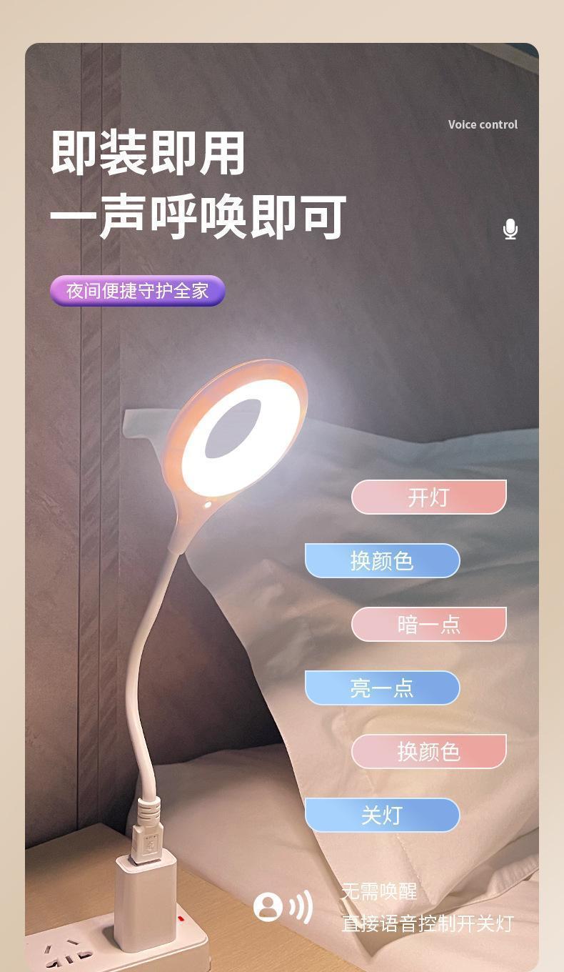 음성 제어 지능형 색상 변경 야간 조명 음성 수면 침실 USB 인터페이스 야간 테이블 램프 음성 제어 야간 조명 도매