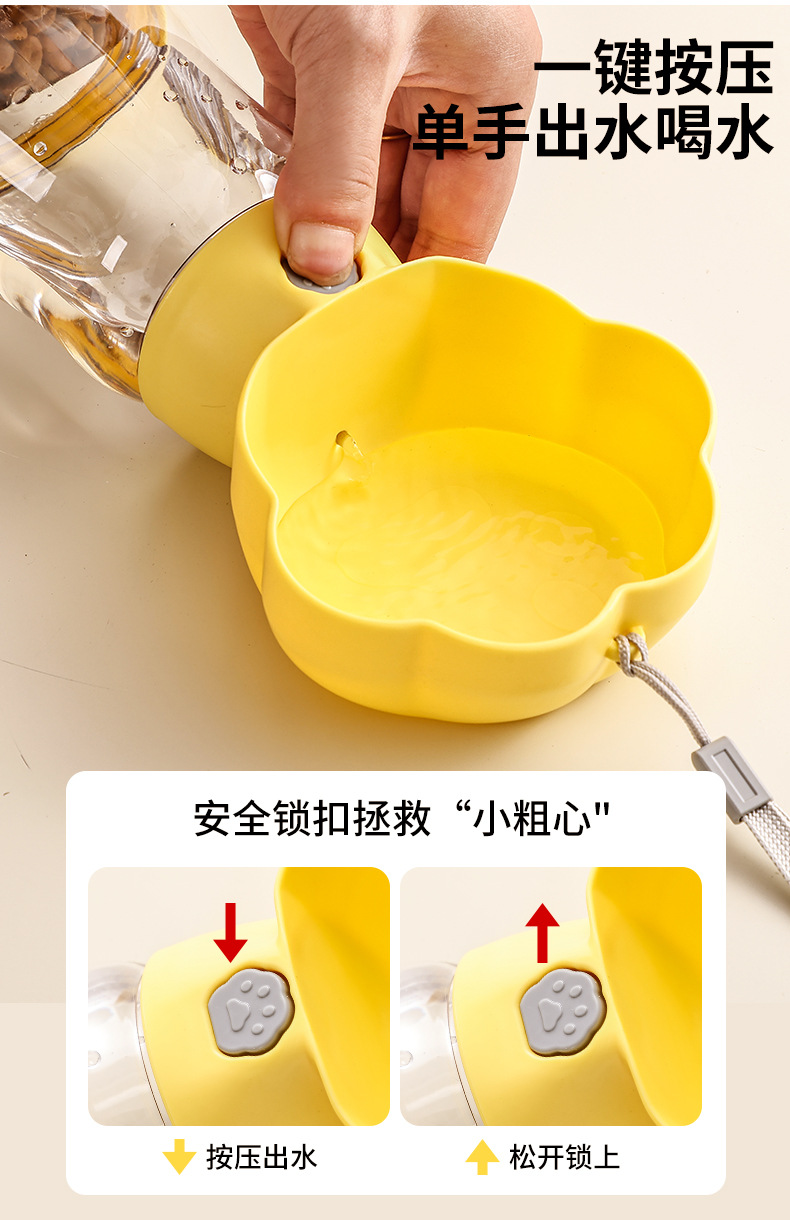 • 애완동물 노란색 외출 물과 음식 일체형 컵