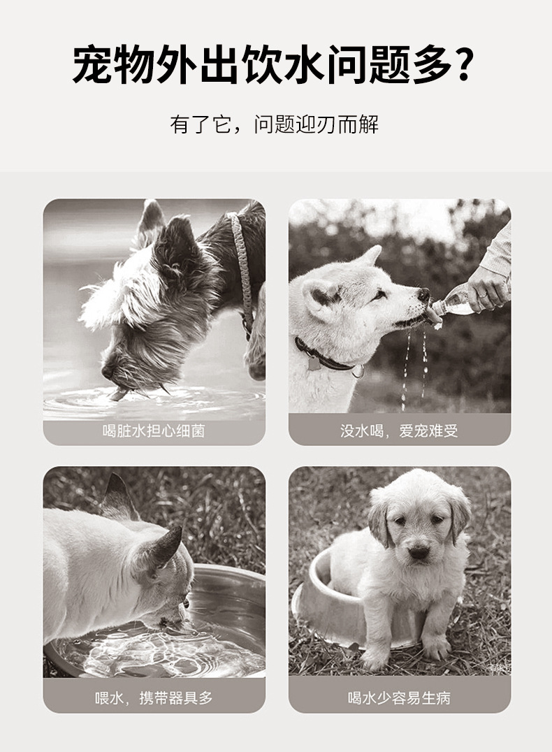 • 애완동물 회색 외출용 물과 음식 일체형 컵