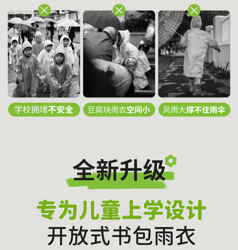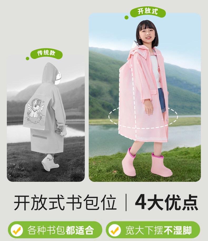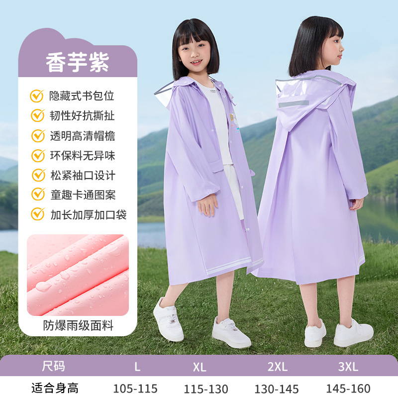초등학생을 위한 남아, 여아용 아동용 비옷, 책가방 포함, 긴 전신 일체형 방수 비옷스토어 가기