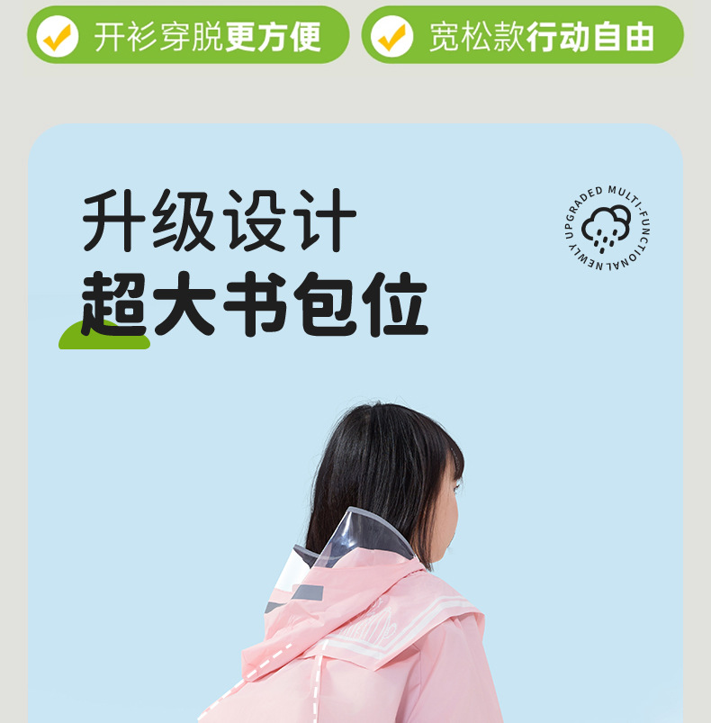 초등학생을 위한 남아, 여아용 아동용 비옷, 책가방 포함, 긴 전신 일체형 방수 비옷