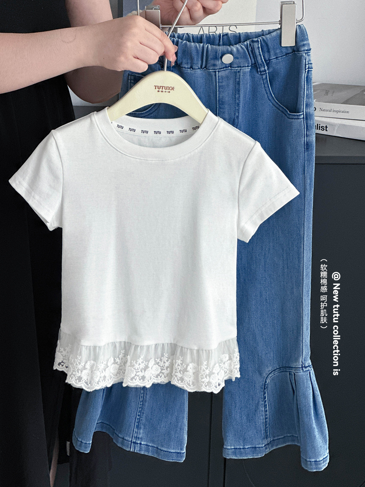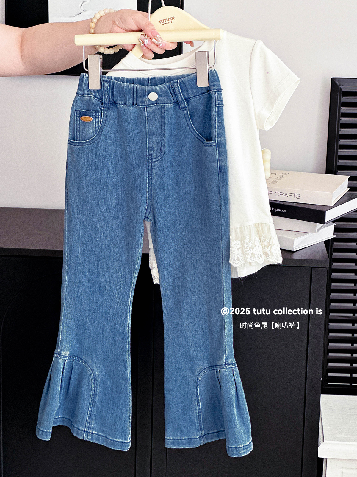 아동복 여아 청바지 25 초가을 신작 아동용 신축성 있는 캐주얼 다용도 바지 피쉬테일 플레어 팬츠 부모-자식 의류스토어 가기