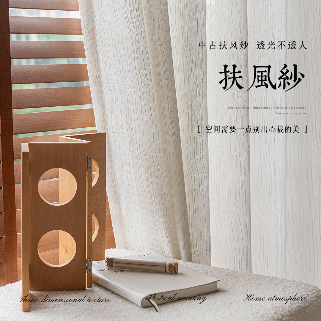 Fufeng 거즈 커튼 거즈 커튼 2025 새로운 스타일의 빛과 불투명 거실 발코니 하이 엔드 중세 스타일 린넨 거즈스토어 가기
