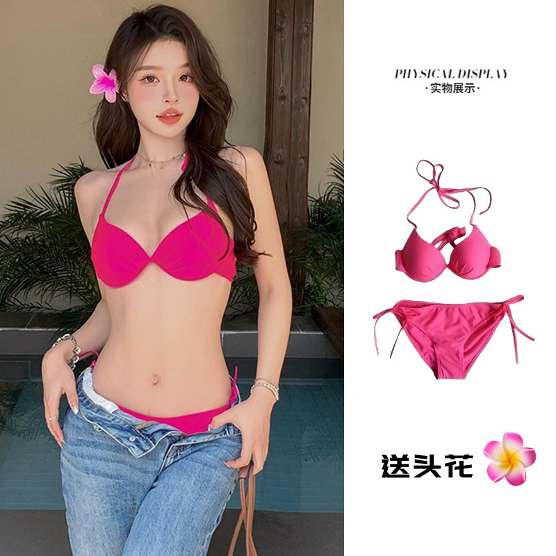 유럽과 미국 스타일의 섹시한 수영복 여성 해변 휴가 비키니 핑크 사이즈 가슴 푸시업 3점 온천스토어 가기