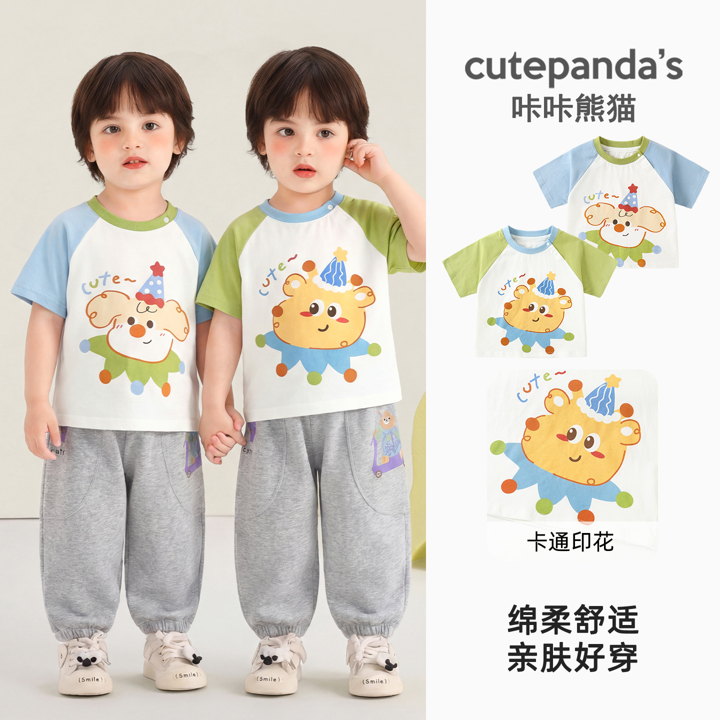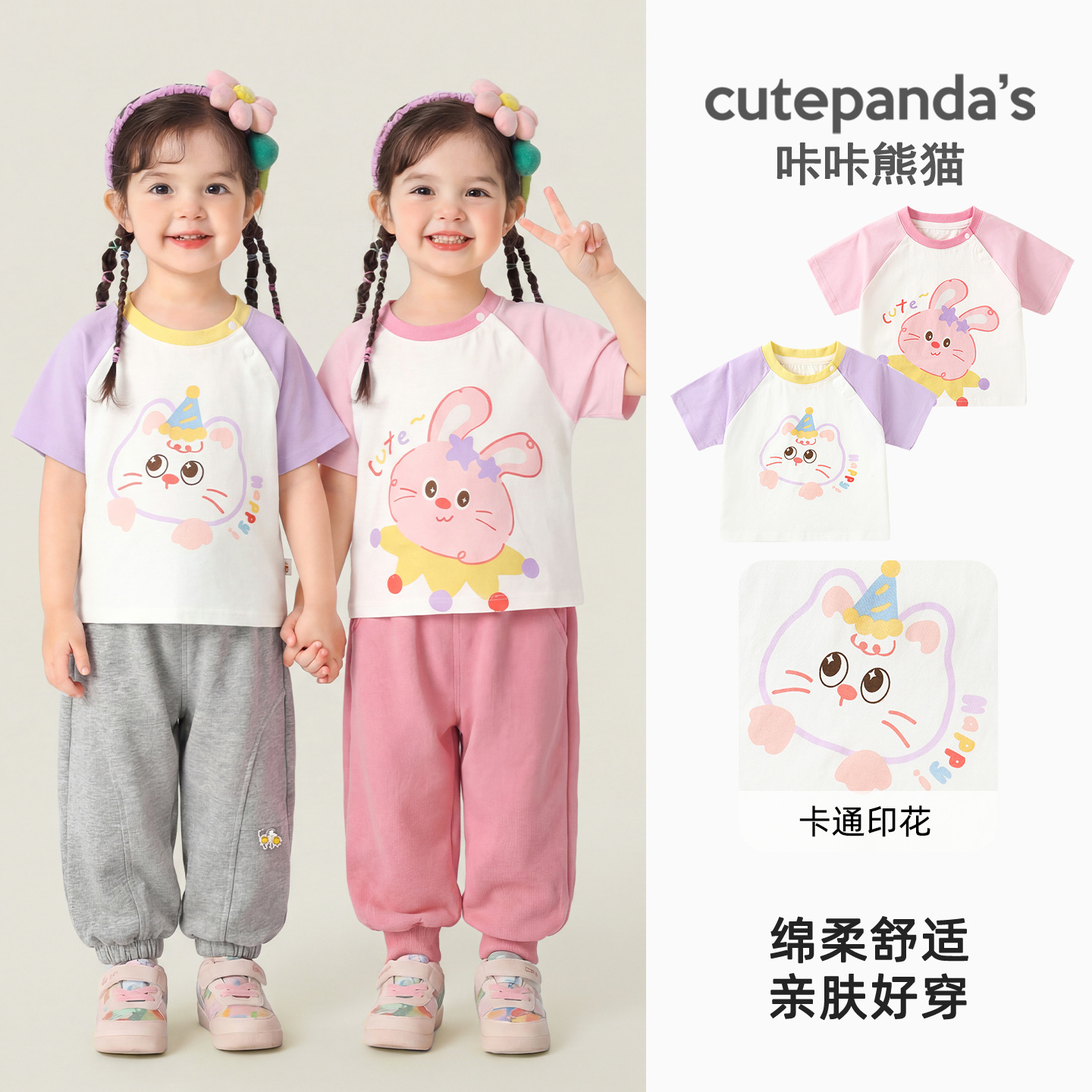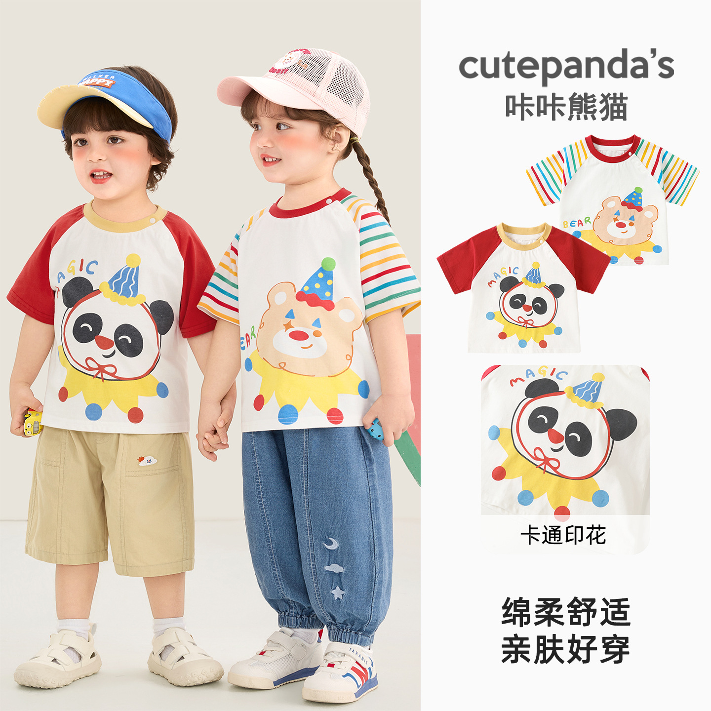 Kaka Panda 소녀 반팔 티셔츠 소년 여름 옷 어린이 여름 캐주얼 반팔 아기 옷 아기 아동복
