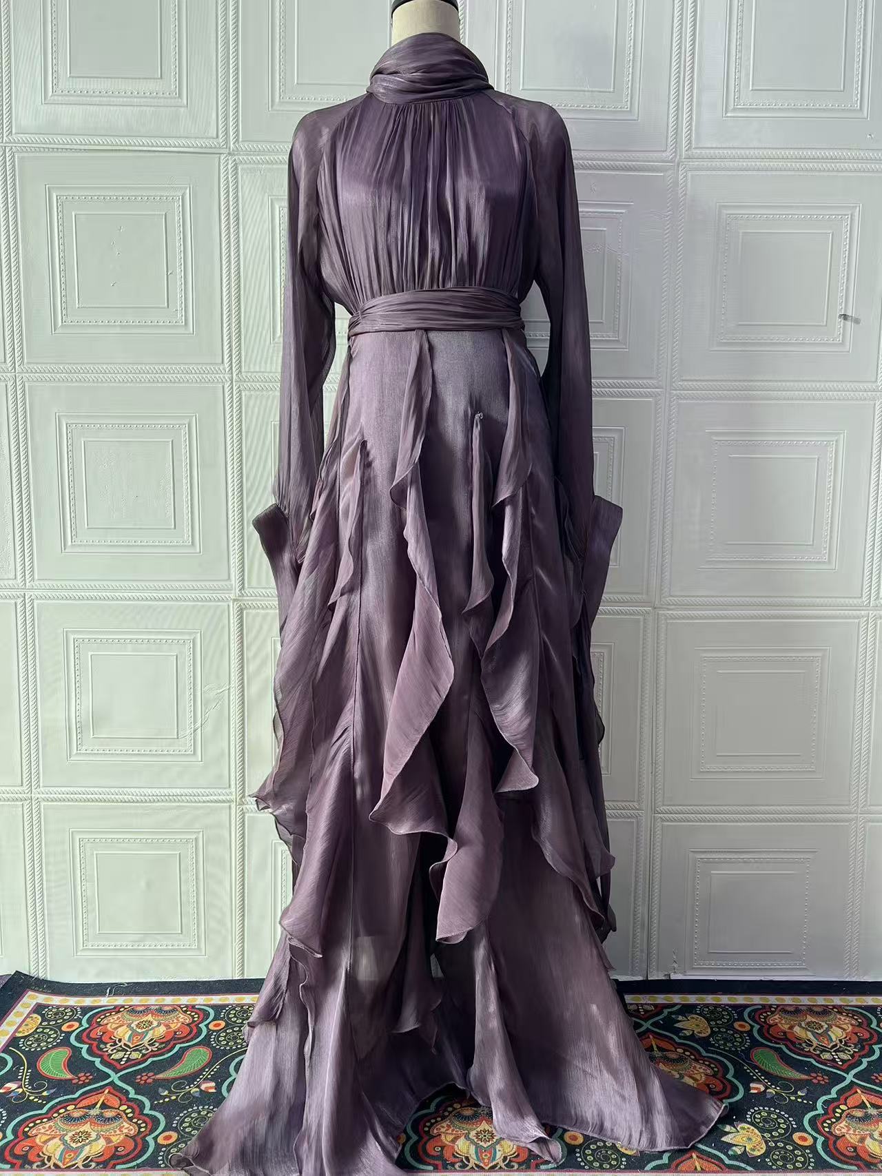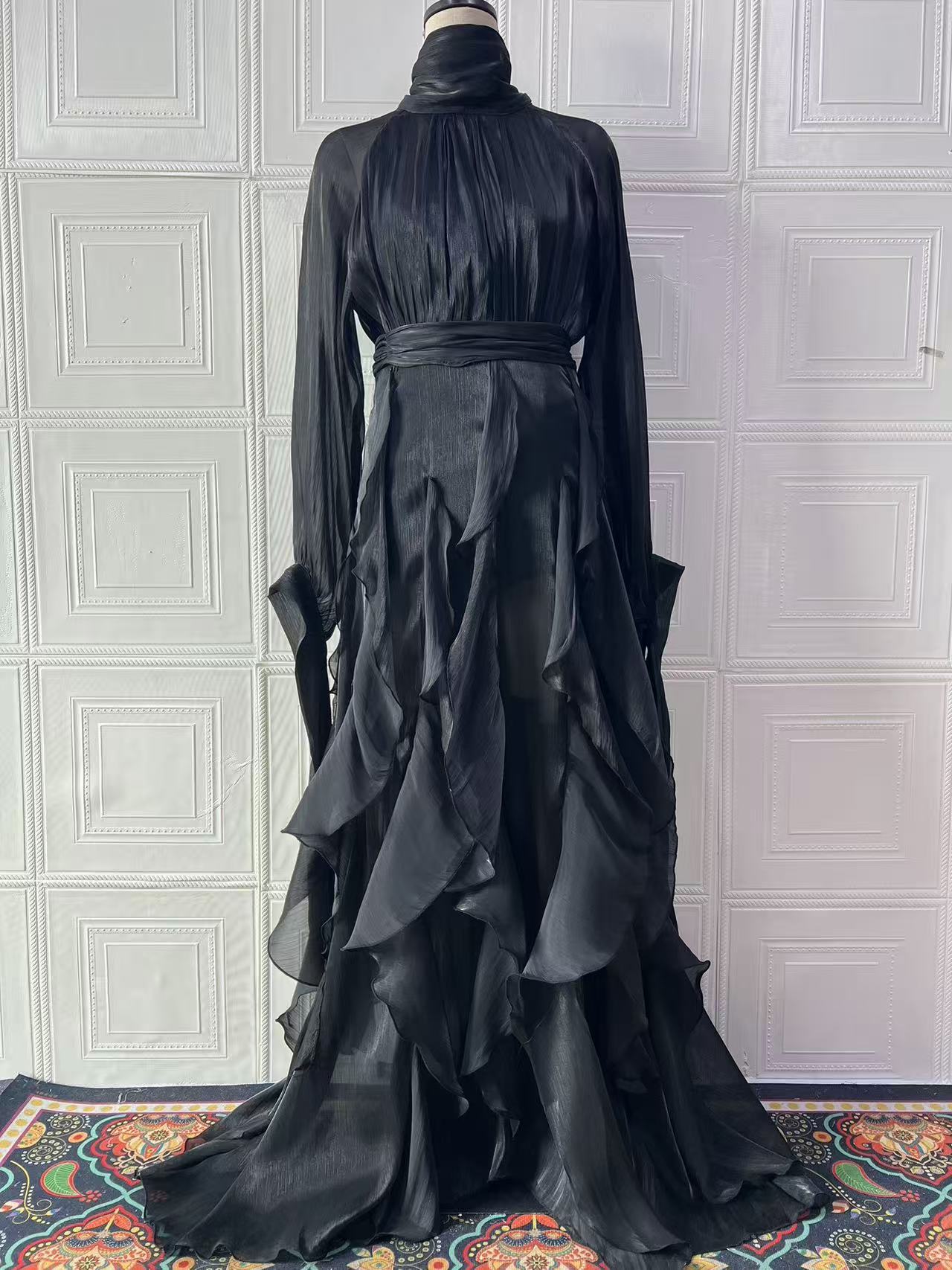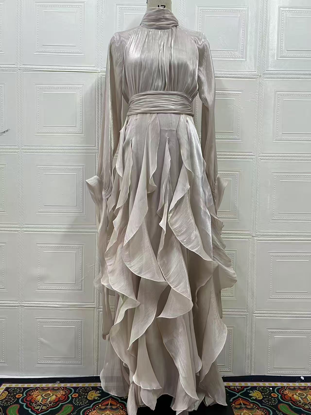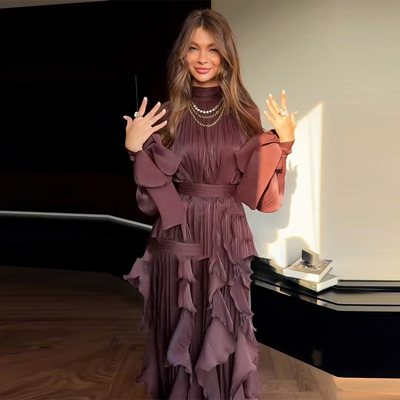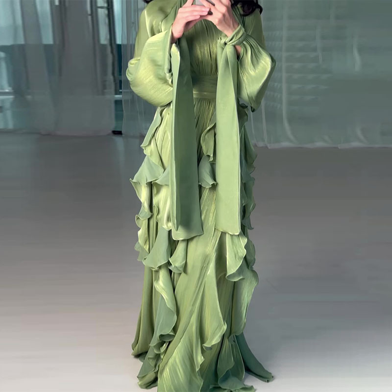 2025 새로운 유럽과 미국의 아마존 국경 간 대외 무역 여성 의류 우아하고 세련된 프릴 슬림 드레스