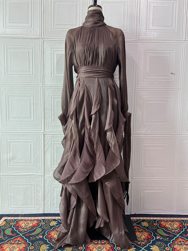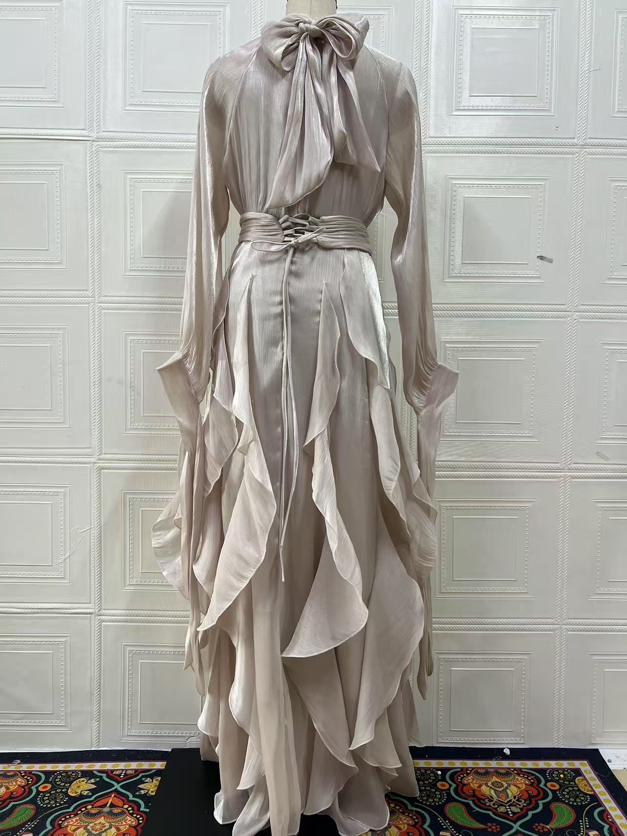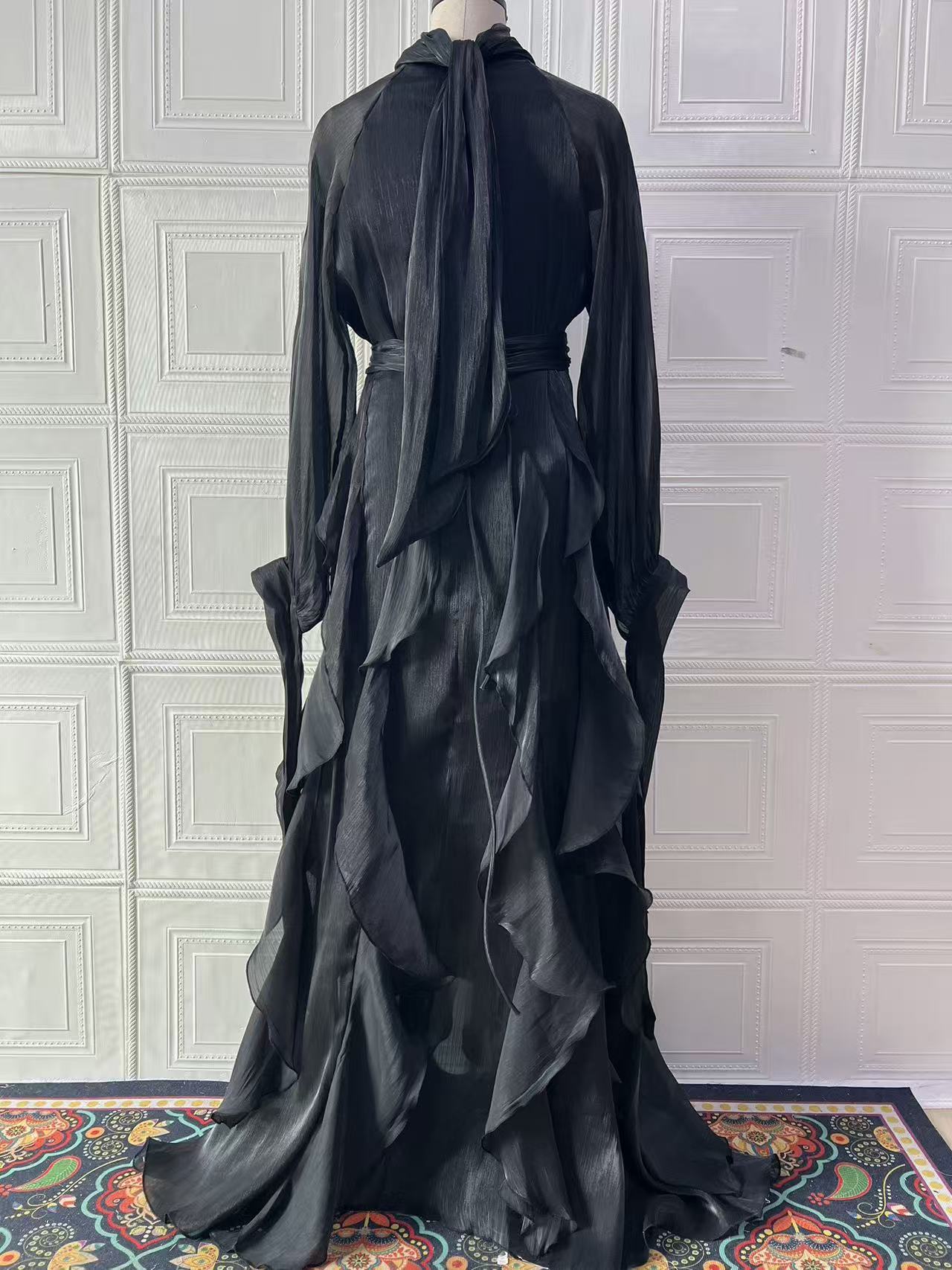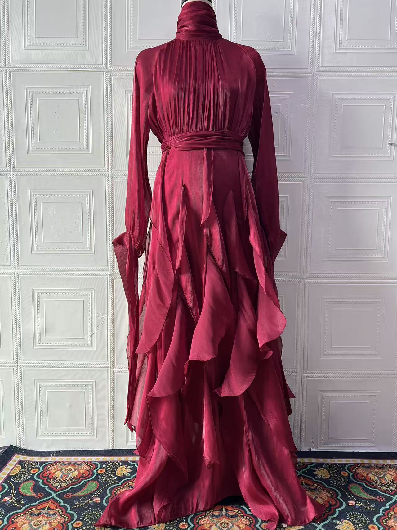 2025 새로운 유럽과 미국의 아마존 국경 간 대외 무역 여성 의류 우아하고 세련된 프릴 슬림 드레스