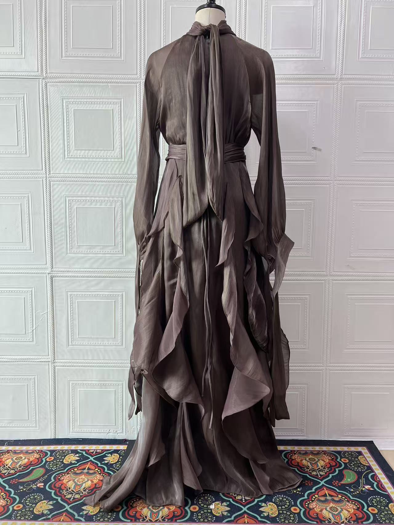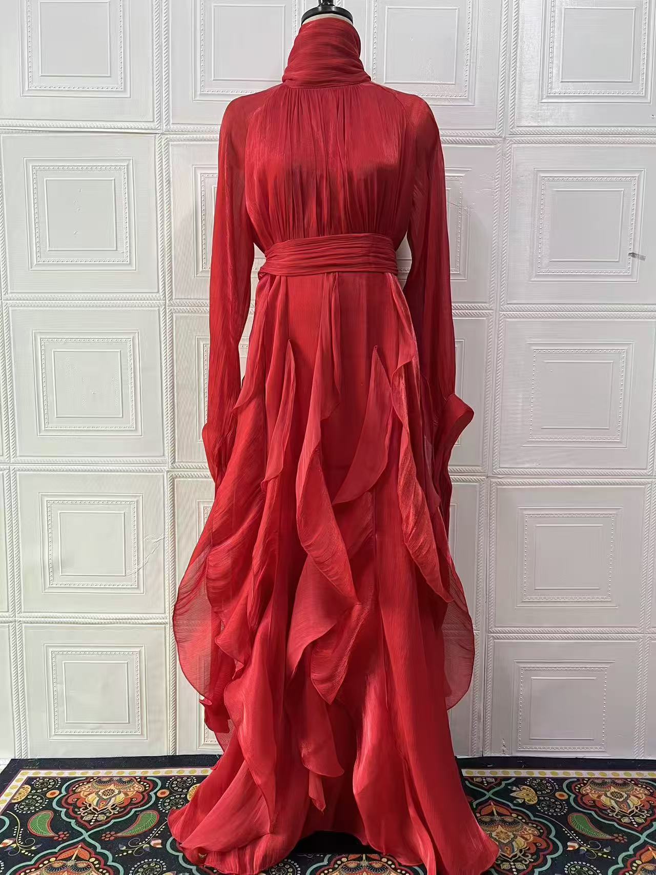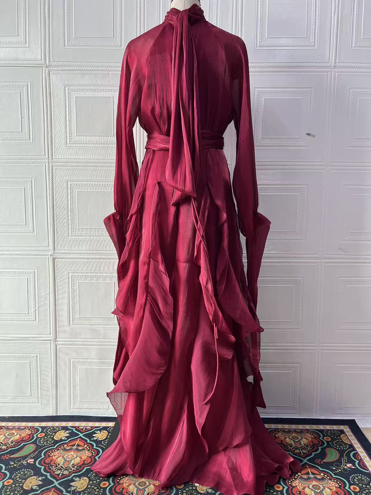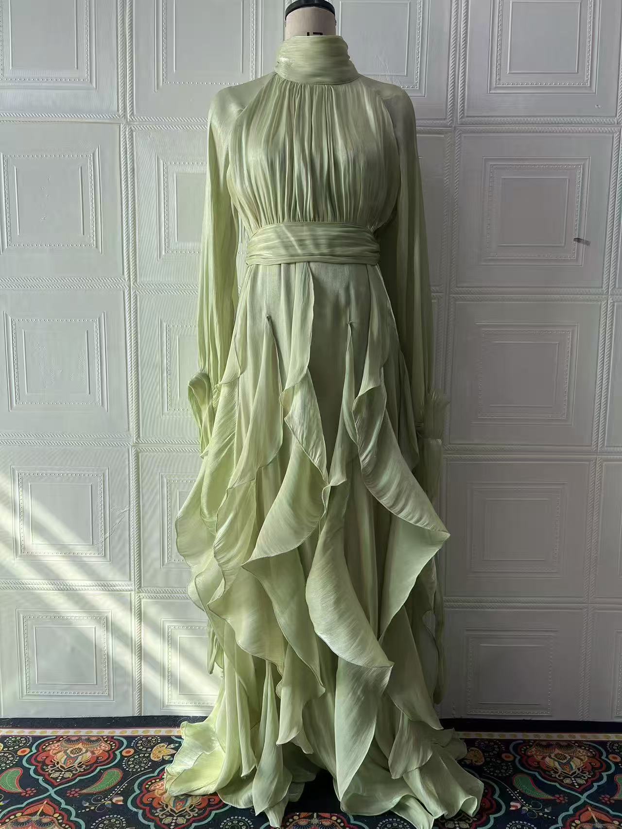 2025 새로운 유럽과 미국의 아마존 국경 간 대외 무역 여성 의류 우아하고 세련된 프릴 슬림 드레스