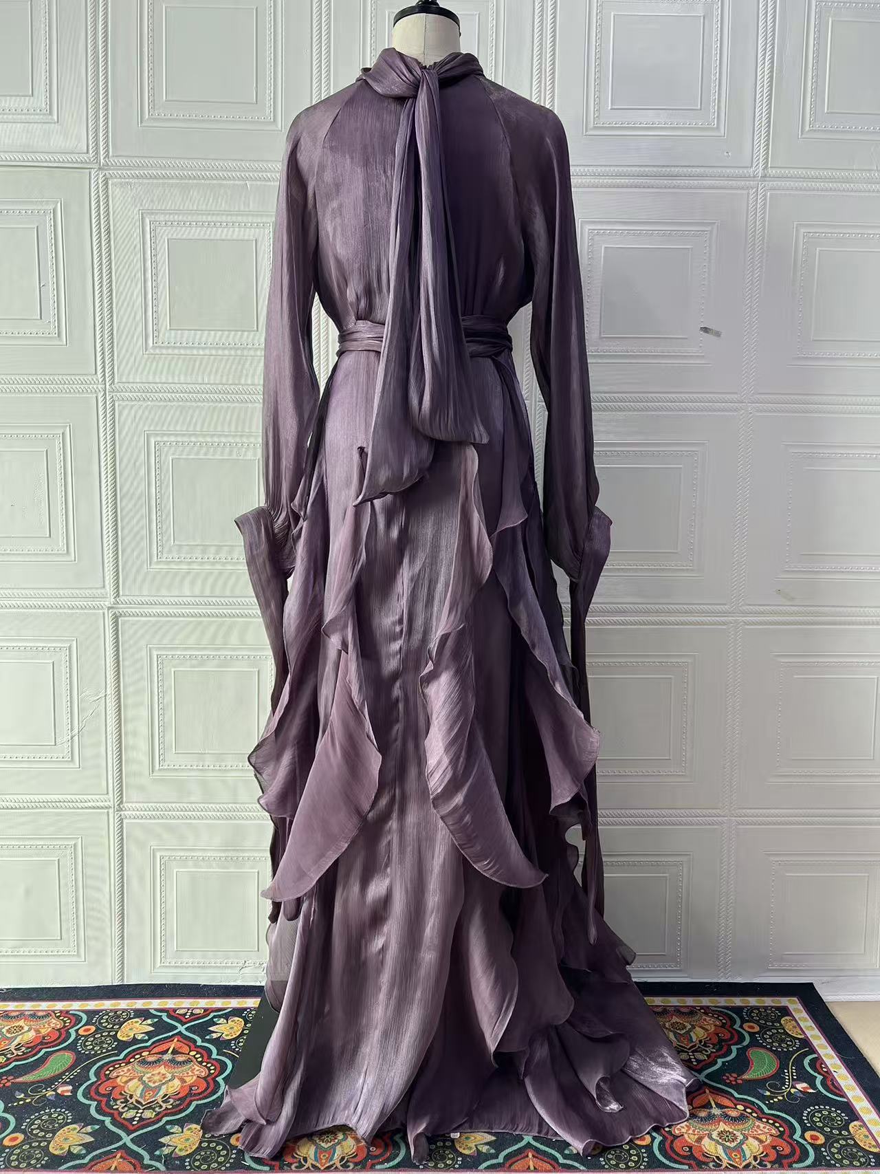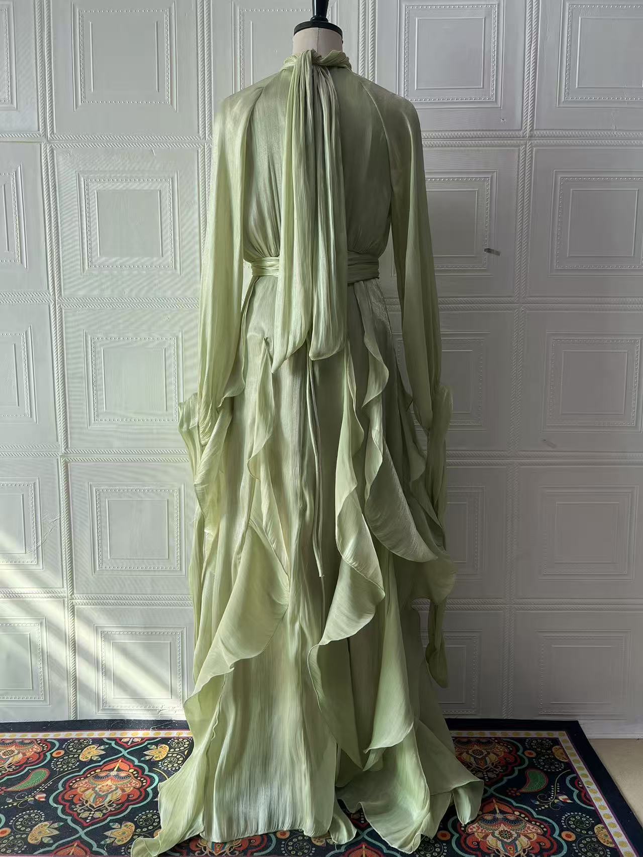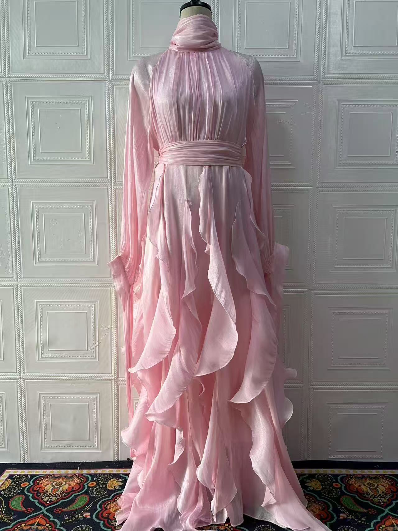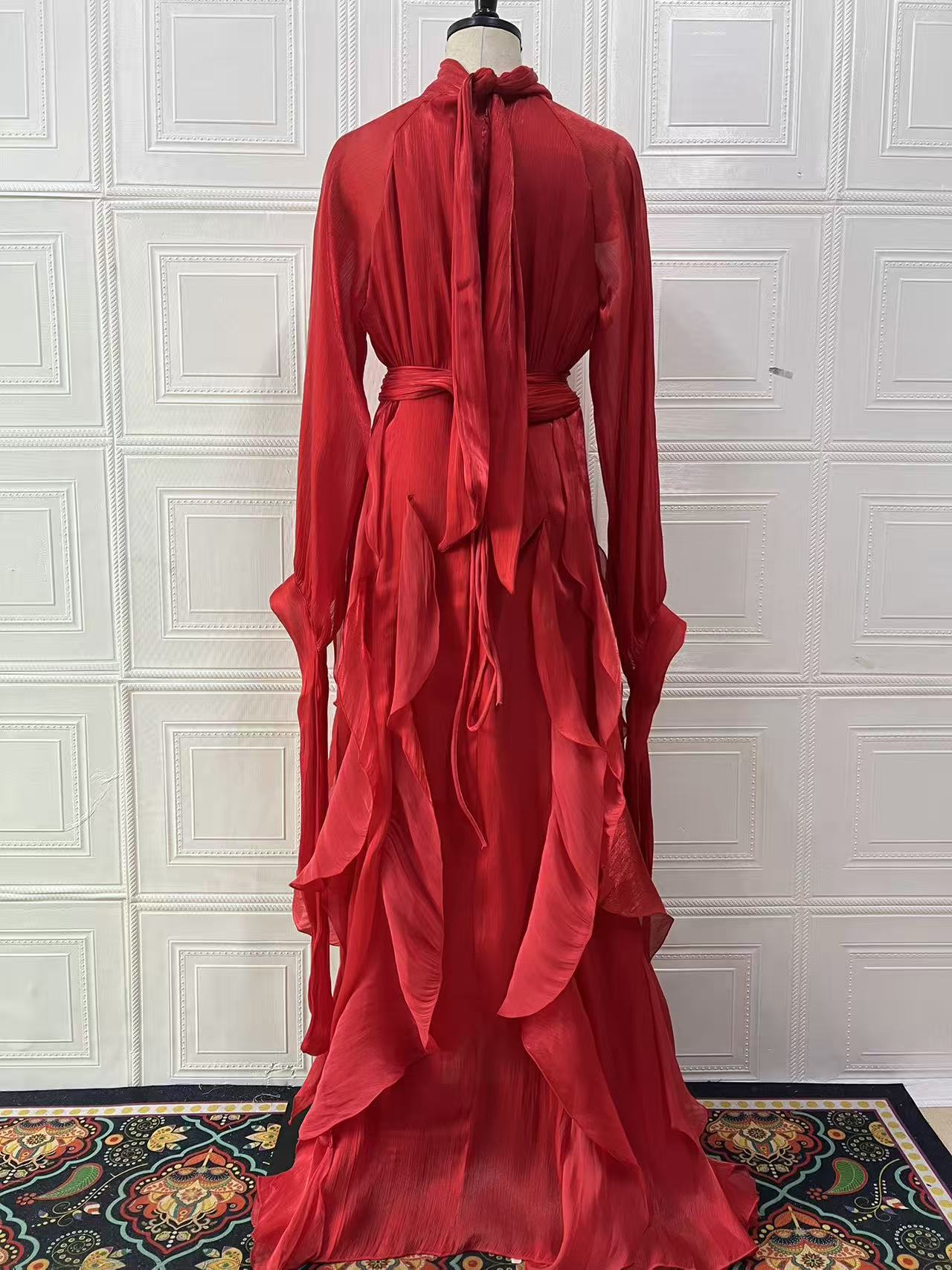 2025 새로운 유럽과 미국의 아마존 국경 간 대외 무역 여성 의류 우아하고 세련된 프릴 슬림 드레스