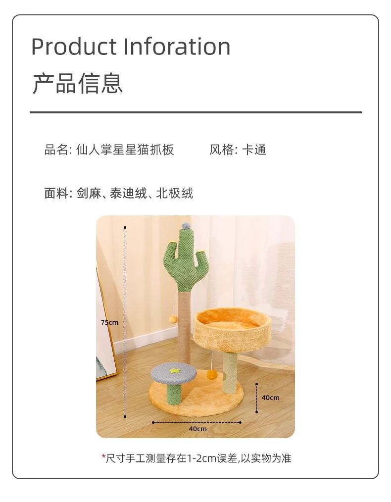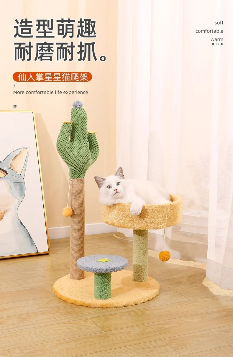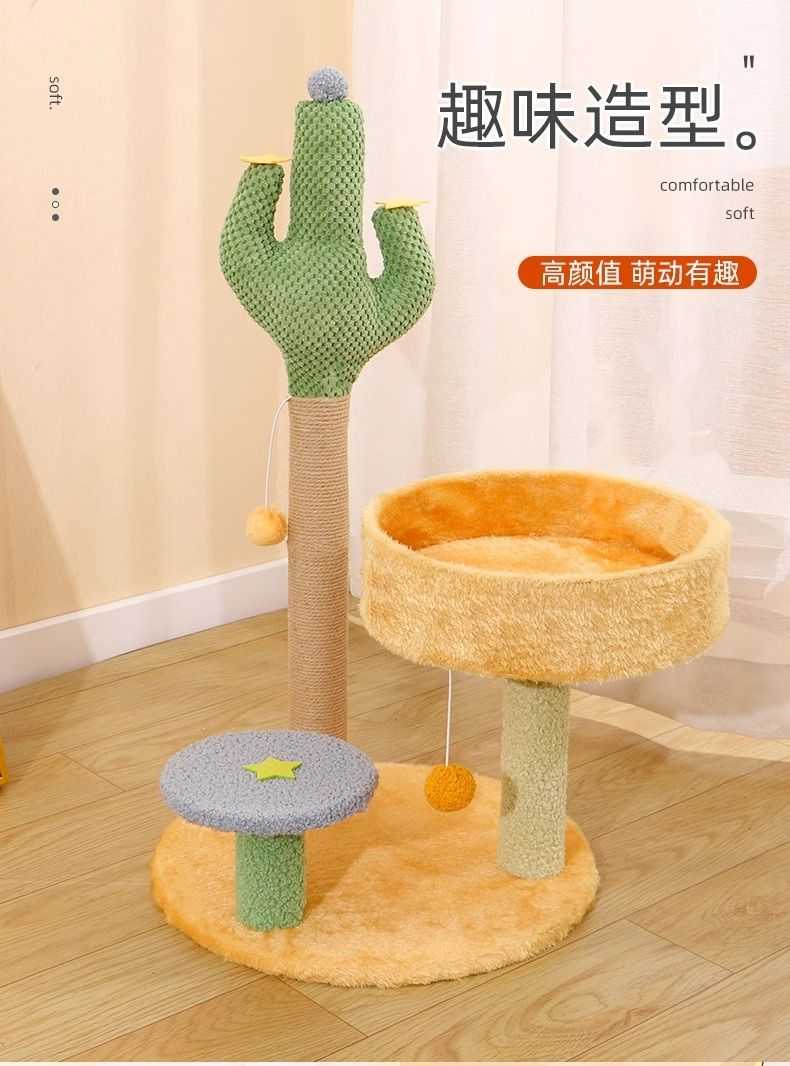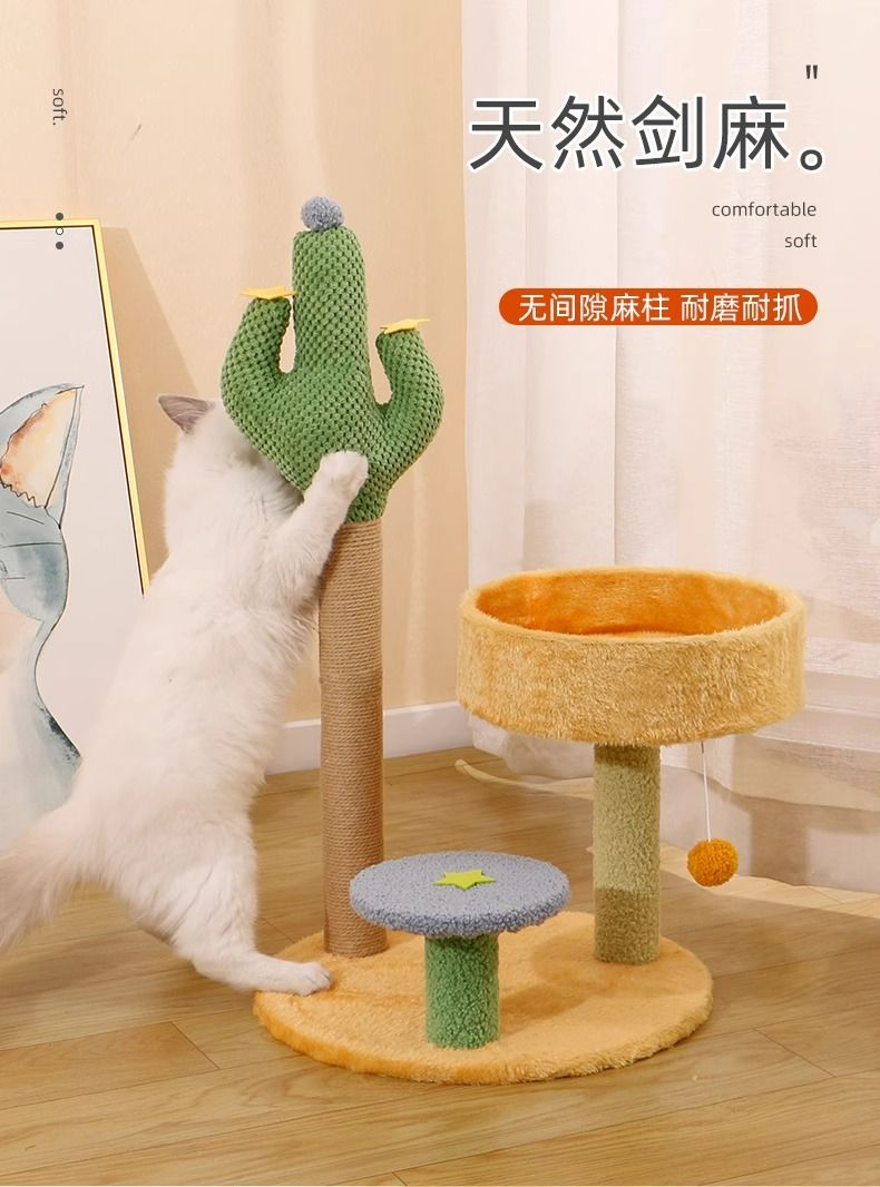 선인장 고양이 클라이밍 프레임, 고양이 둥지, 일체형 내마모성, 긁힘 방지, 부스러기 없는 고양이 스크래치 보드, 수직 고양이 스크래치 컬럼, 고양이 장난감스토어 가기