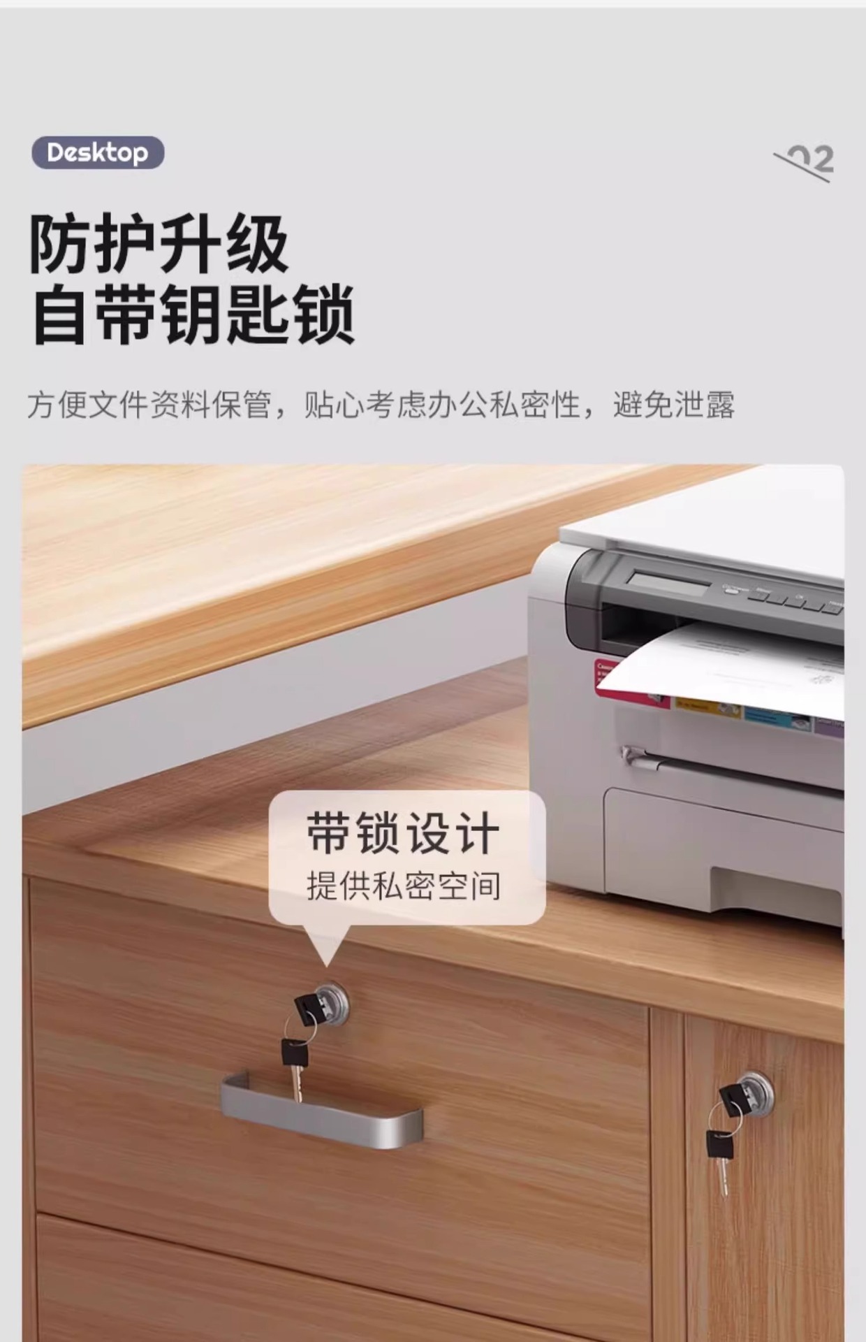 • [기간 한정 특가] 책상 밑 추천 모델 [자물쇠 및 도르래가 있는 싱글 서랍] 노르딕 메이플 컬러 37*34*59cm-Ω