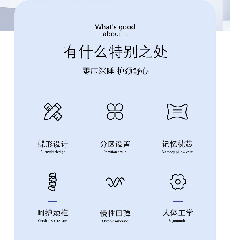 아마존의 인기 메모리폼 베개, 통기성이 뛰어난 경추 보호 특수 모양 베개, 제로 압력 느린 반발 나비 모양 메모리 베개