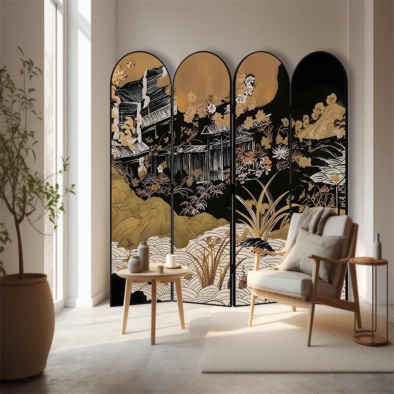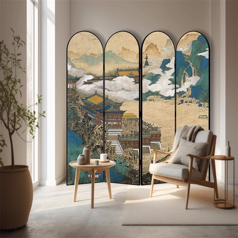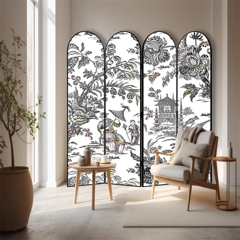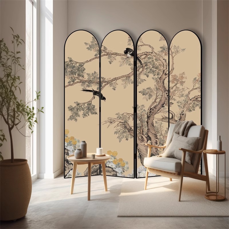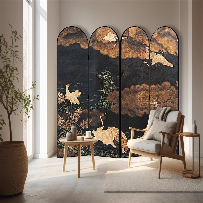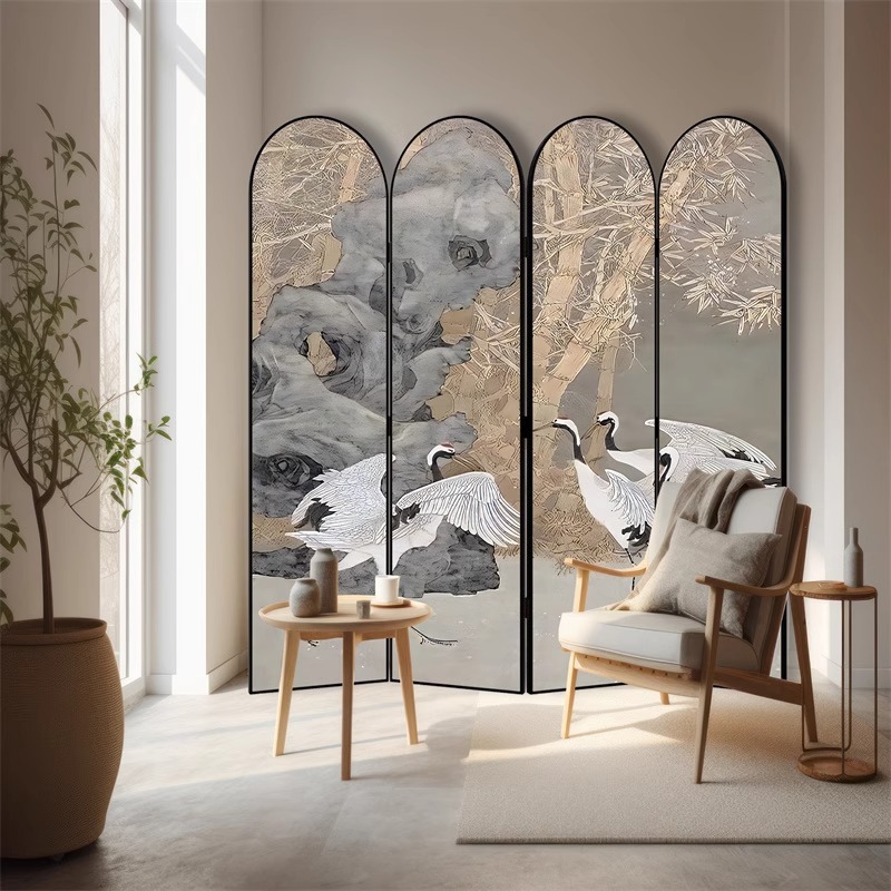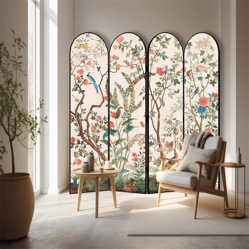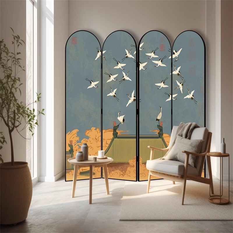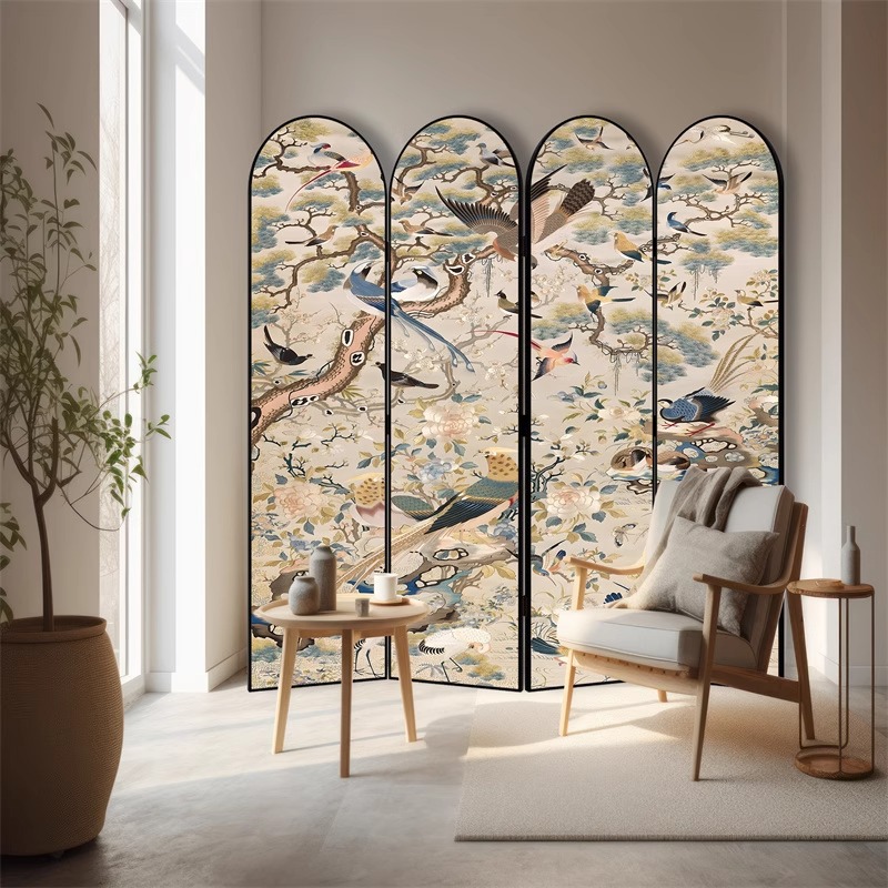 호텔의 새로운 중국 스타일 접이식 스크린 파티션 프랑스 복고풍 거실 레스토랑 침실 입구 차단 장식 접이식 스크린 그림