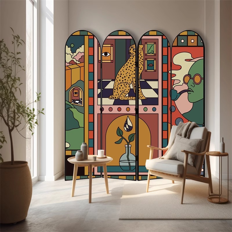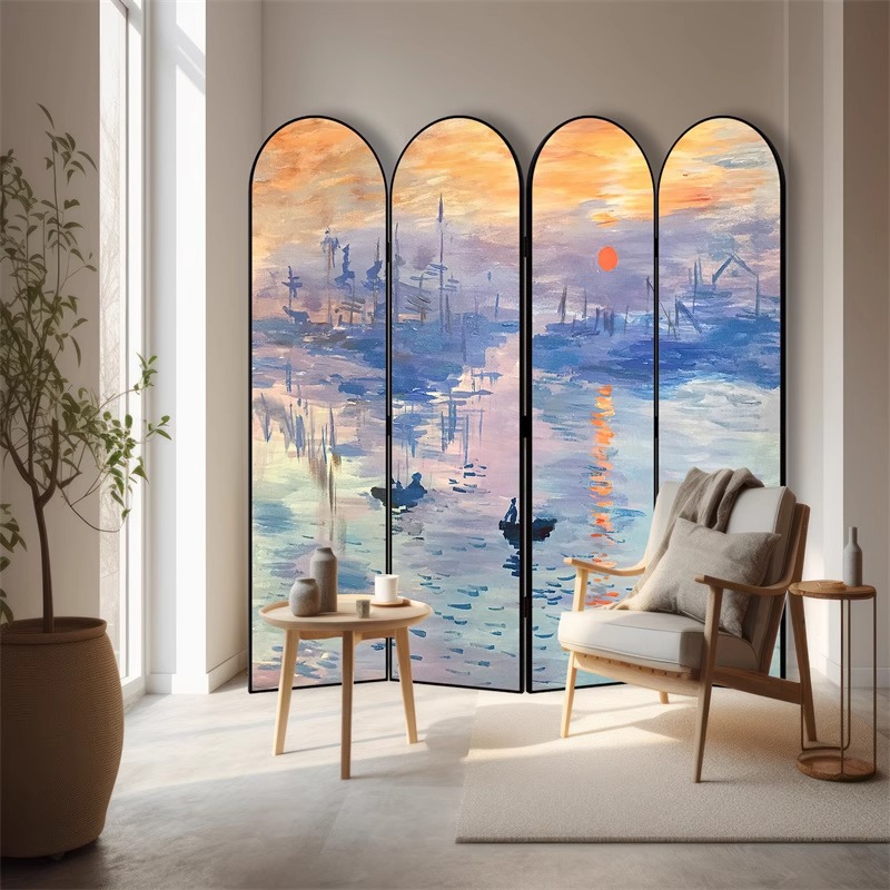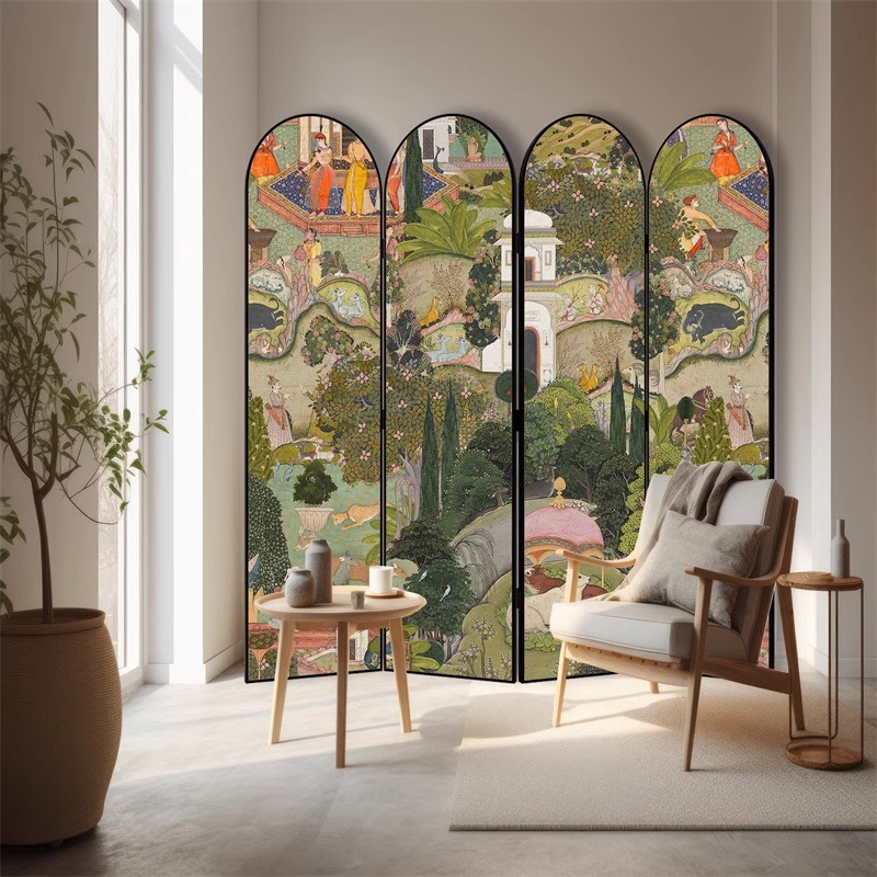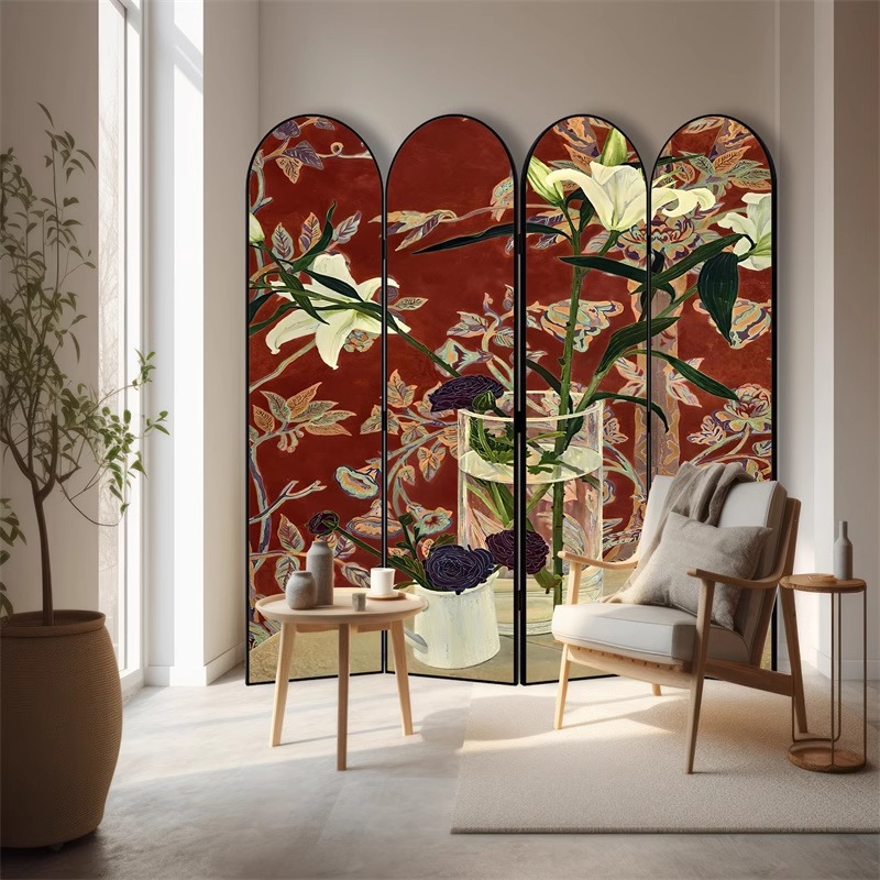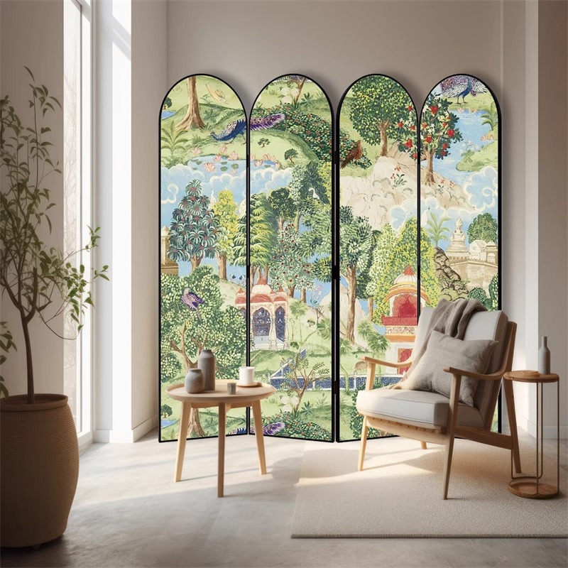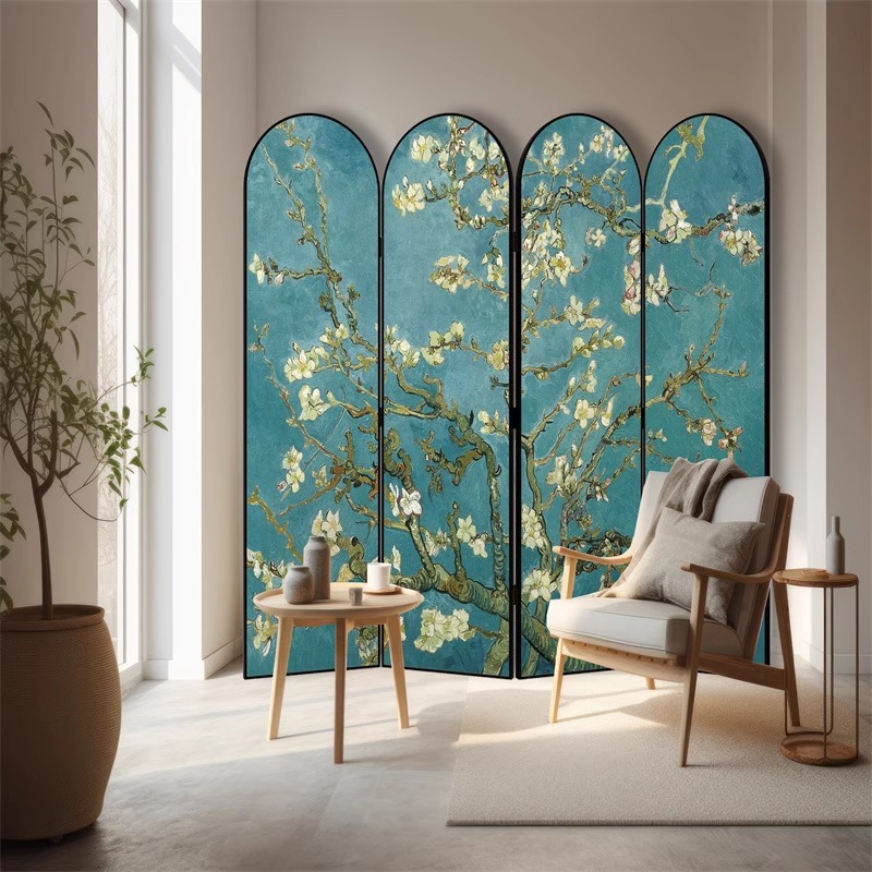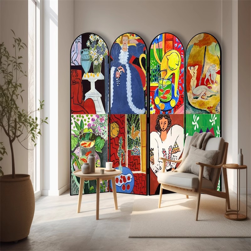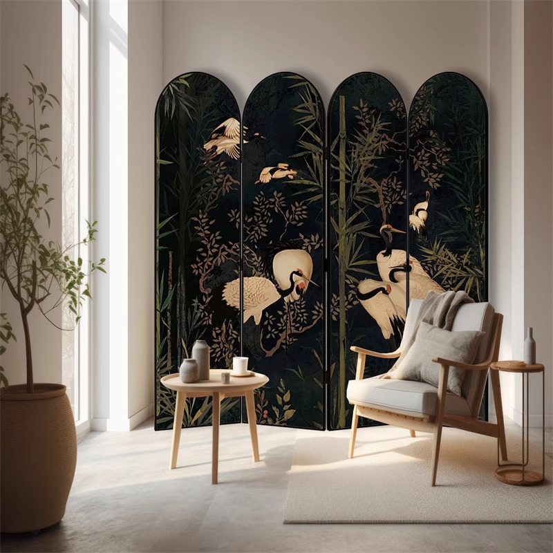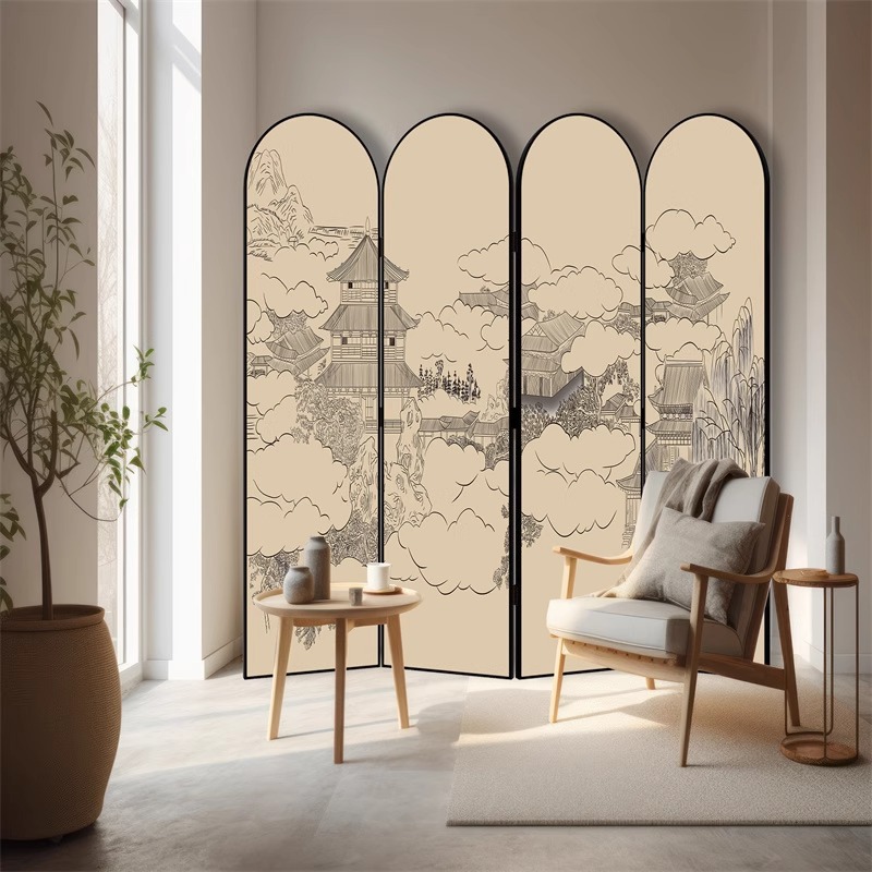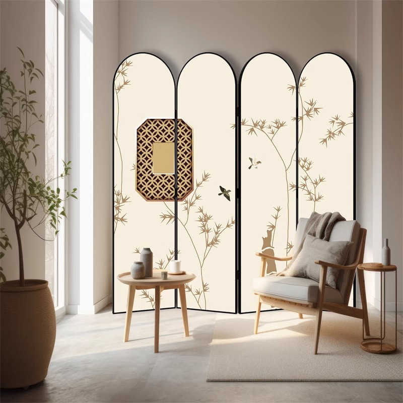 호텔의 새로운 중국 스타일 접이식 스크린 파티션 프랑스 복고풍 거실 레스토랑 침실 입구 차단 장식 접이식 스크린 그림