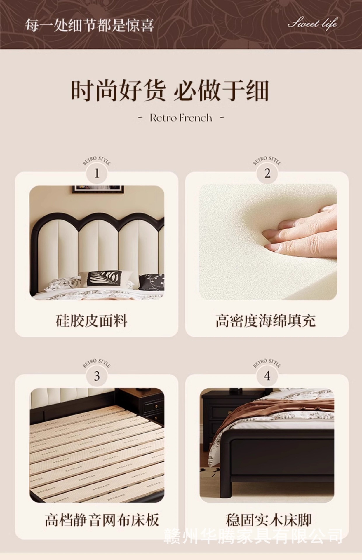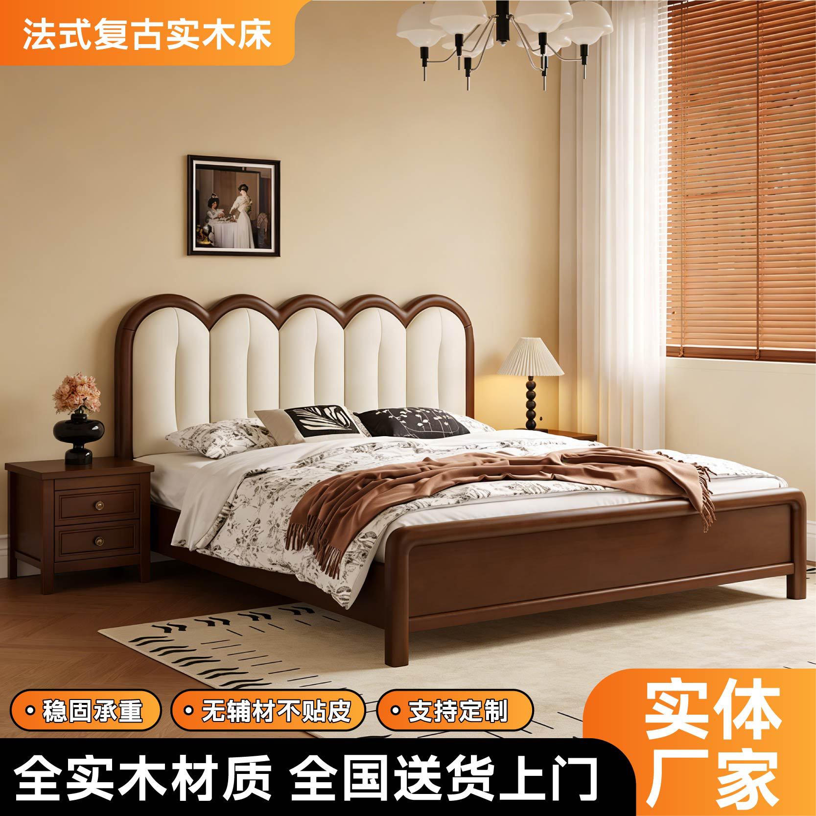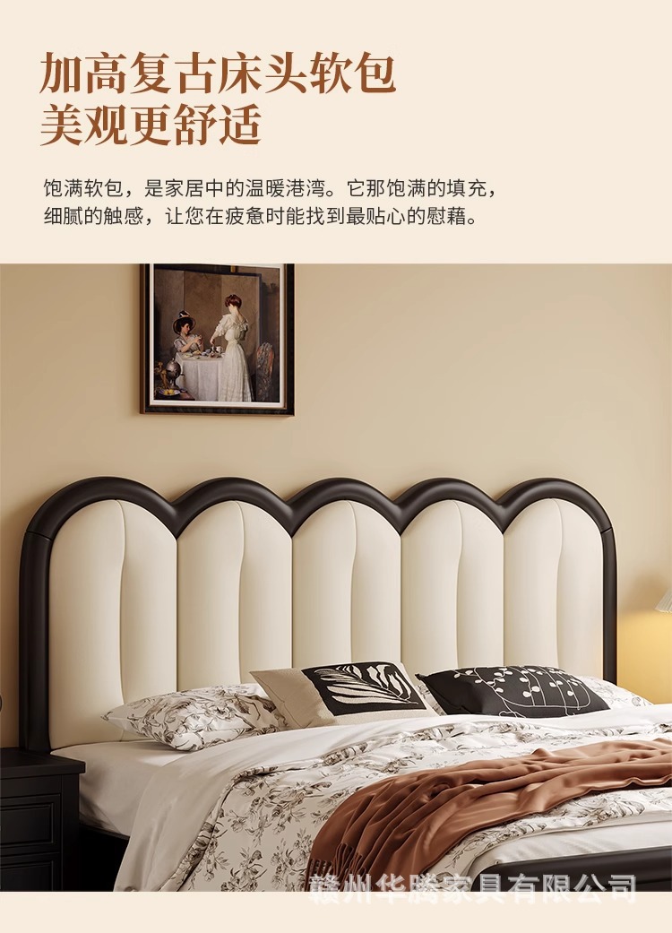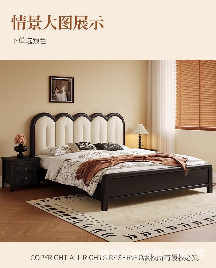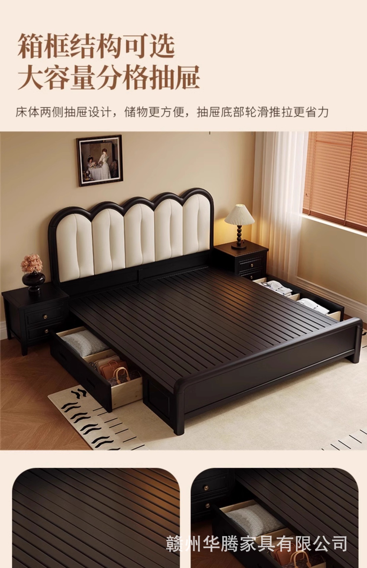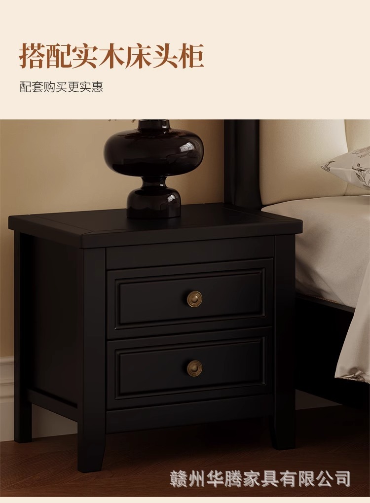 프렌치 복고풍 원목 침대, 모던하고 심플한 마스터 침실, 고급스럽고 분위기 있는 더블 침대, 중세 스타일의 가벼운 럭셔리 블랙 침대스토어 가기
