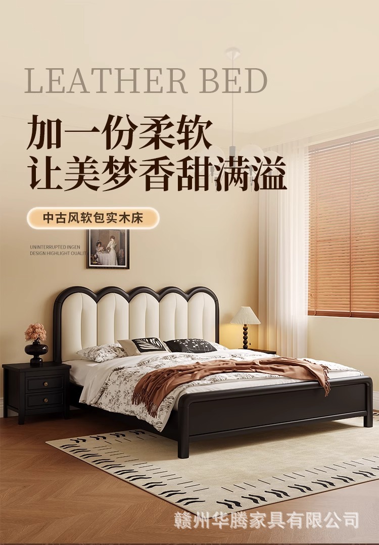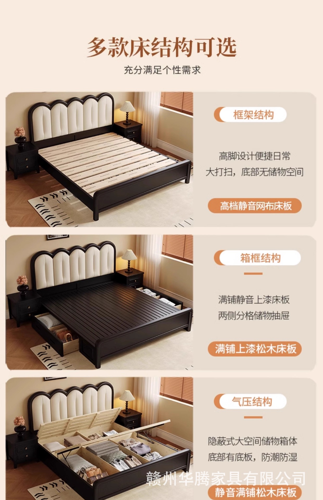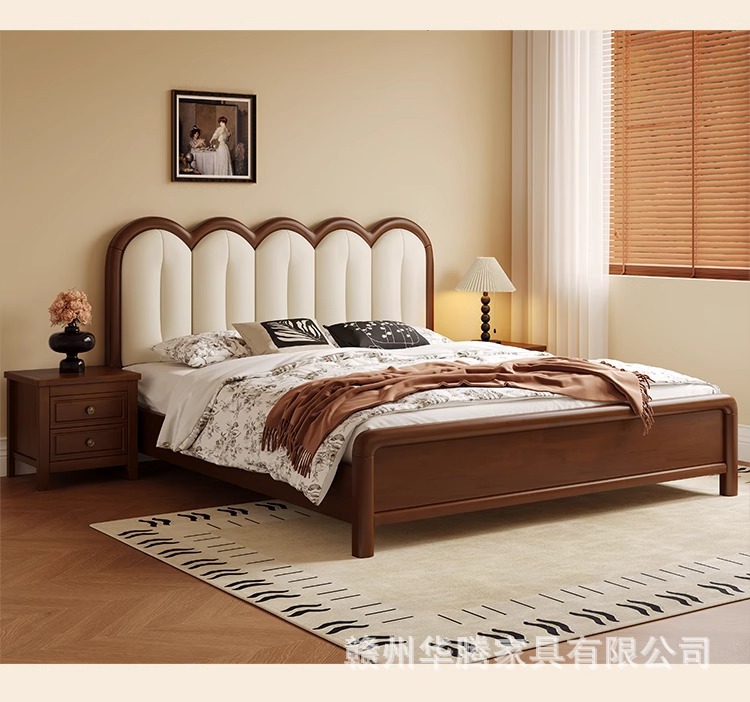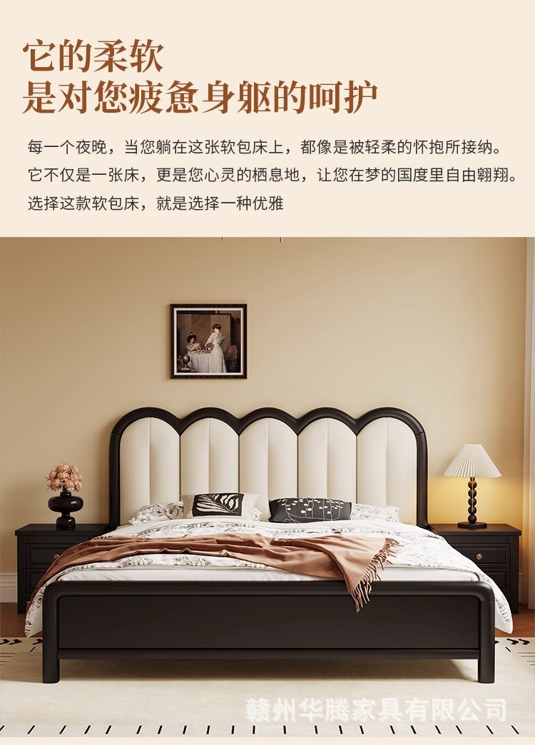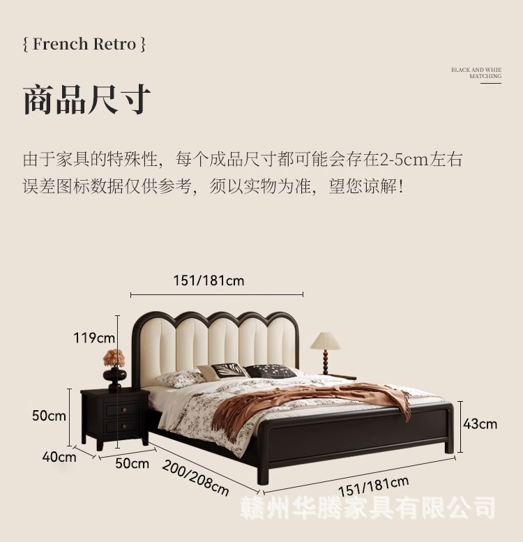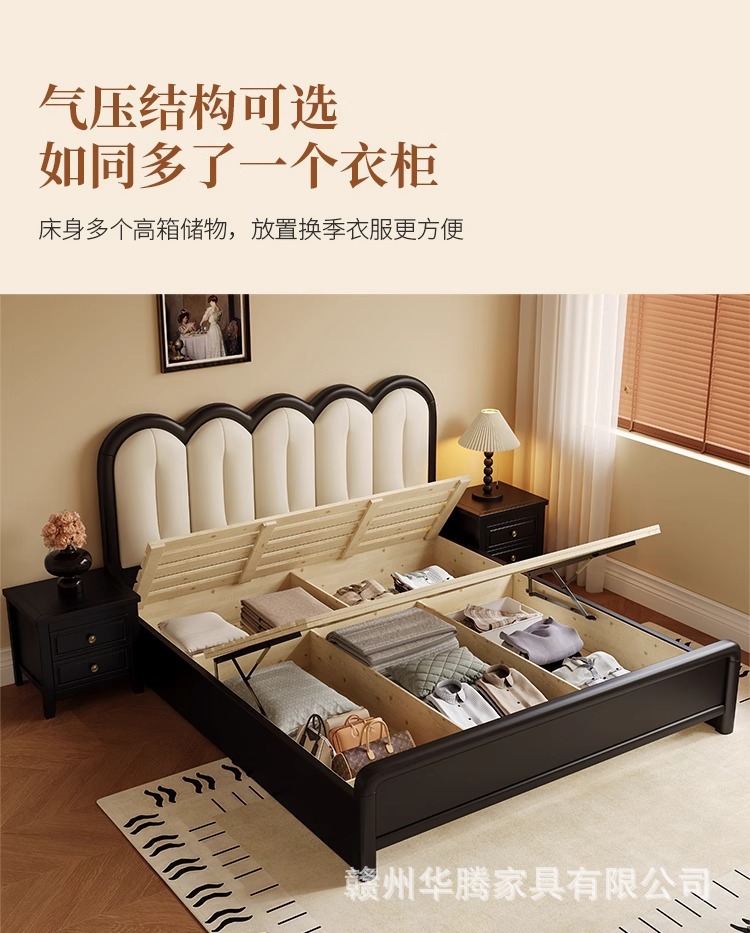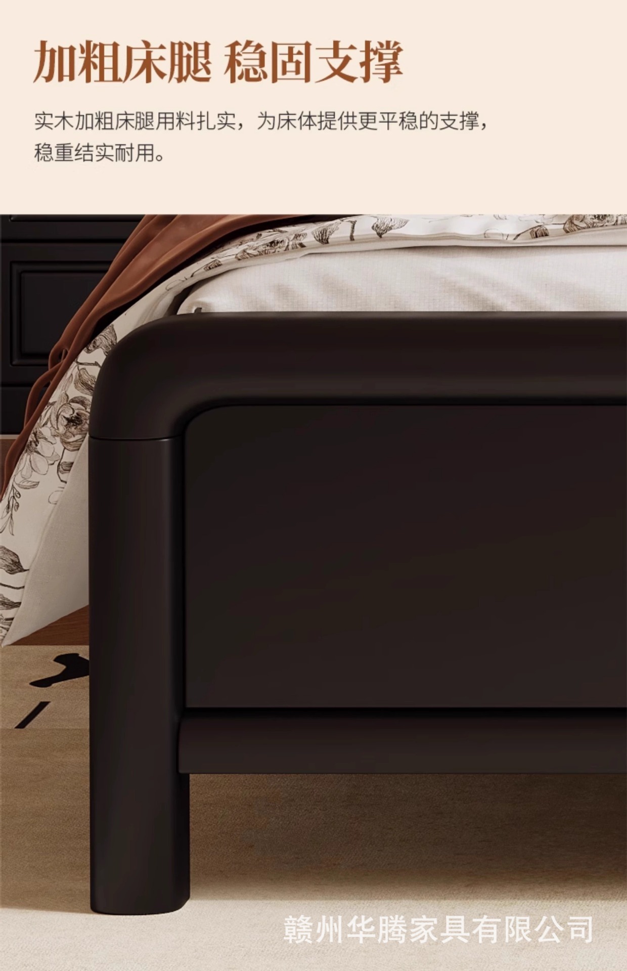 프렌치 복고풍 원목 침대, 모던하고 심플한 마스터 침실, 고급스럽고 분위기 있는 더블 침대, 중세 스타일의 가벼운 럭셔리 블랙 침대스토어 가기