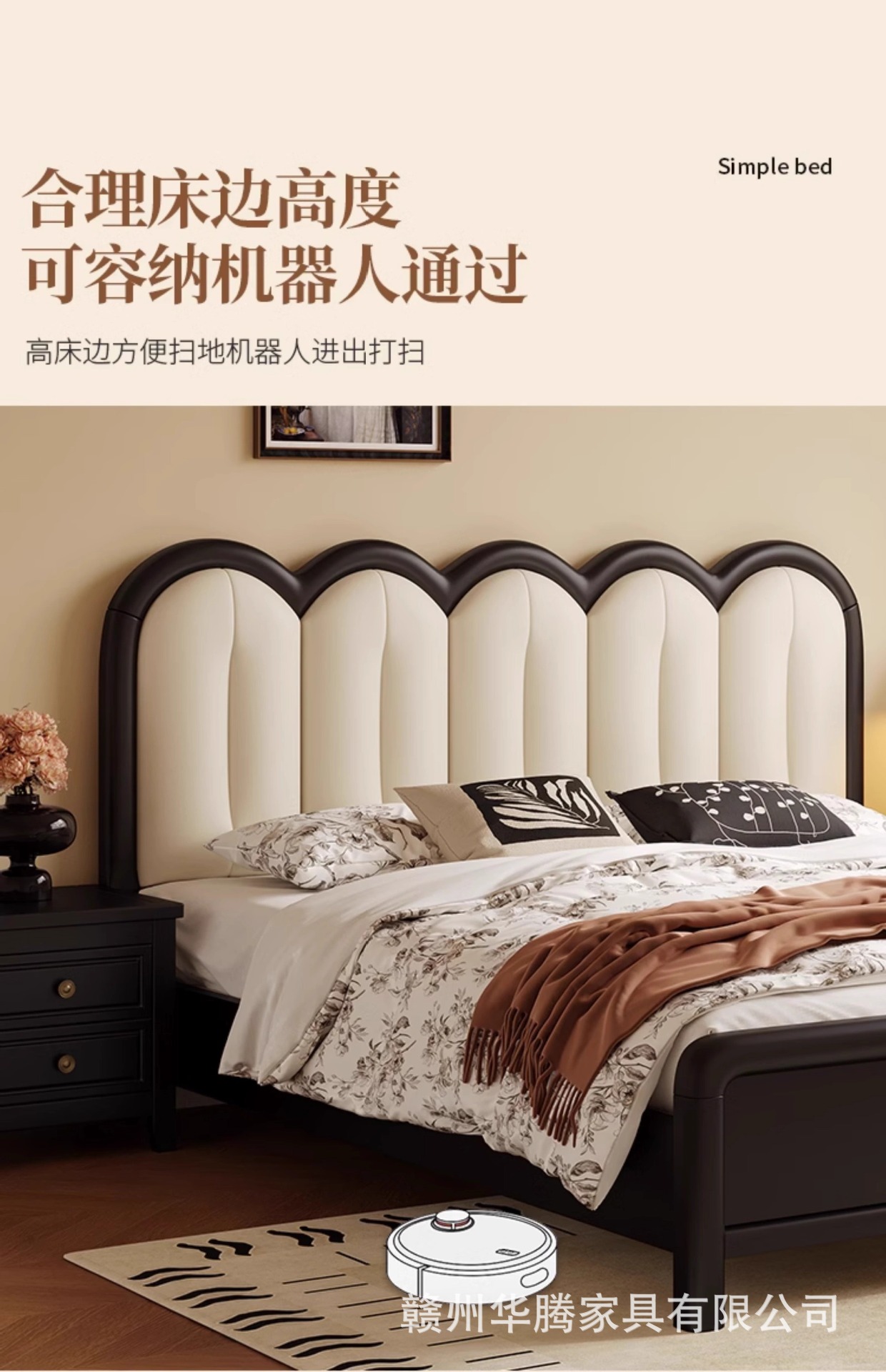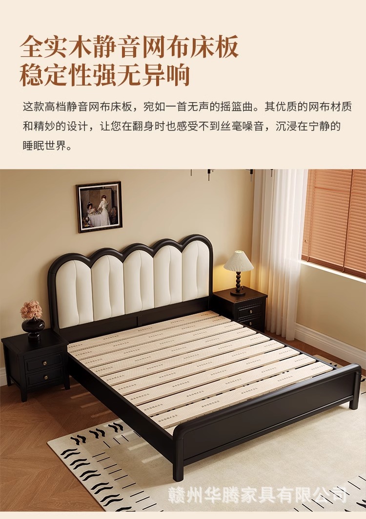 프렌치 복고풍 원목 침대, 모던하고 심플한 마스터 침실, 고급스럽고 분위기 있는 더블 침대, 중세 스타일의 가벼운 럭셔리 블랙 침대