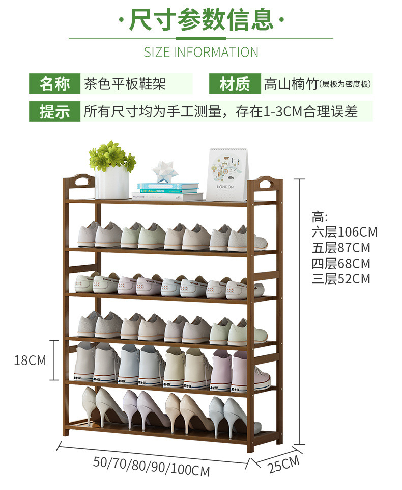 대나무 신발장 간단한 다층 도어 신발장 방진 보관함 가정용 보관함 기숙사 보관 공장