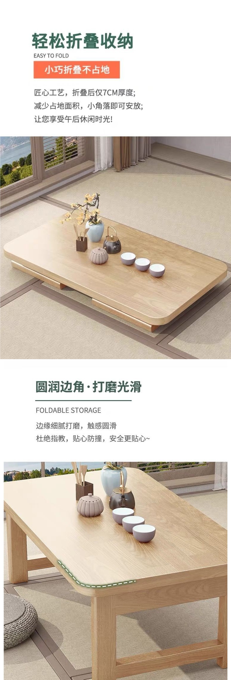 고무나무 접이식 낮은 테이블, 플로어 창 테이블, 침대 학습 테이블, 단단한 나무 작은 커피 테이블, 다다미 테이블, 침대 테이블