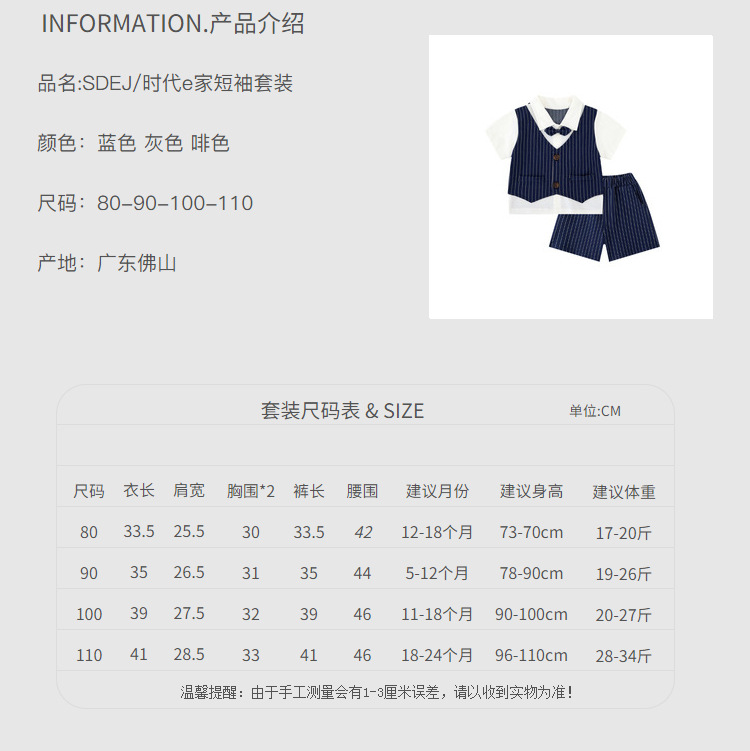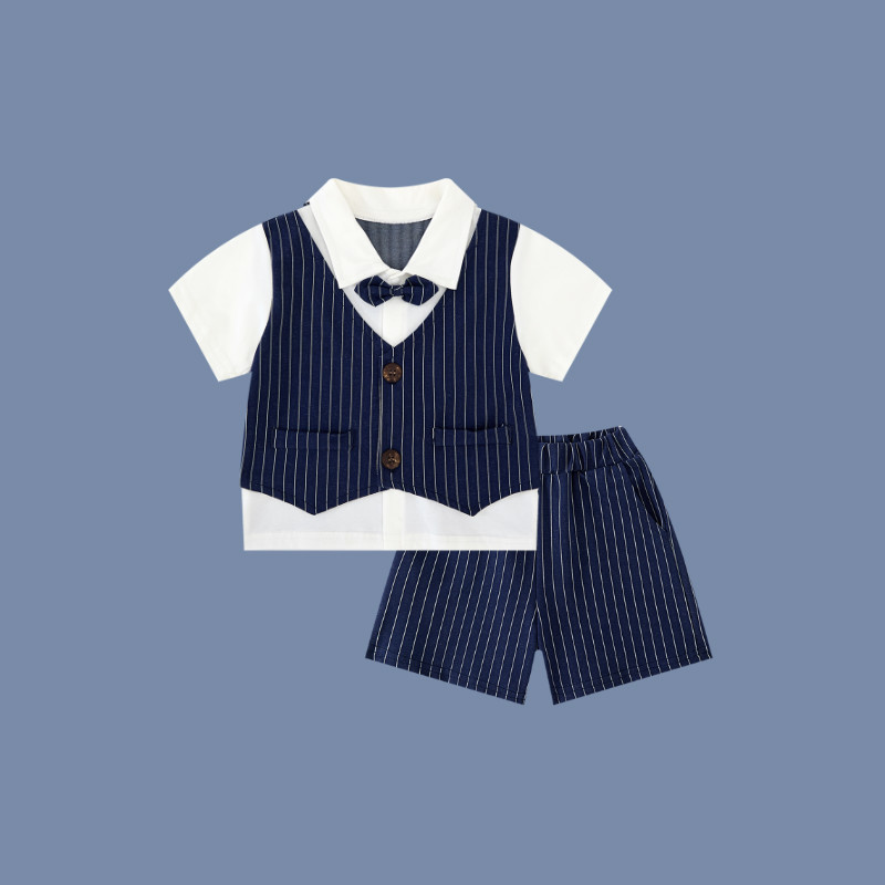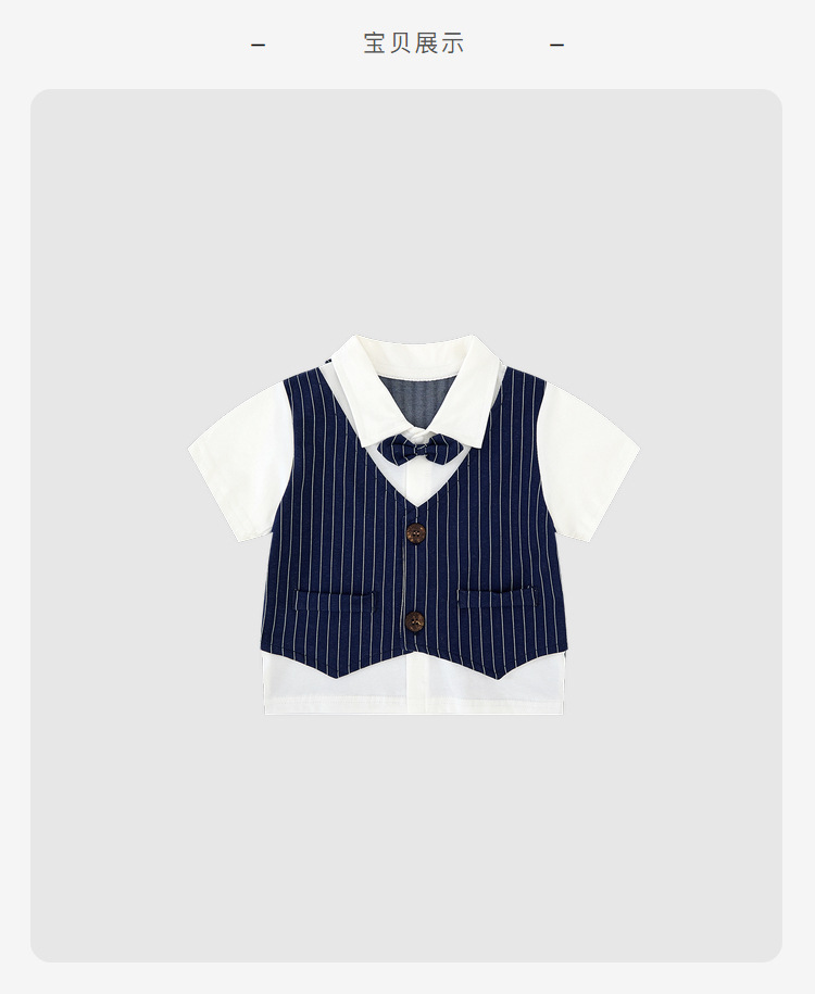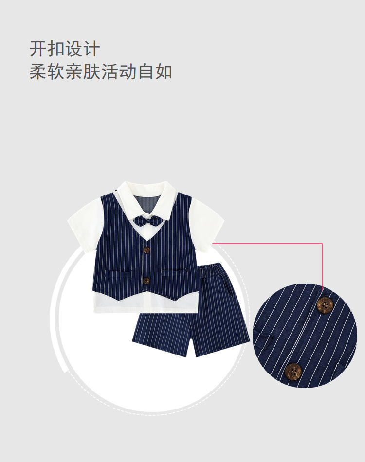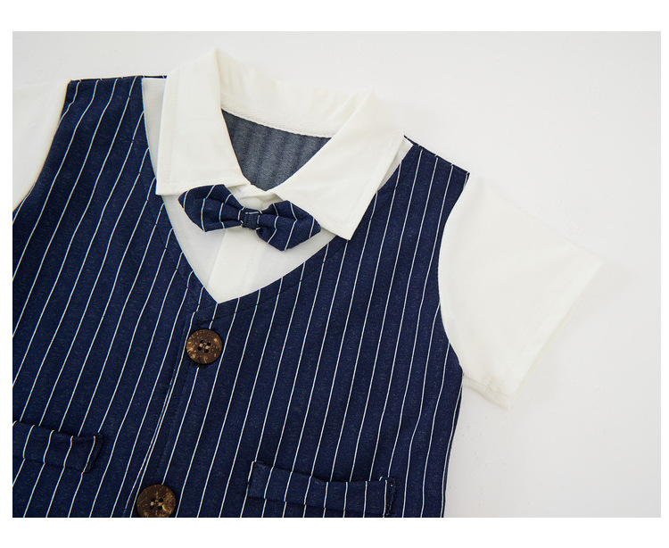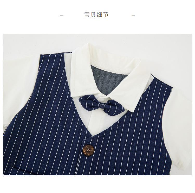 蓝竖条绅士小西装翻领领结短袖套装.jpg