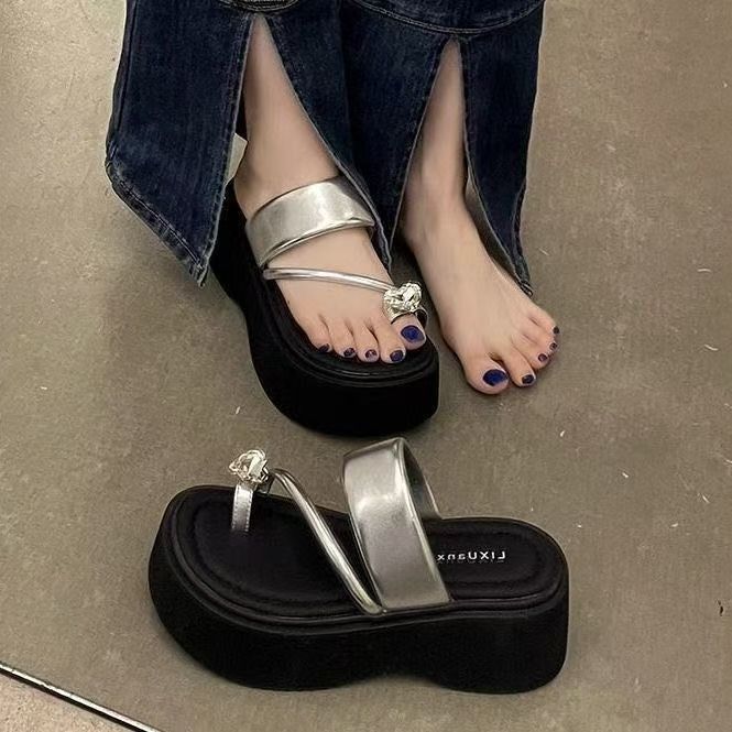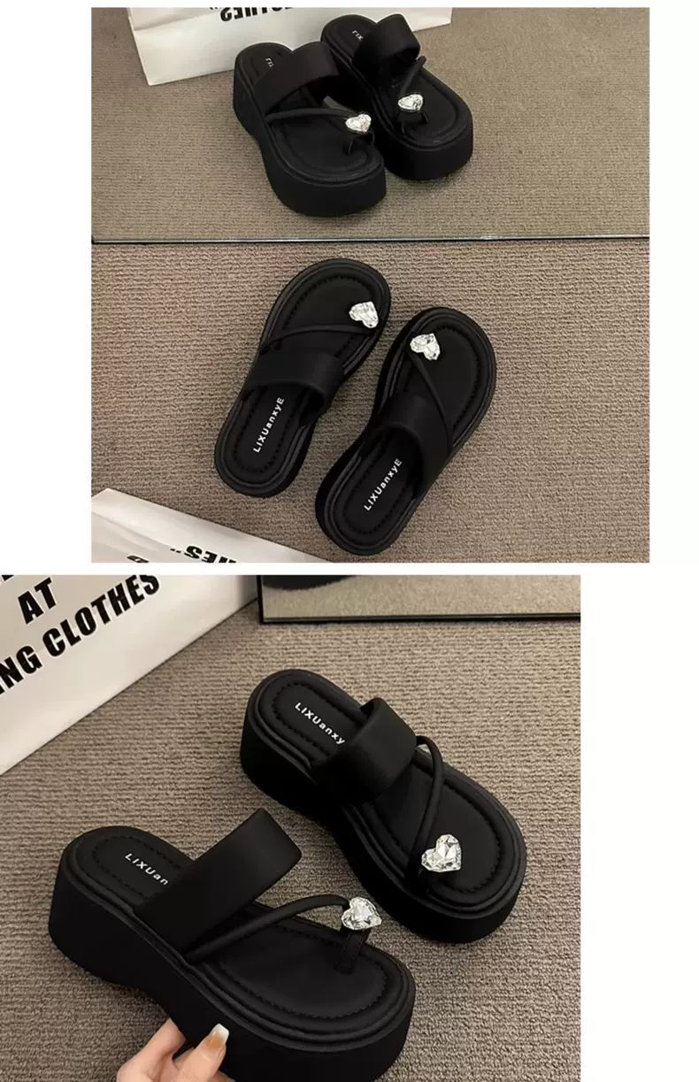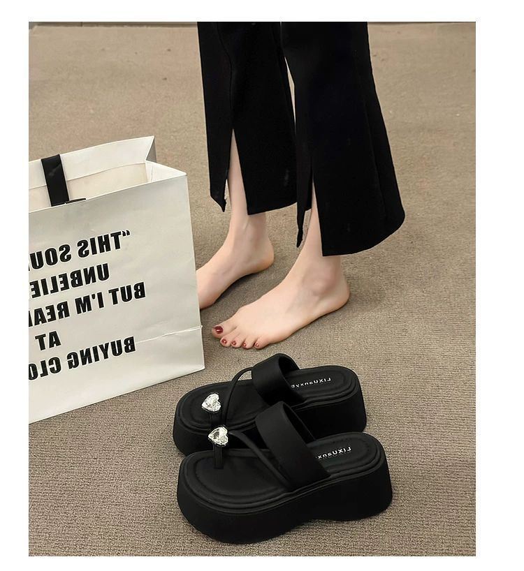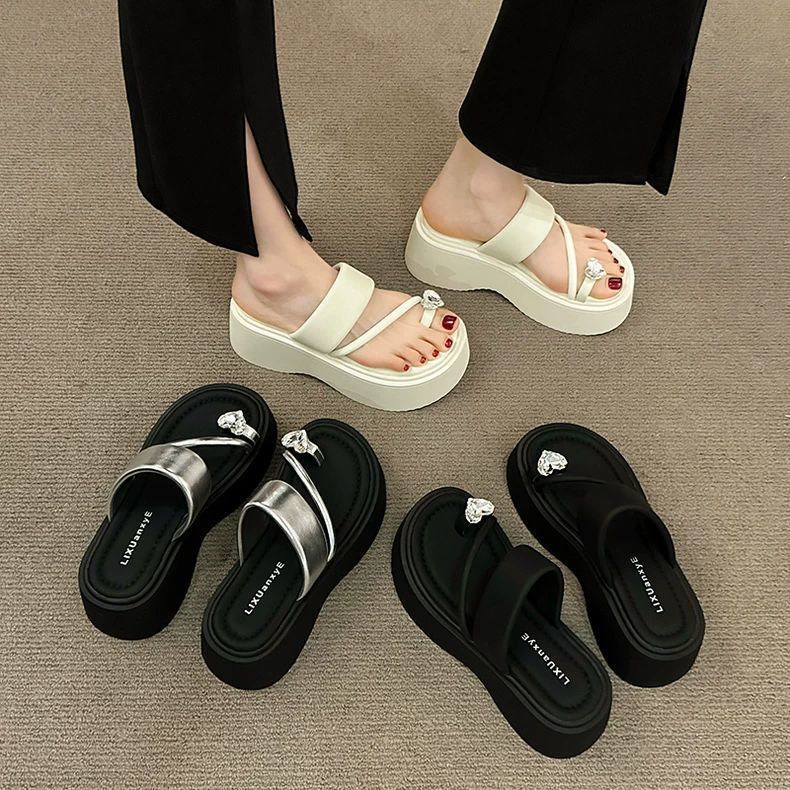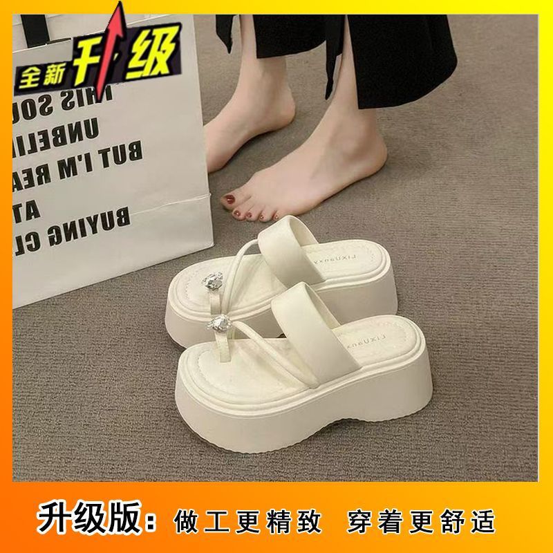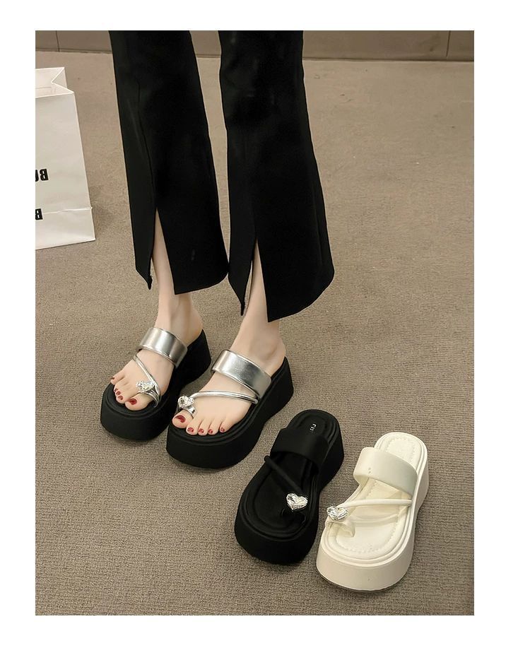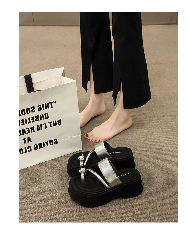 여성용 인기 두꺼운 밑창 작은 키 높이 라인스톤 샌들, 2025년 여름 신상 패션 슬리퍼스토어 가기