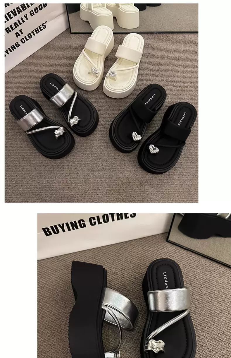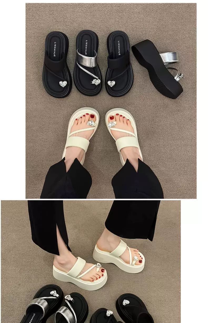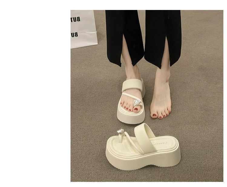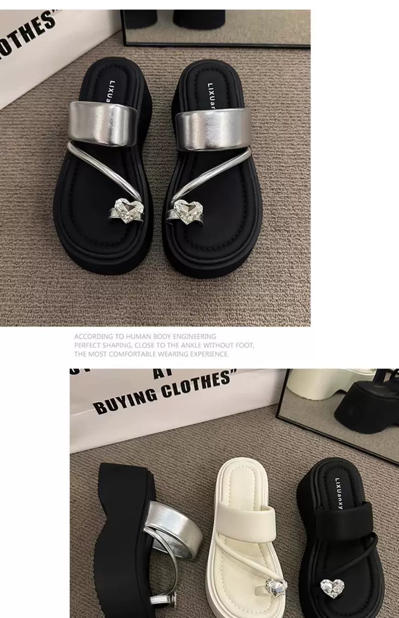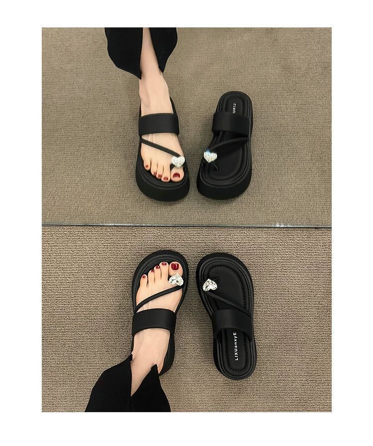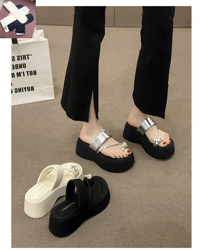 여성용 인기 두꺼운 밑창 작은 키 높이 라인스톤 샌들, 2025년 여름 신상 패션 슬리퍼스토어 가기