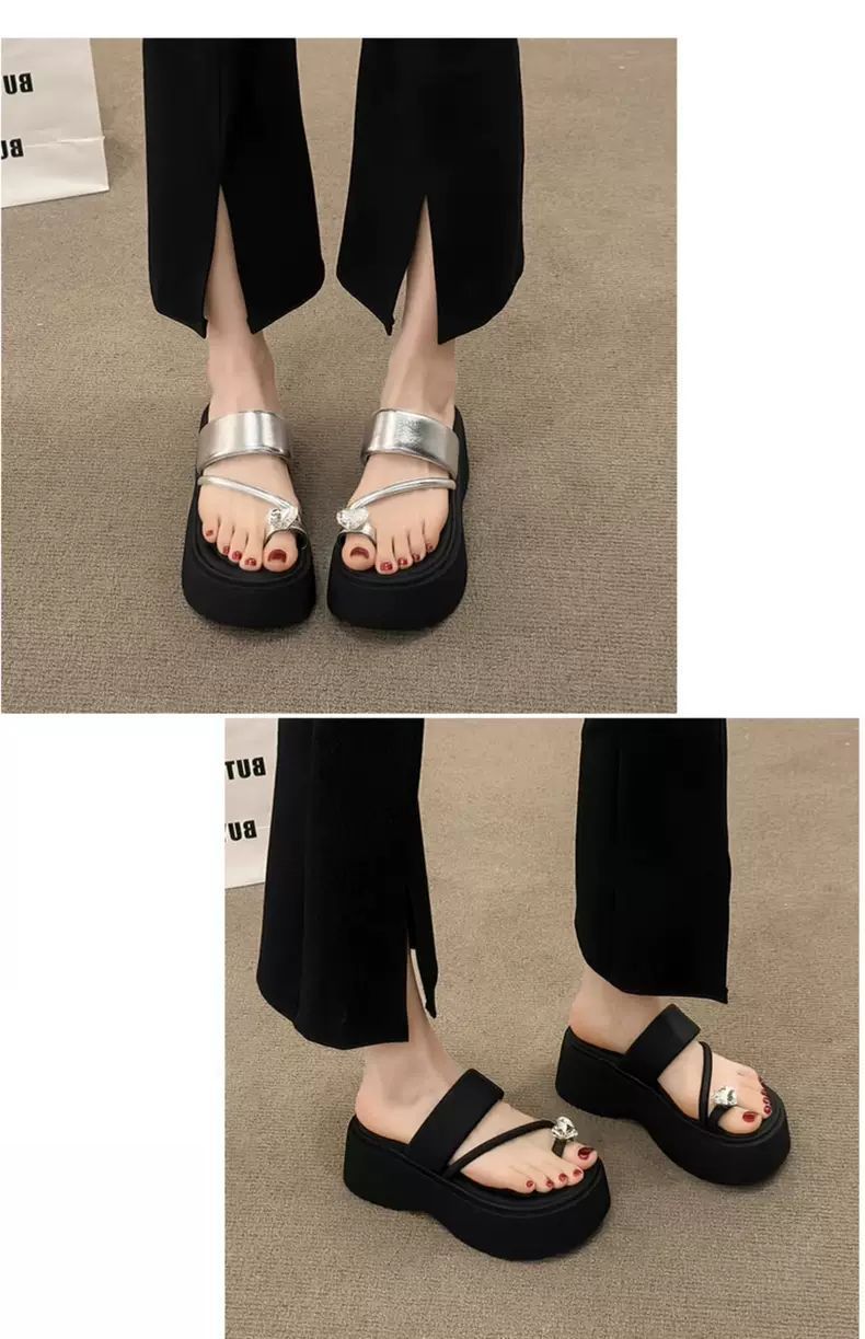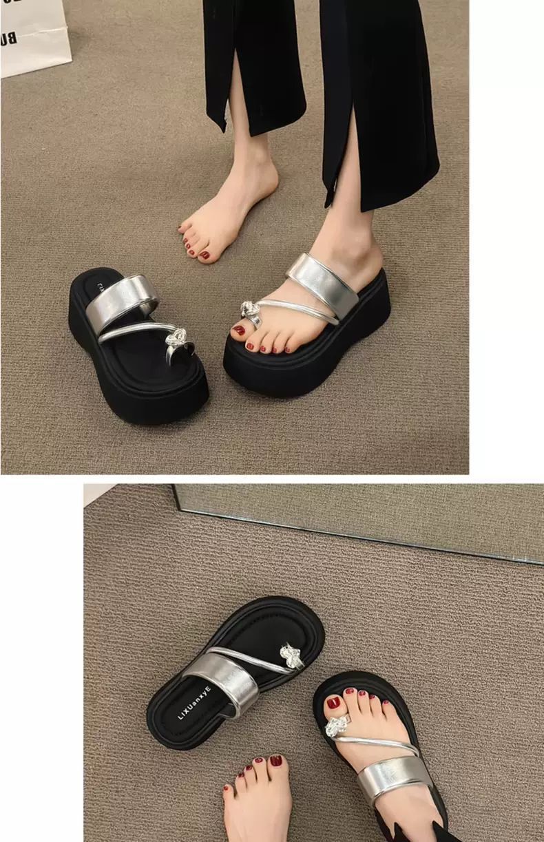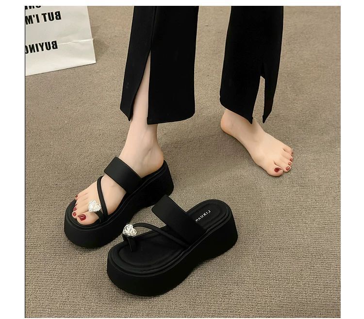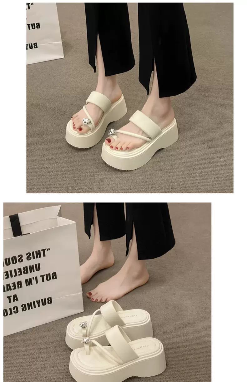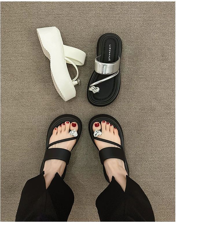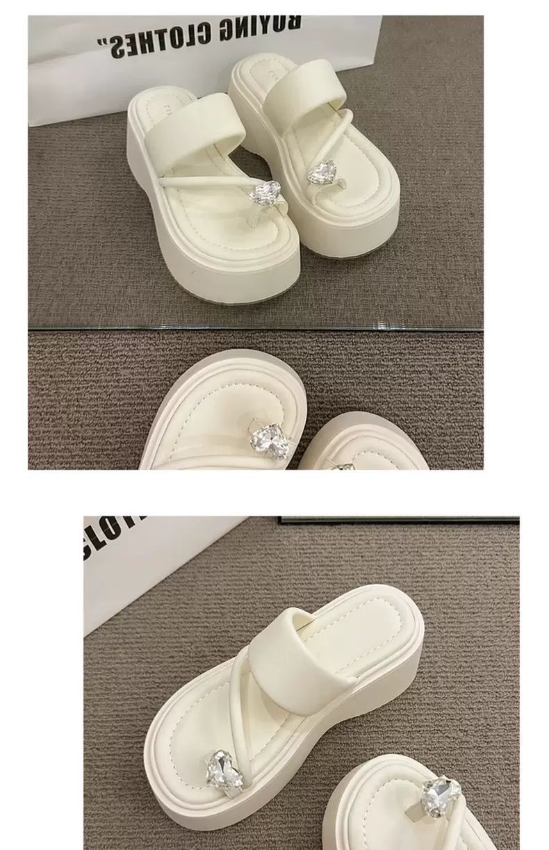 여성용 인기 두꺼운 밑창 작은 키 높이 라인스톤 샌들, 2025년 여름 신상 패션 슬리퍼스토어 가기