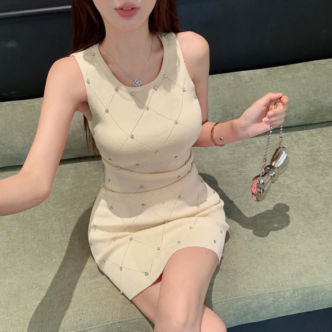 2025 여름 중공업 비즈 틈새 슬리밍 드레스 여름 기질 민소매 중간 길이 스커트스토어 가기