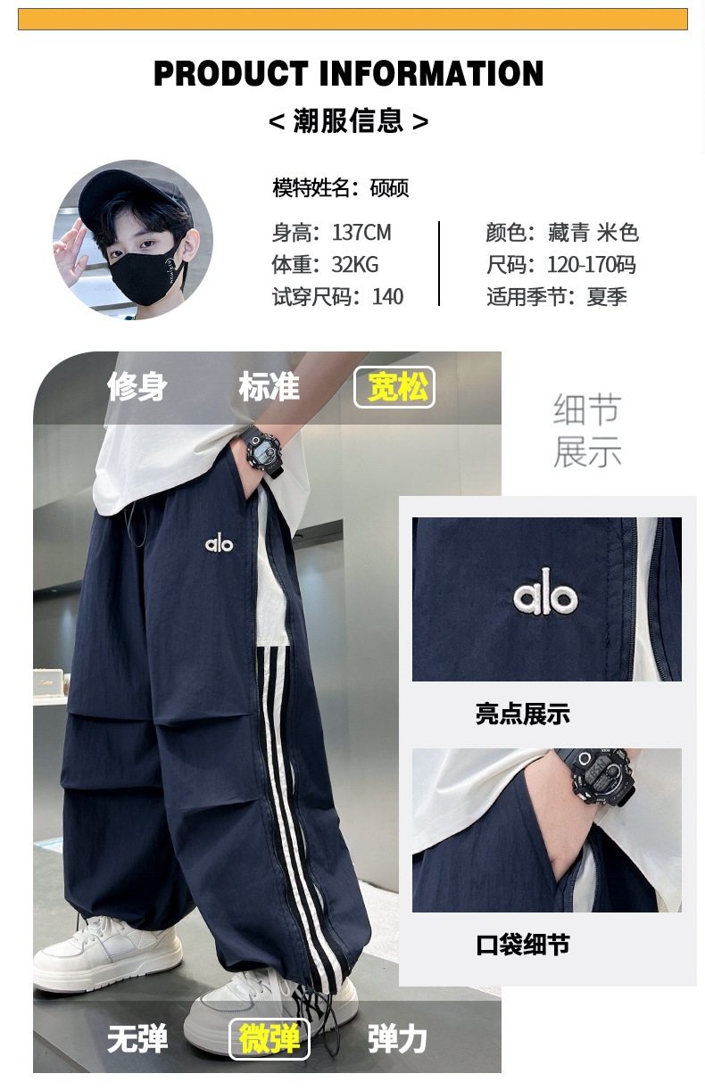 소년 여름 스포츠 속건 바지 얇은 2025 새로운 큰 어린이 여름 소년 얼음 실크 캐주얼 모기 방지 바지스토어 가기