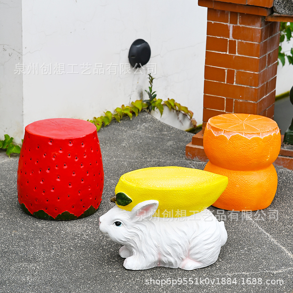 국경 간 딸기 조각 의자 유치원 풍경 안뜰 목가적 인 레몬 토끼 수지 공예 장식 좌석