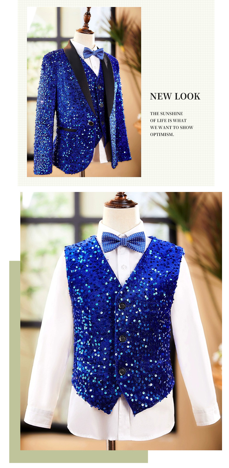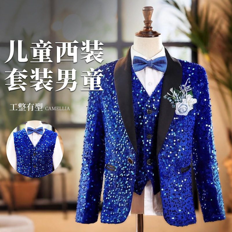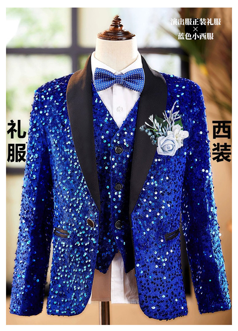 스팽글 어린이 정장 정장 블루 소년 드레스 호스트 정장 낭송 기타 모델 패션쇼 의상스토어 가기