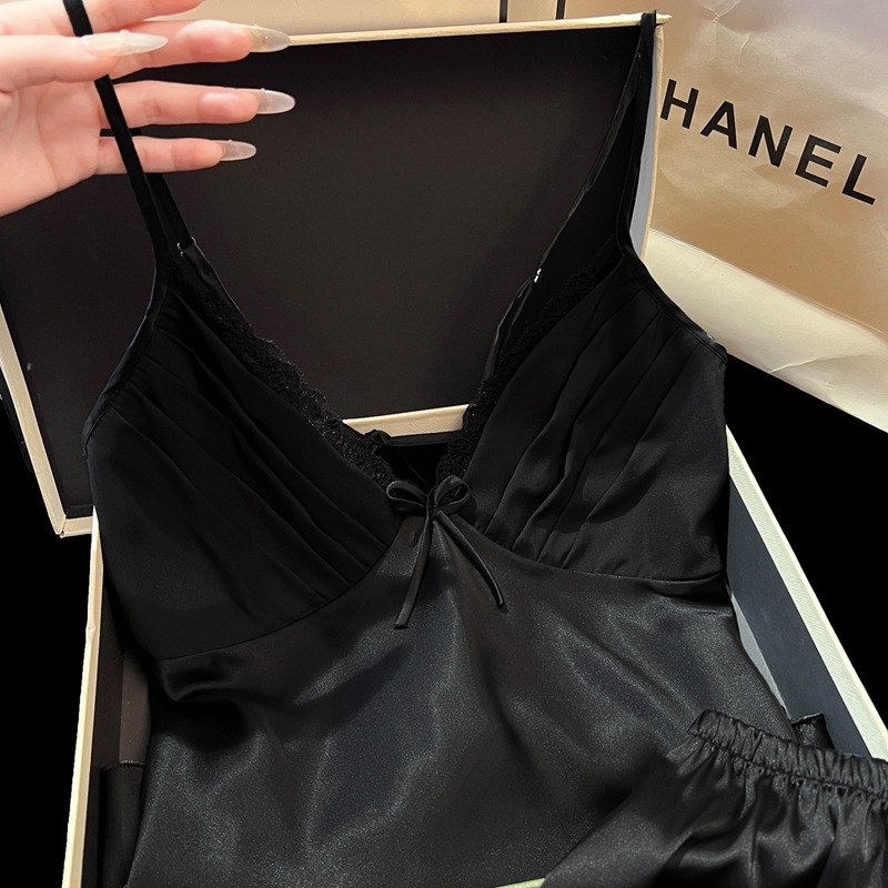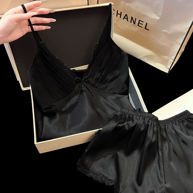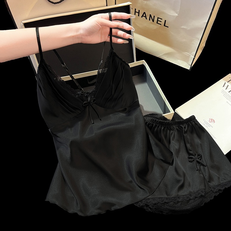 2025 새로운 여름 얼음과 눈 실크 잠옷 여성 섹시한 서스펜더 반바지 투피스 세트 순수한 욕망 스타일 홈웨어 세트