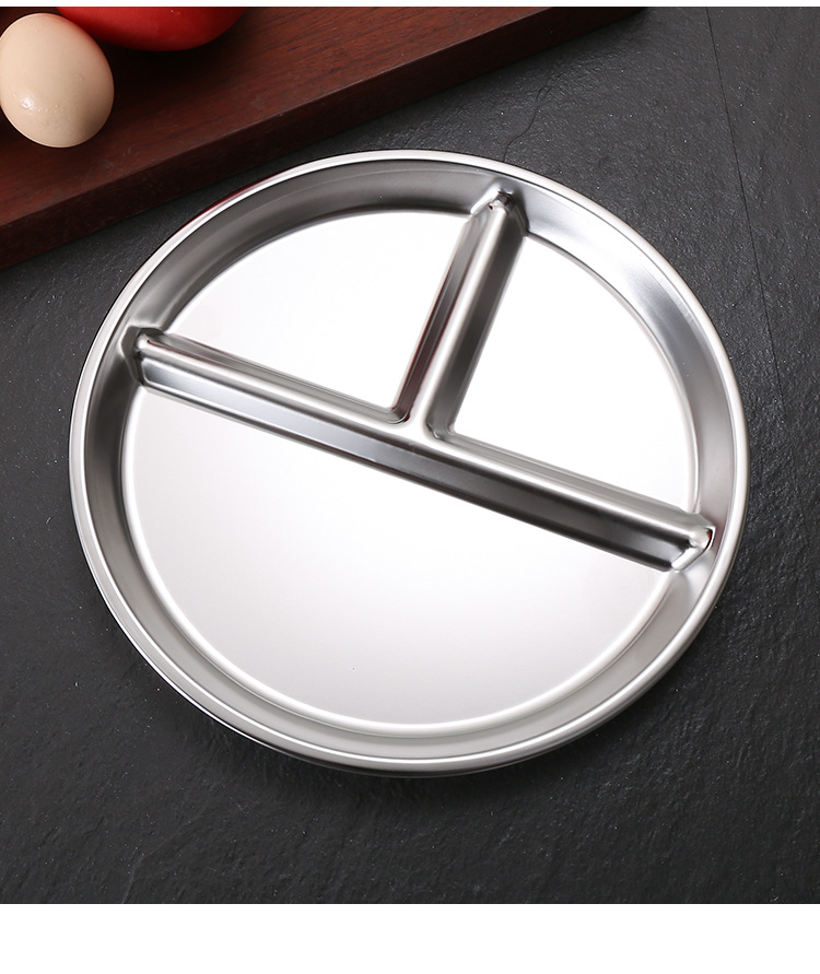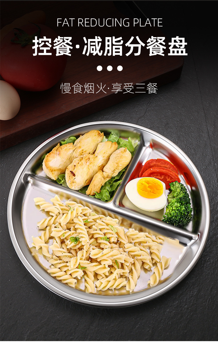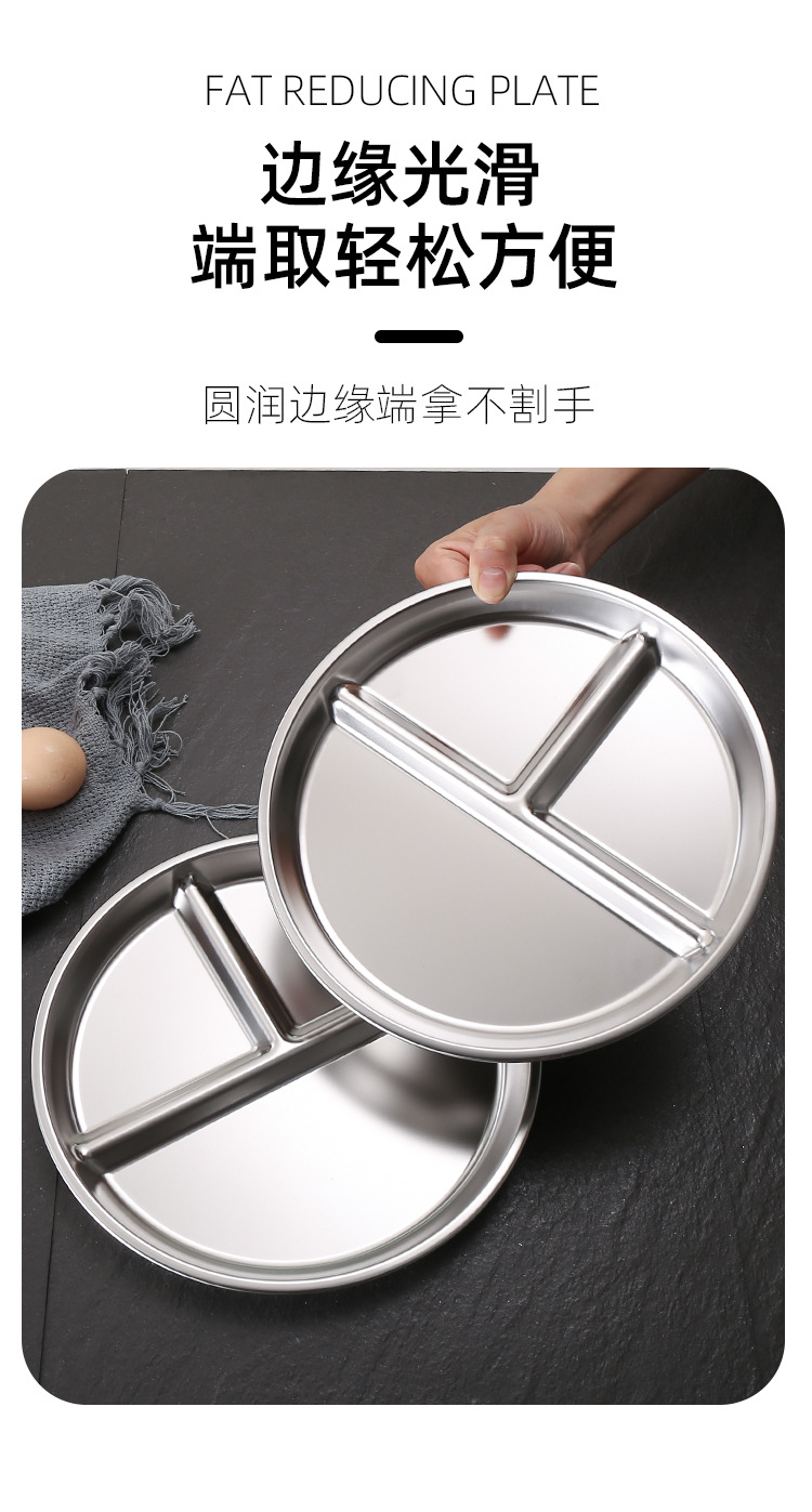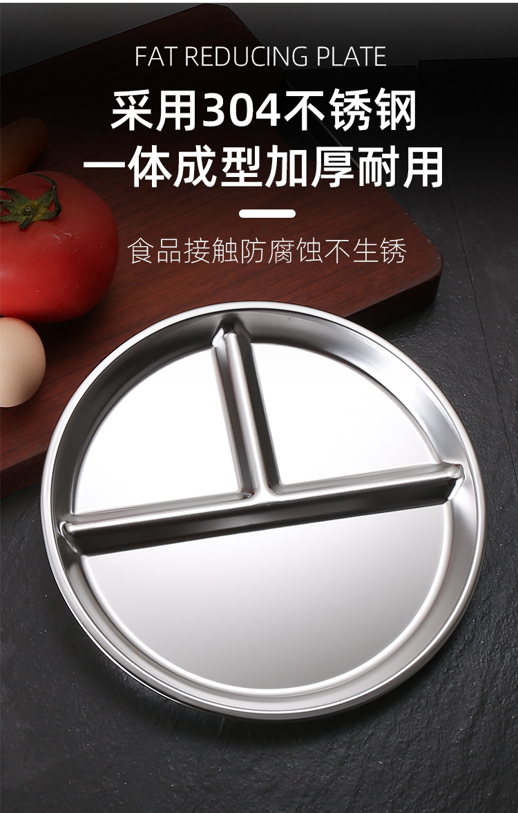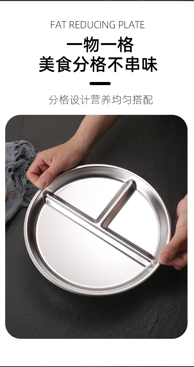 304 스테인리스 스틸 디너 플레이트, 3칸 원형 플레이트, 성인용 정량 지방 감량 디너 플레이트, 학생용 비율 스낵 플레이트, 얕은 플레이트스토어 가기