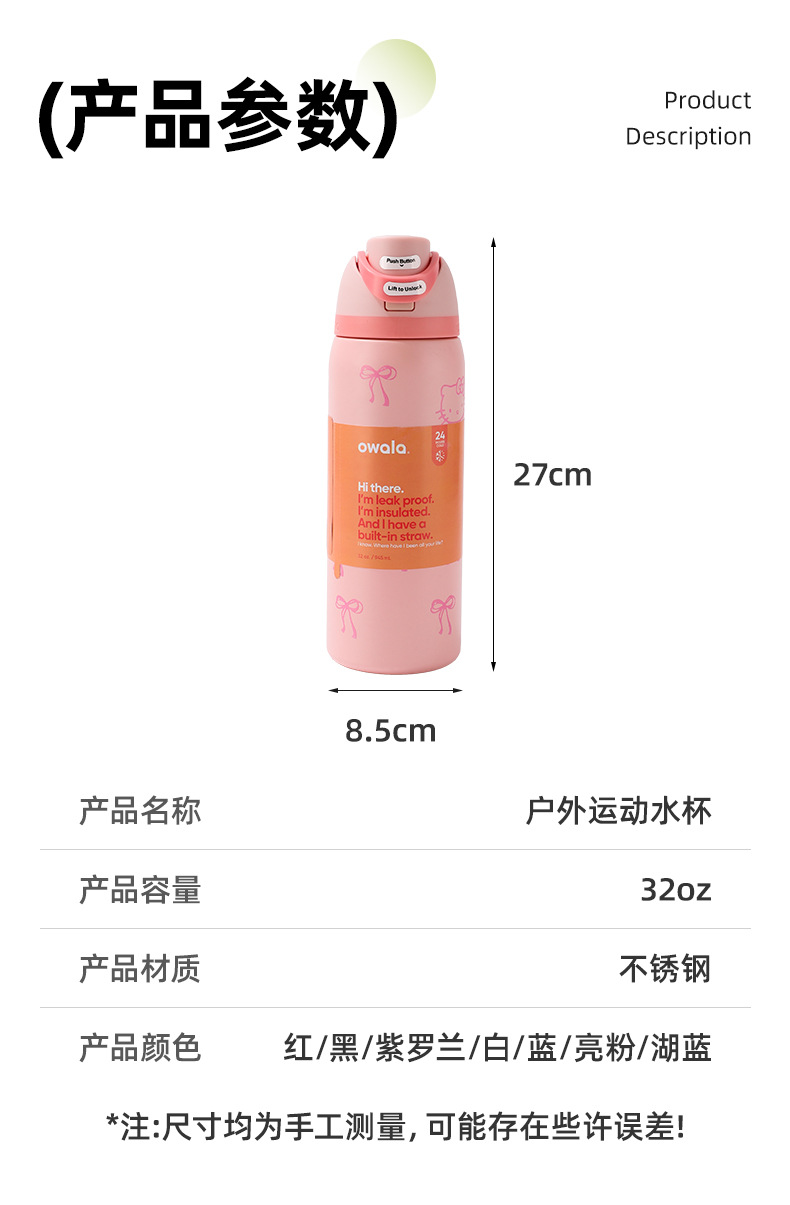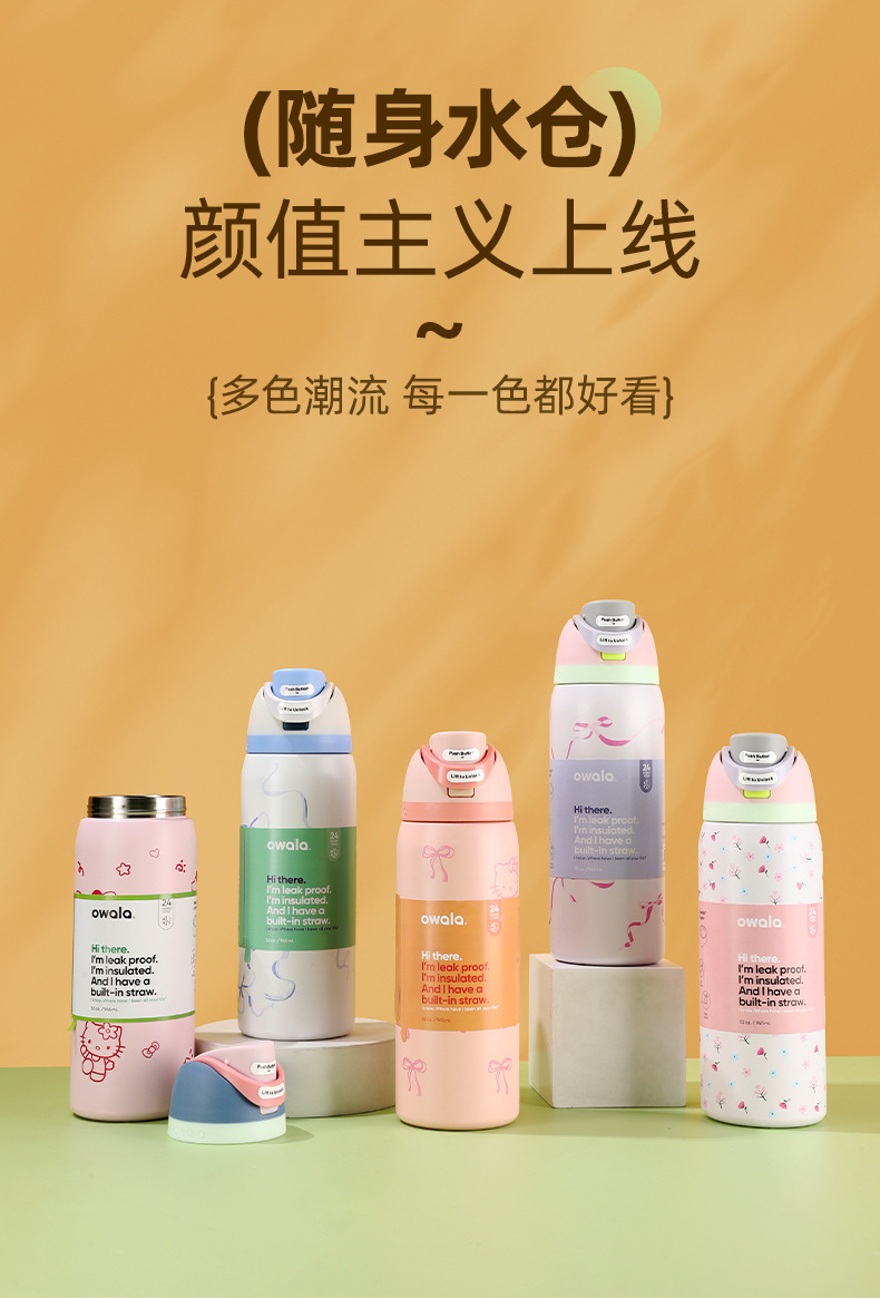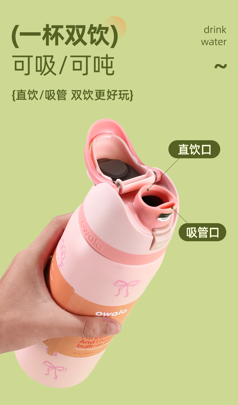 국경 간 새로운 owala 보온병 컵 더블 레이어 진공 스포츠 워터 컵 야외 핸들 워터 컵 더블 드링킹 컵 도매