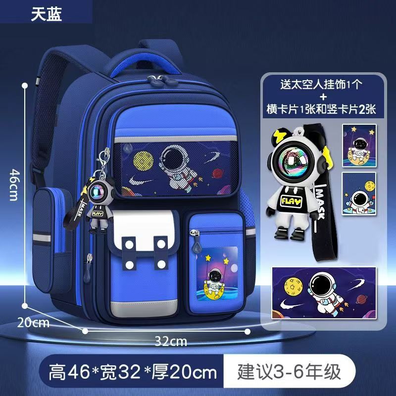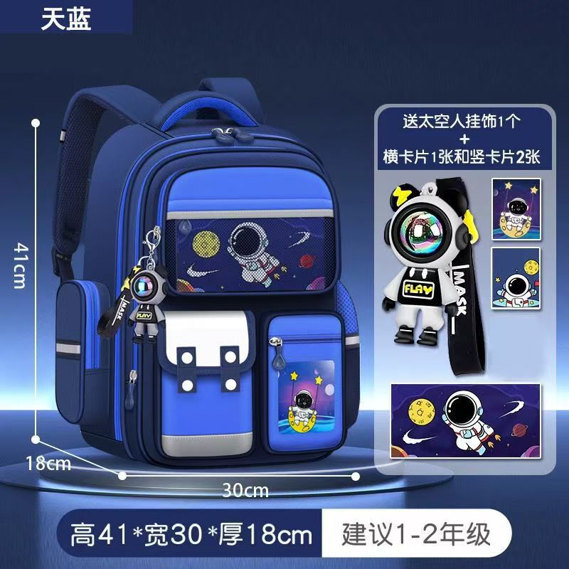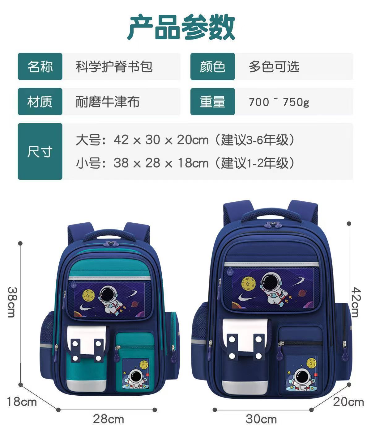 우주 비행사 어린이 대용량 책가방 소년 초등학교 1-6 학년 척추 보호 및 부담 감소 초경량 소년 배낭