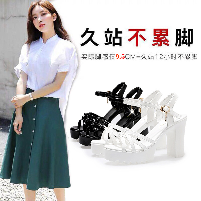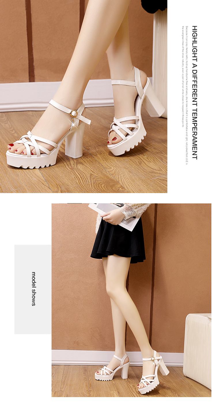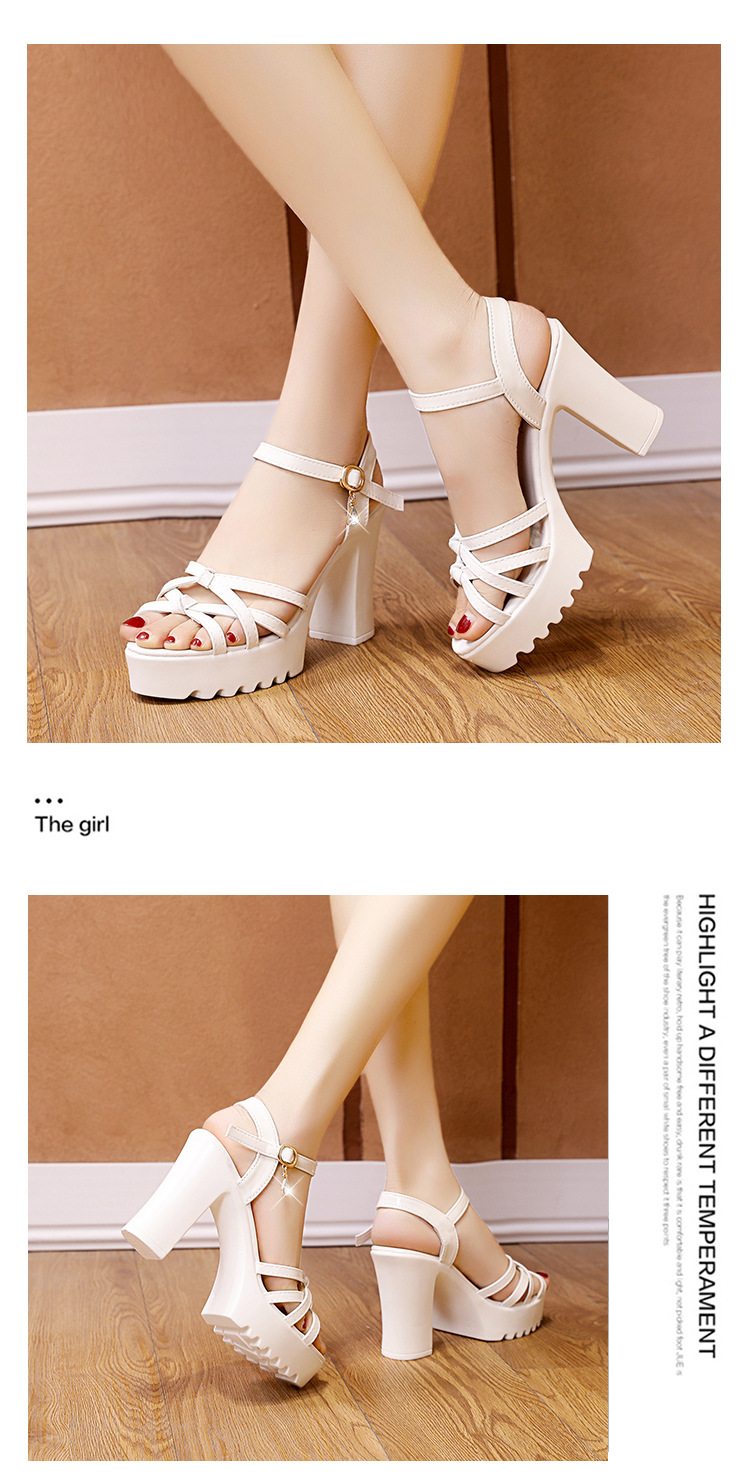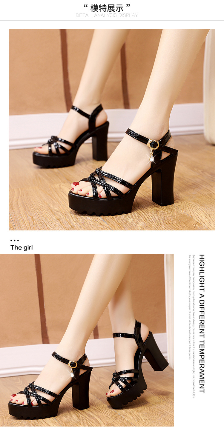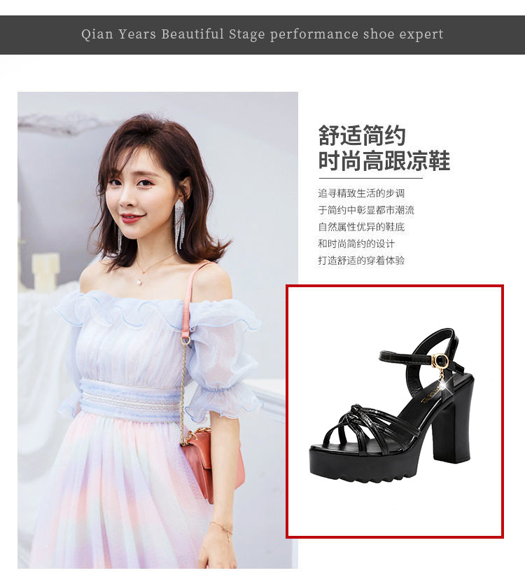 대외 무역 크로스보더 하이힐 샌들, 두꺼운 굽, 방수 플랫폼, 얇은 스트랩 조합, 여름 부드러운 가죽, 편안하고 세련된 여성 신발
