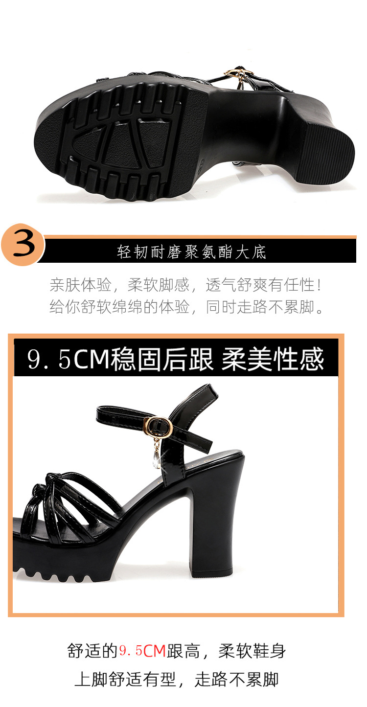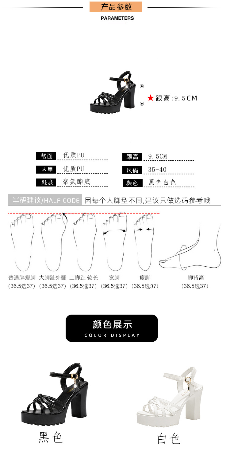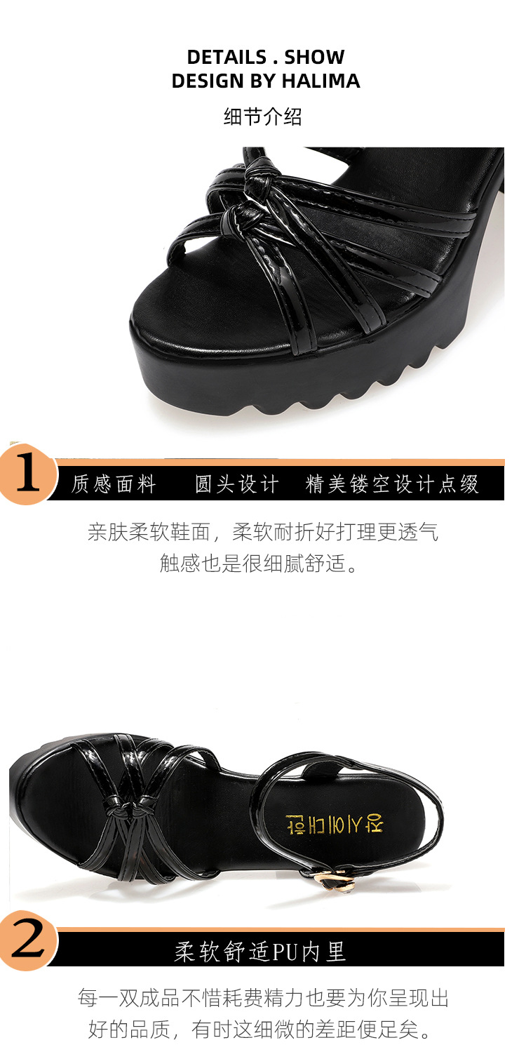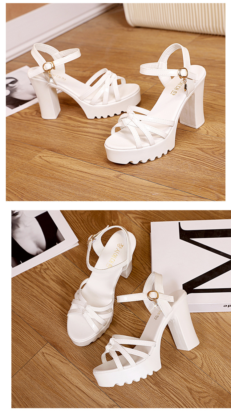 대외 무역 크로스보더 하이힐 샌들, 두꺼운 굽, 방수 플랫폼, 얇은 스트랩 조합, 여름 부드러운 가죽, 편안하고 세련된 여성 신발