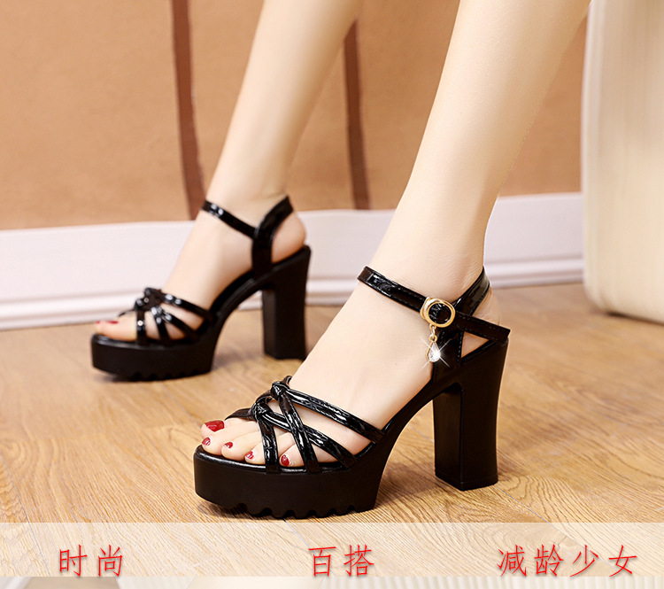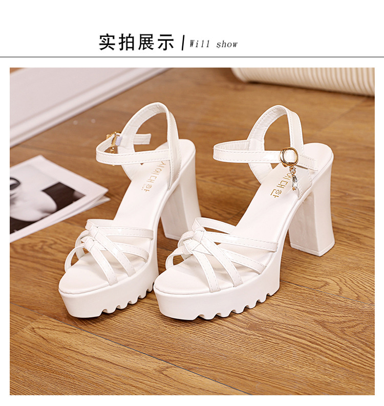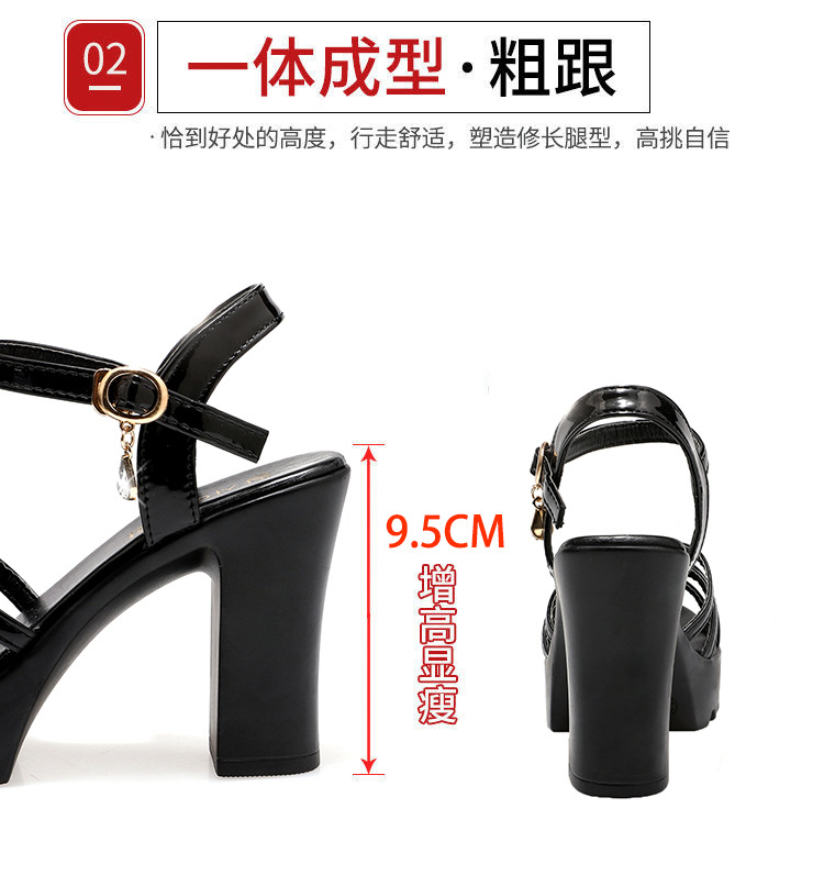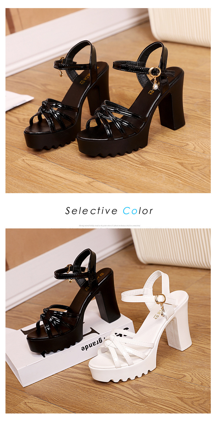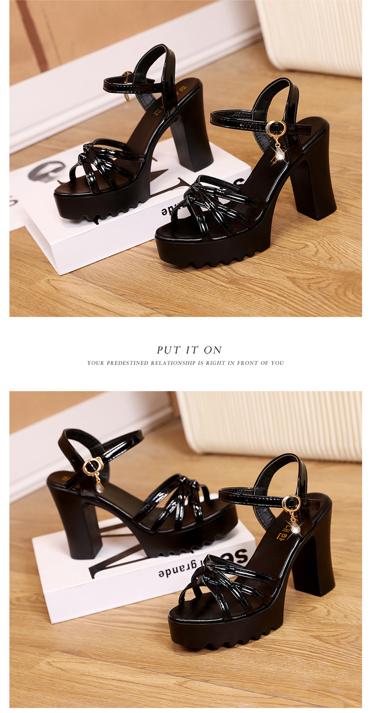 대외 무역 크로스보더 하이힐 샌들, 두꺼운 굽, 방수 플랫폼, 얇은 스트랩 조합, 여름 부드러운 가죽, 편안하고 세련된 여성 신발