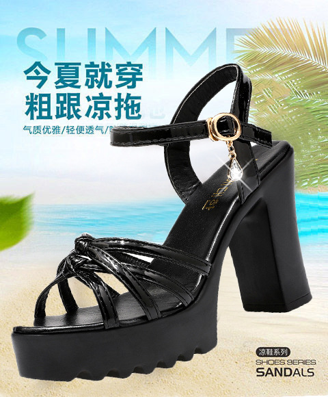 대외 무역 크로스보더 하이힐 샌들, 두꺼운 굽, 방수 플랫폼, 얇은 스트랩 조합, 여름 부드러운 가죽, 편안하고 세련된 여성 신발스토어 가기