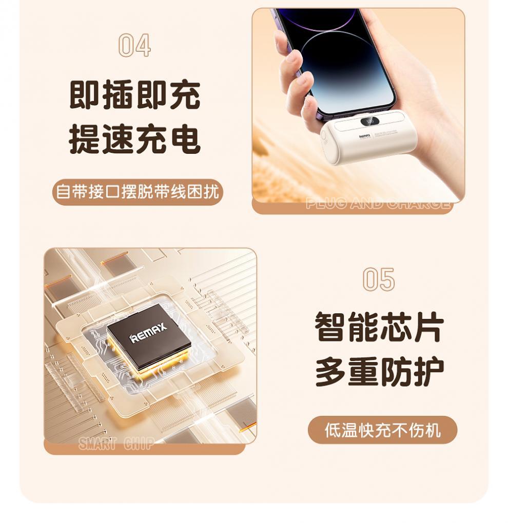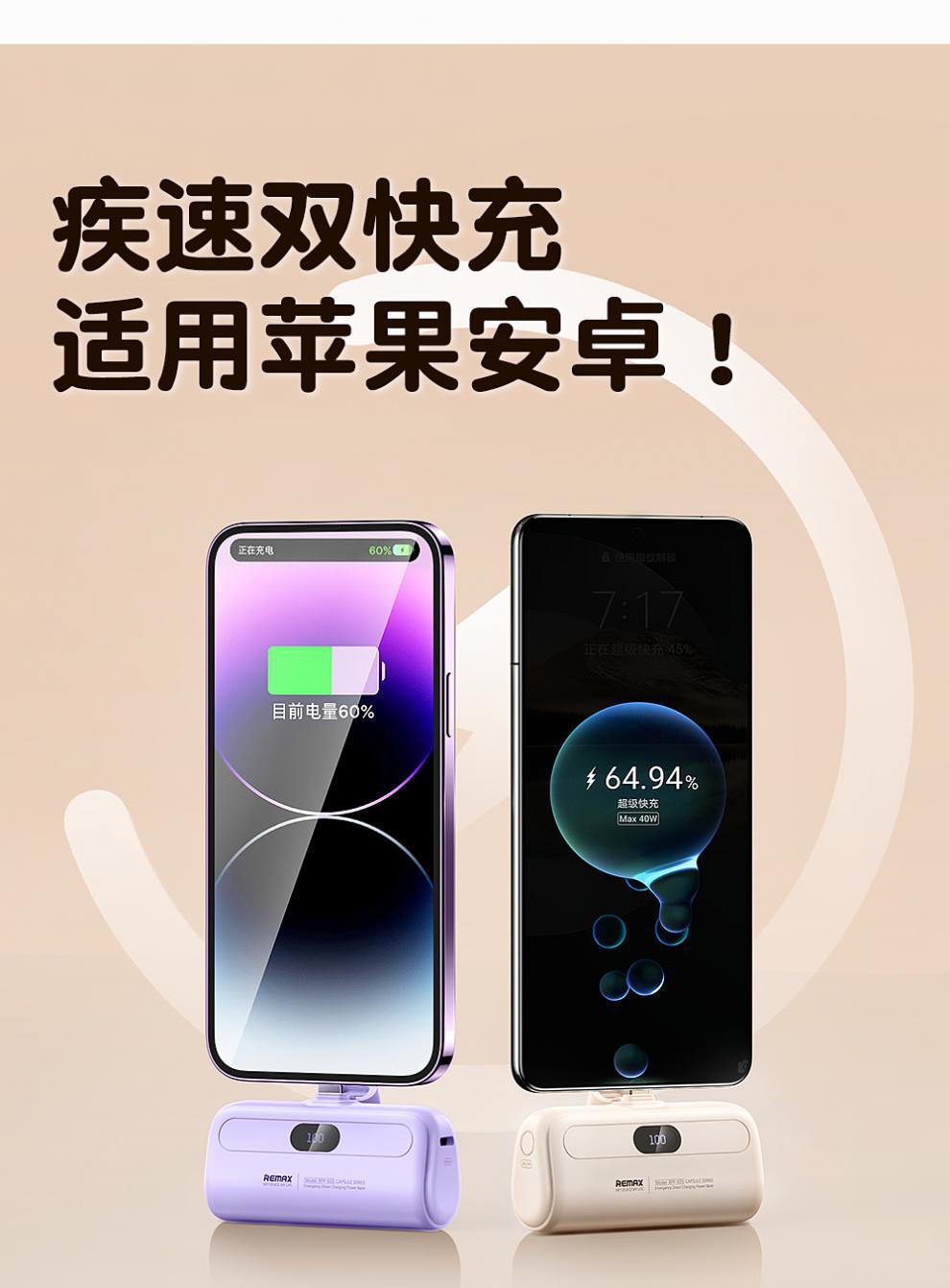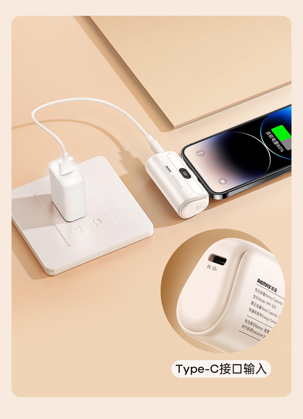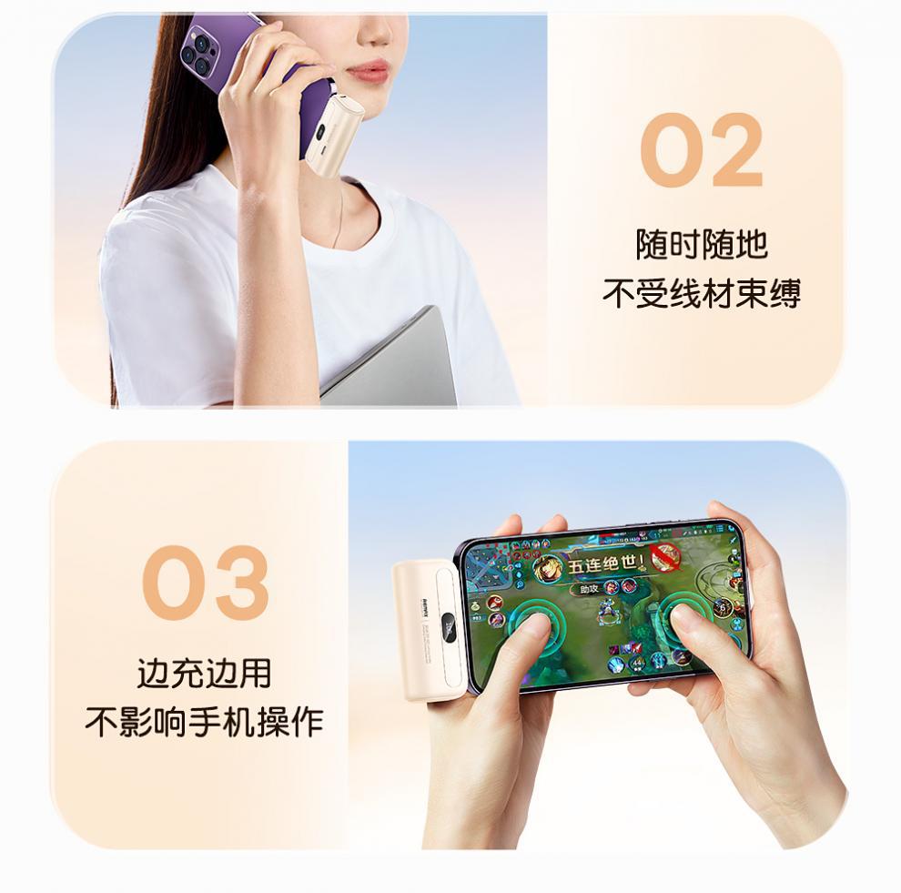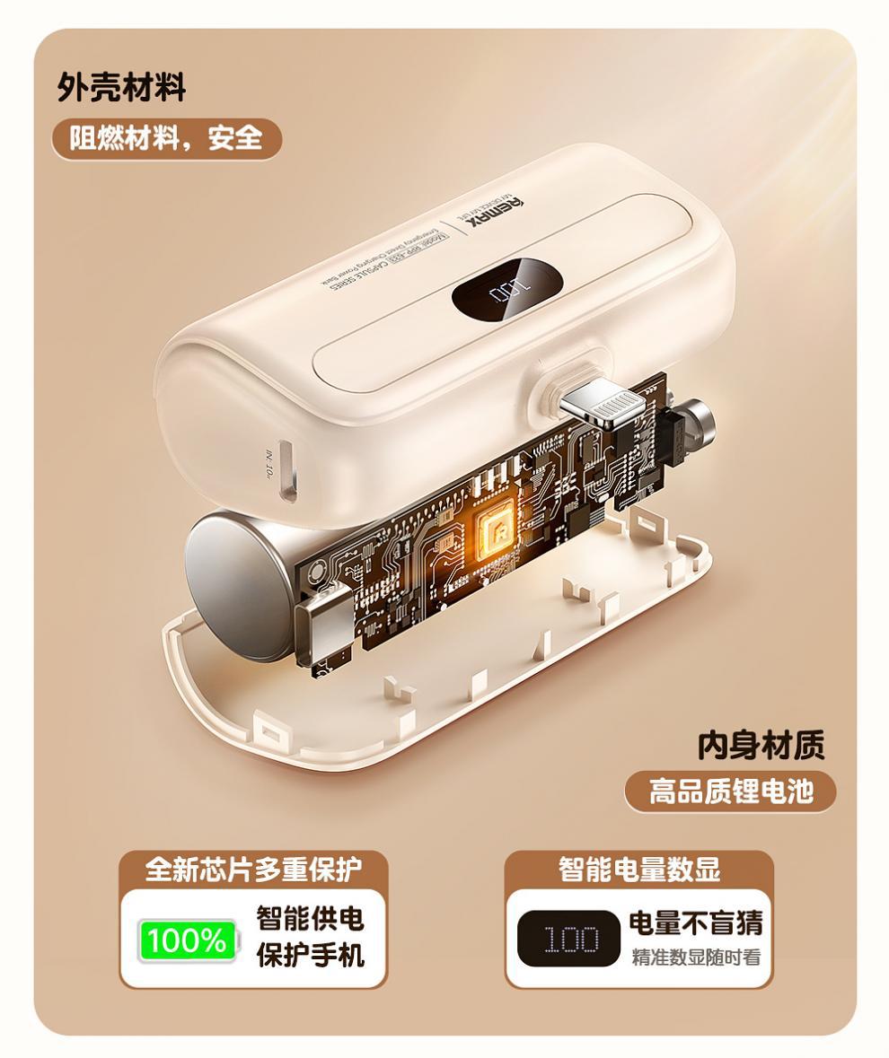 Ruiliang 미니 캡슐 보조베터리 5000mAh 소형 고속 충전 및 내구성이 뛰어난 Huawei 및 Apple에 적합한 모바일 전원 공급 장치