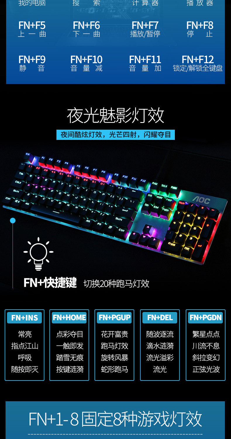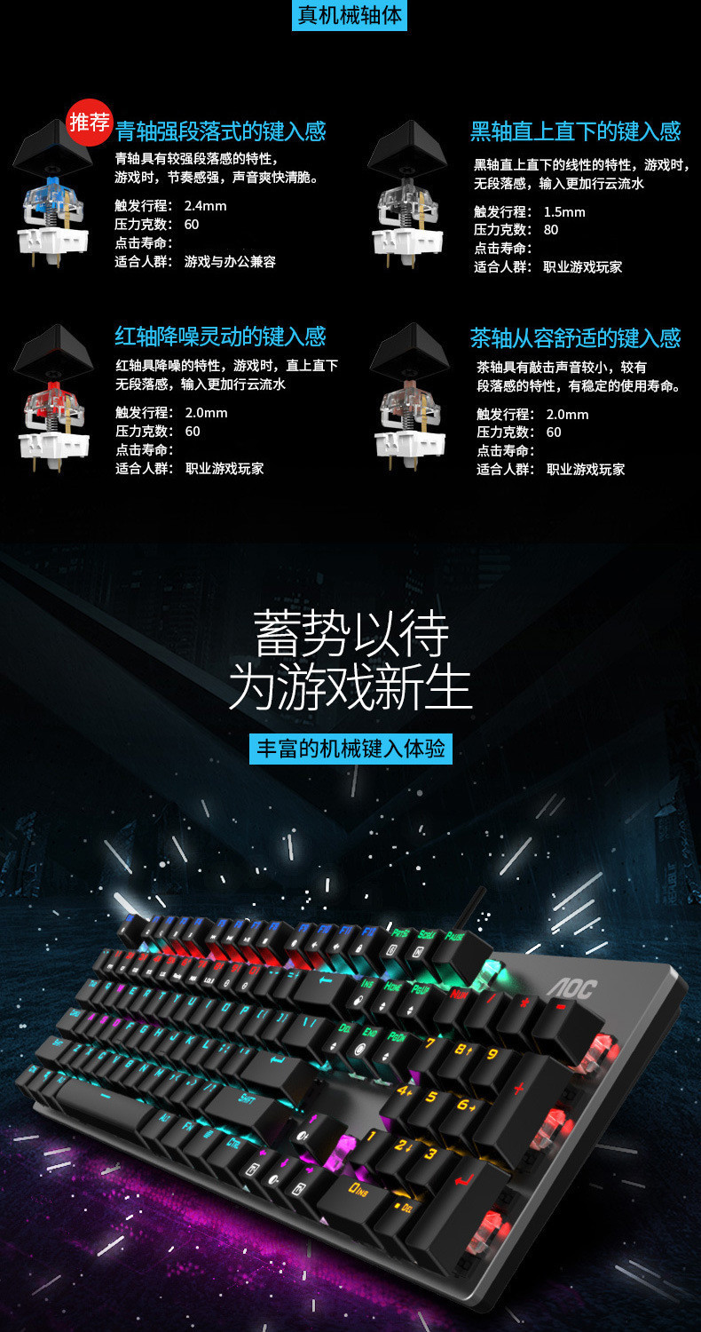 AOCGK410 기계식 키보드 유선 녹색 축 빨간색 축 게임 풀 키 무 버버리 데스크탑 노트북 키보드