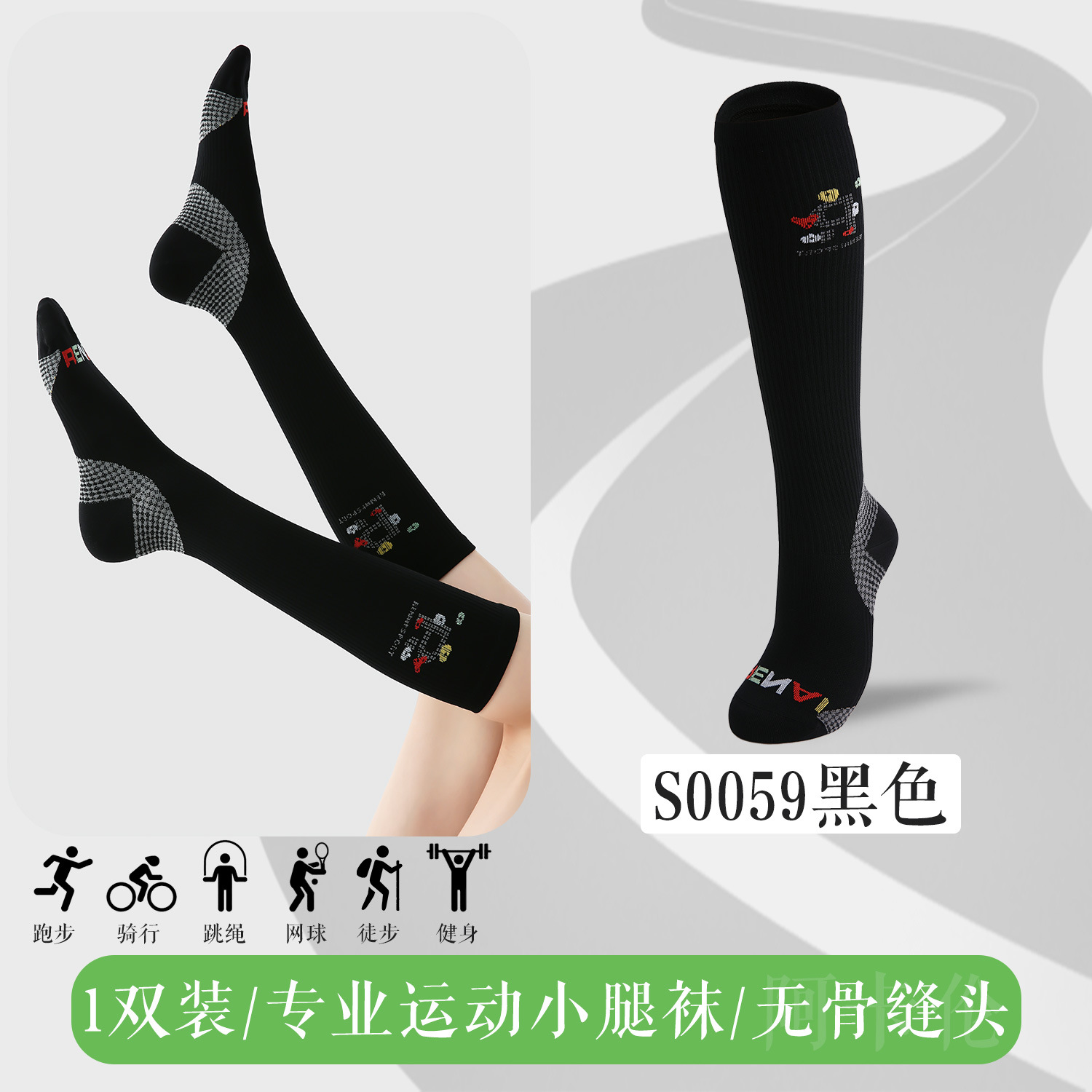 여성용 스포츠 압박 양말, 종아리 스타킹, 근육 압축 양말, 테니스 줄넘기, 사이클링, 야외 하이킹 및 등산 양말