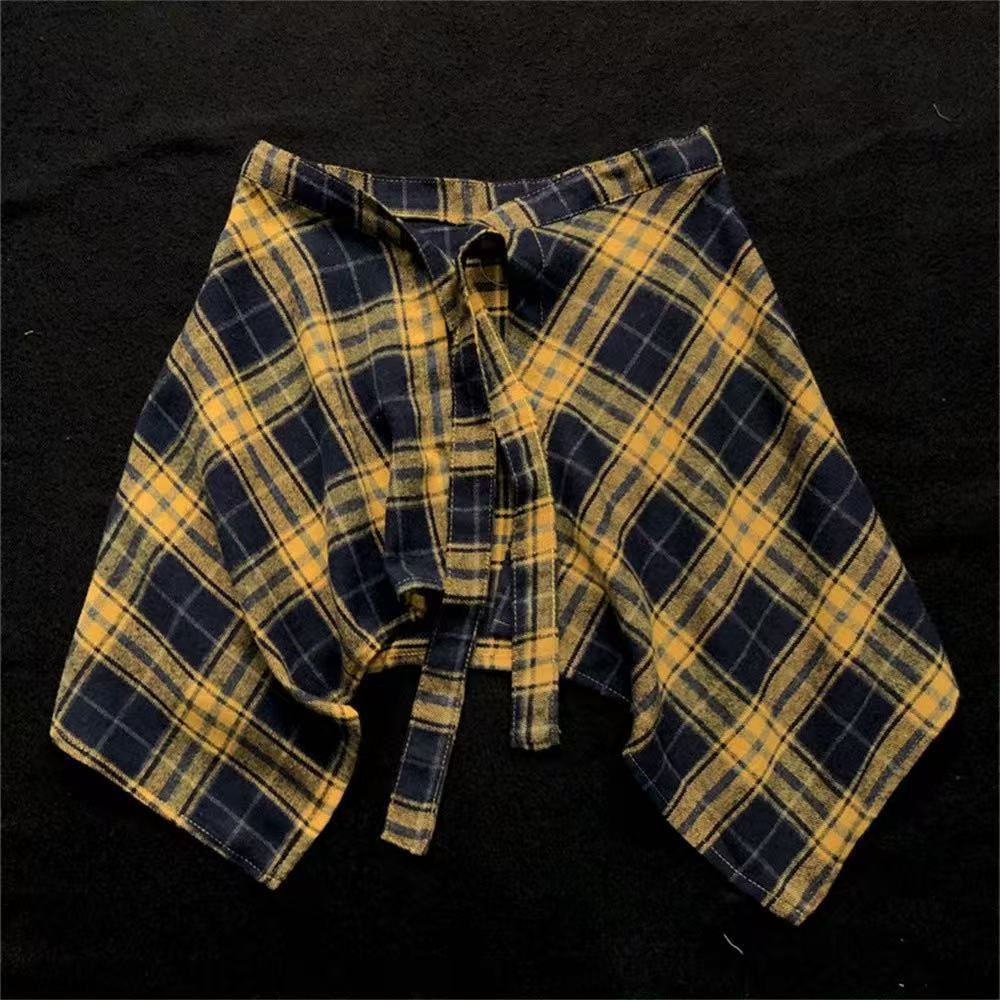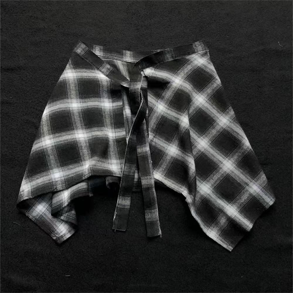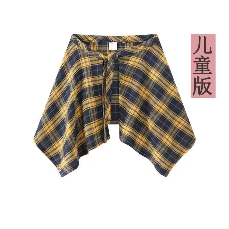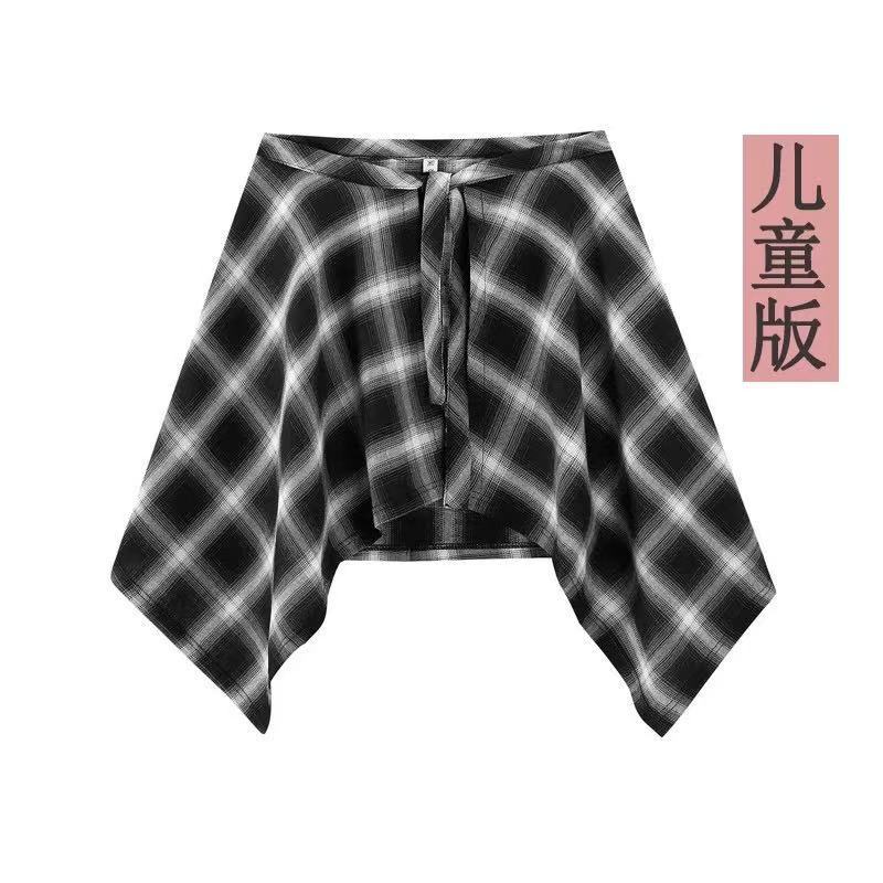소년과 소녀 여름 댄스 재즈 댄스 소녀 격자 무늬 커튼 스커트 허리 스트랩 가짜 셔츠 레이어드 스커트