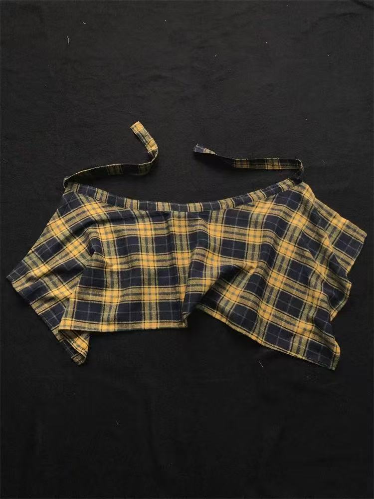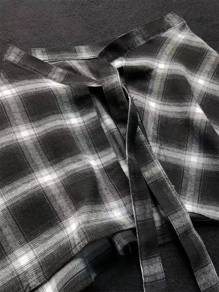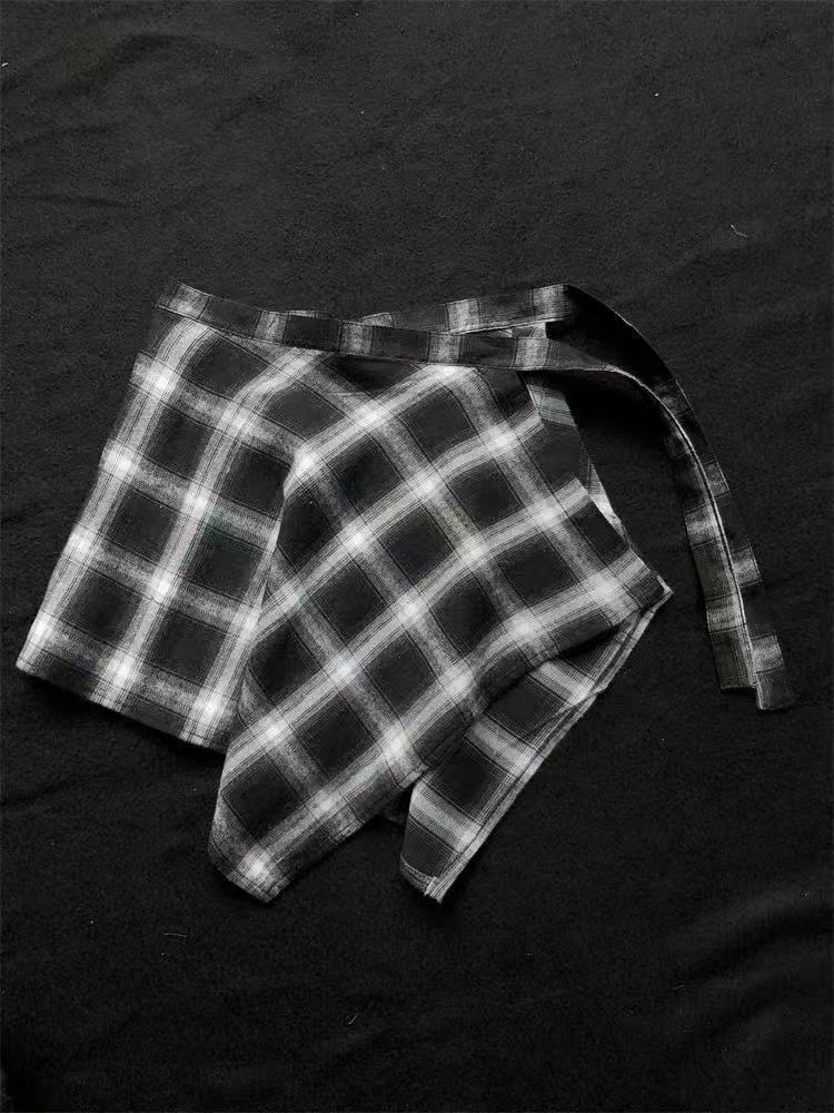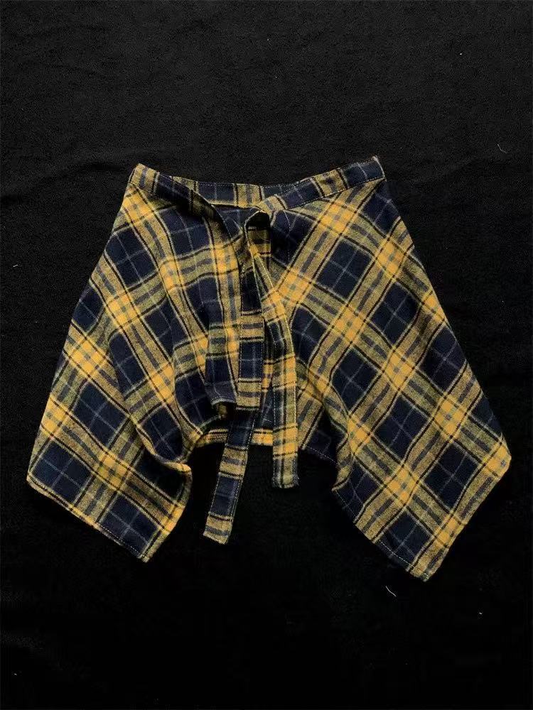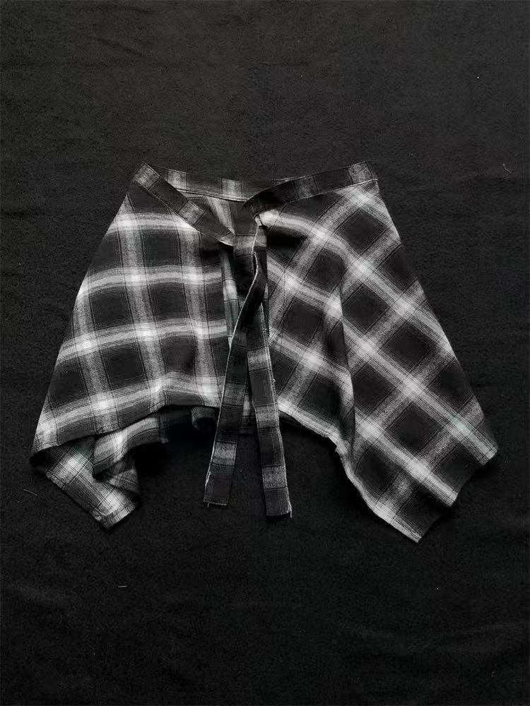 소년과 소녀 여름 댄스 재즈 댄스 소녀 격자 무늬 커튼 스커트 허리 스트랩 가짜 셔츠 레이어드 스커트