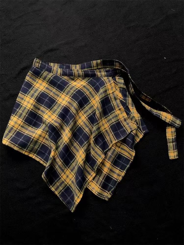 소년과 소녀 여름 댄스 재즈 댄스 소녀 격자 무늬 커튼 스커트 허리 스트랩 가짜 셔츠 레이어드 스커트스토어 가기