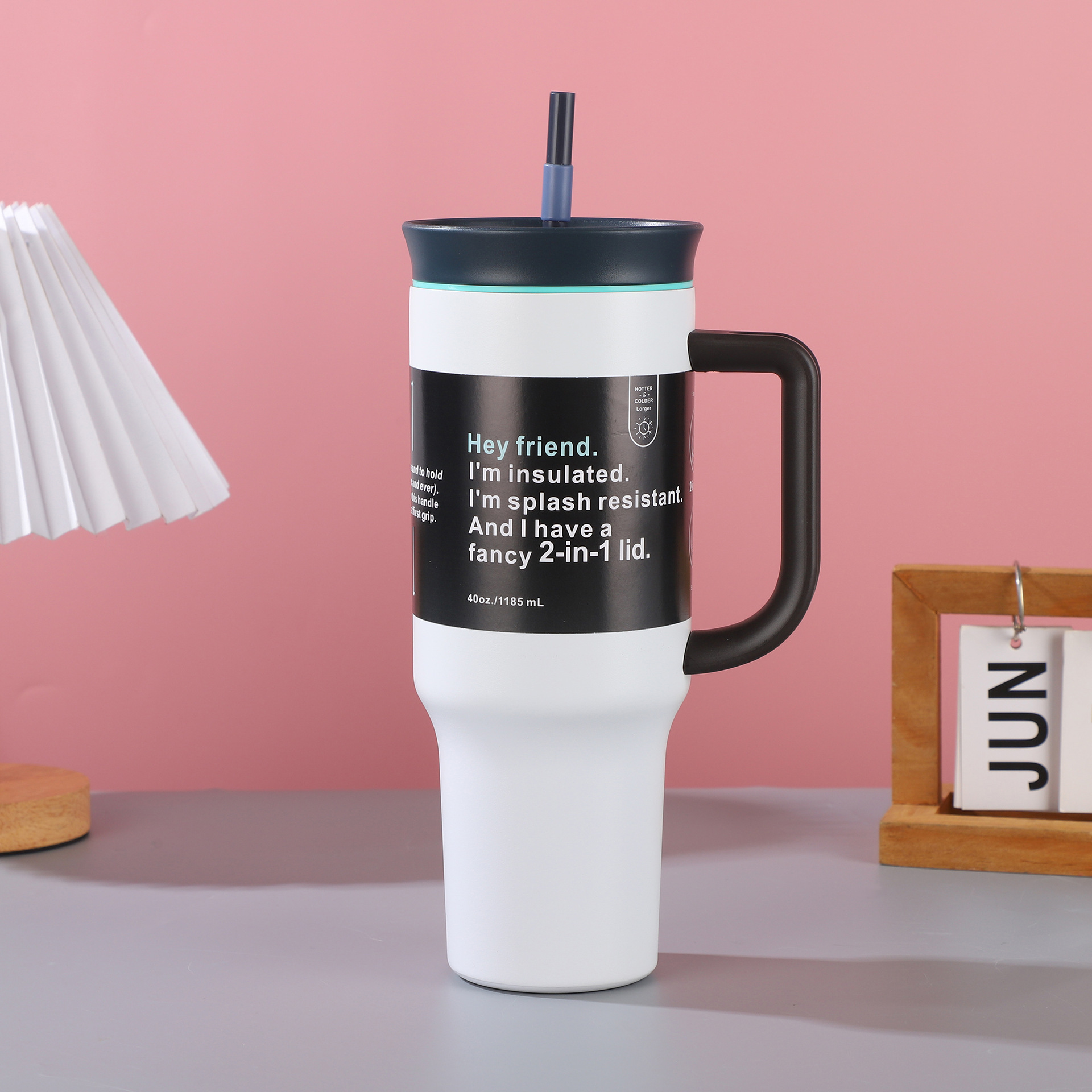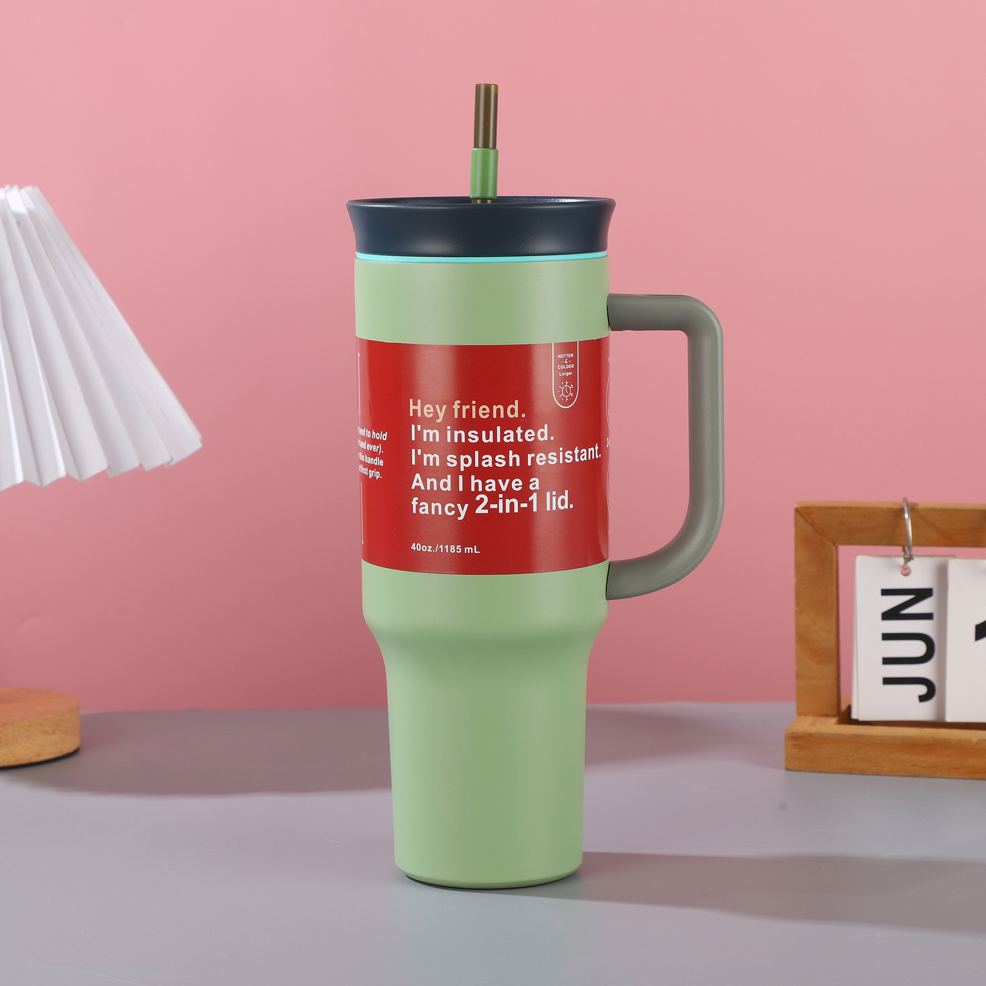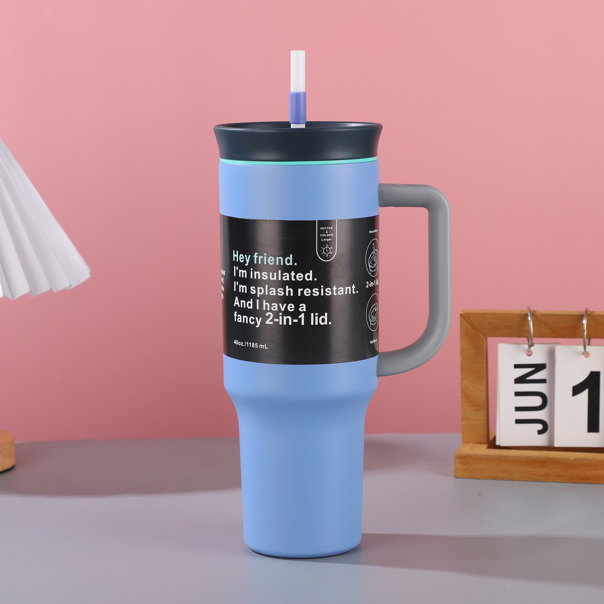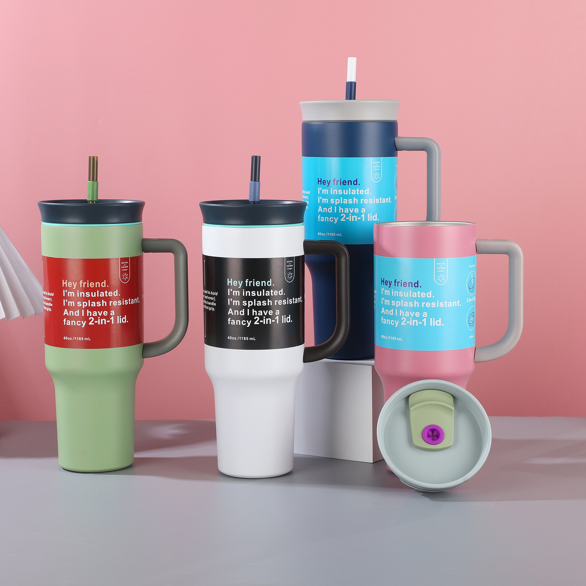 새로운 owala 같은 스타일의 보온병 컵 40oz 자동차 컵 스테인레스 스틸 자동차 손잡이 보온 및 냉각 얼음 컵