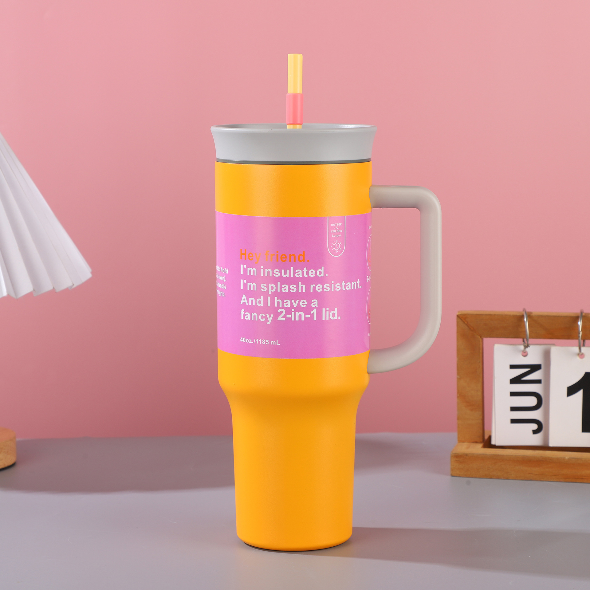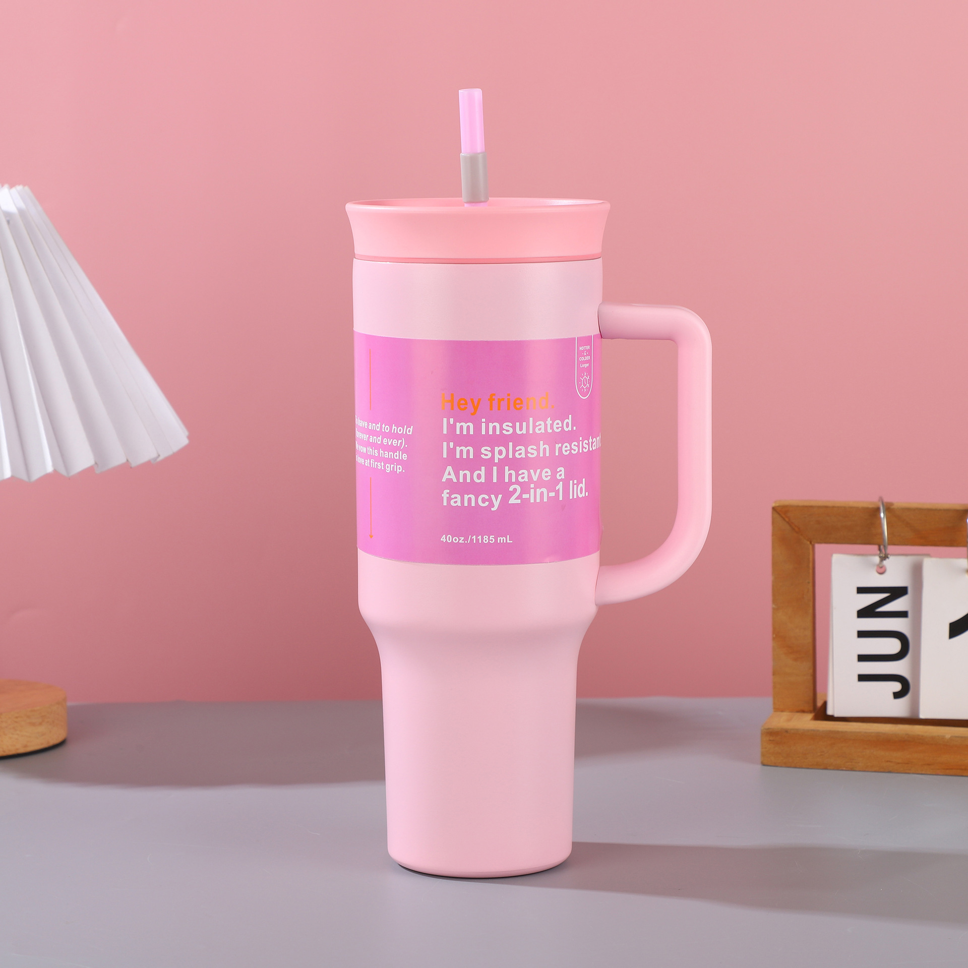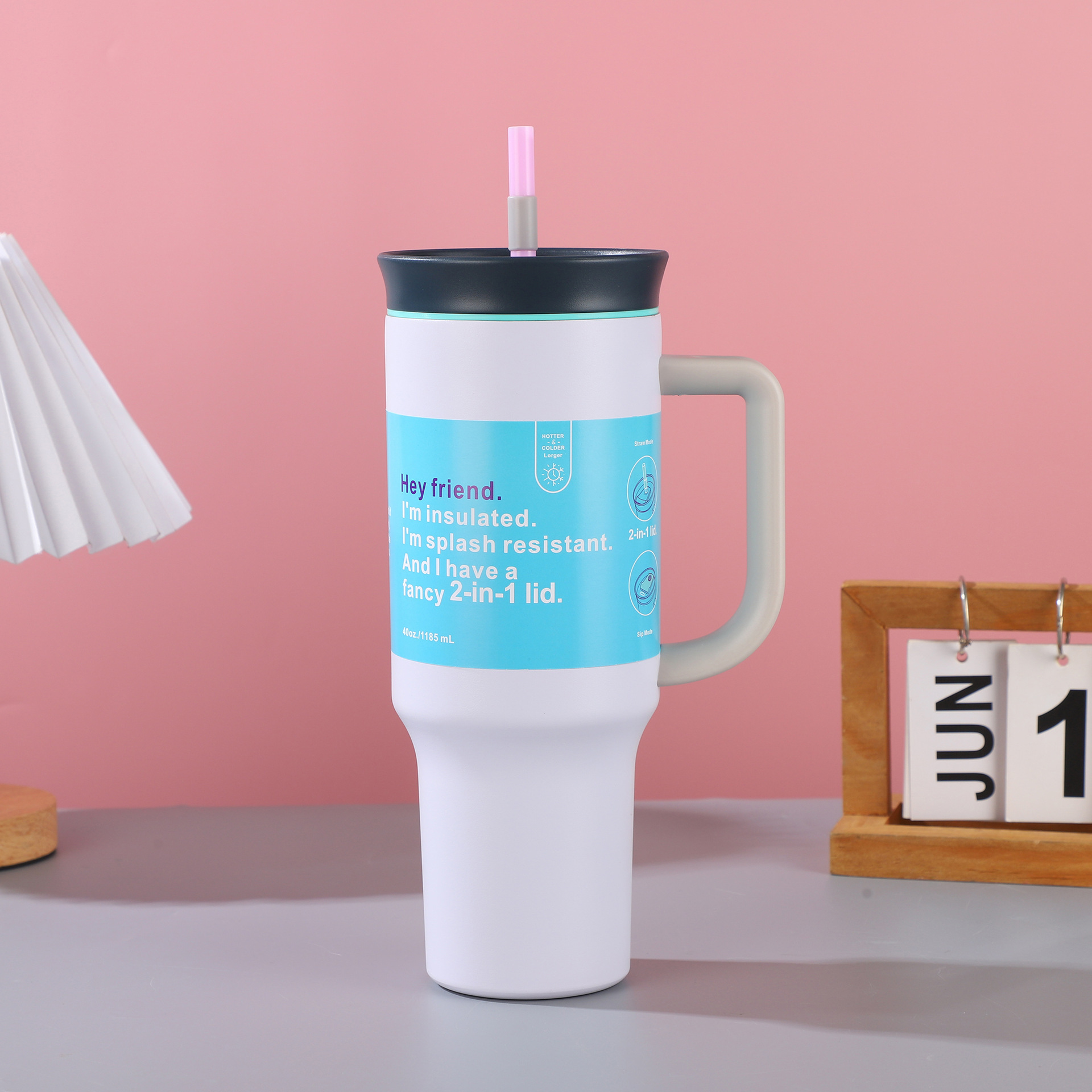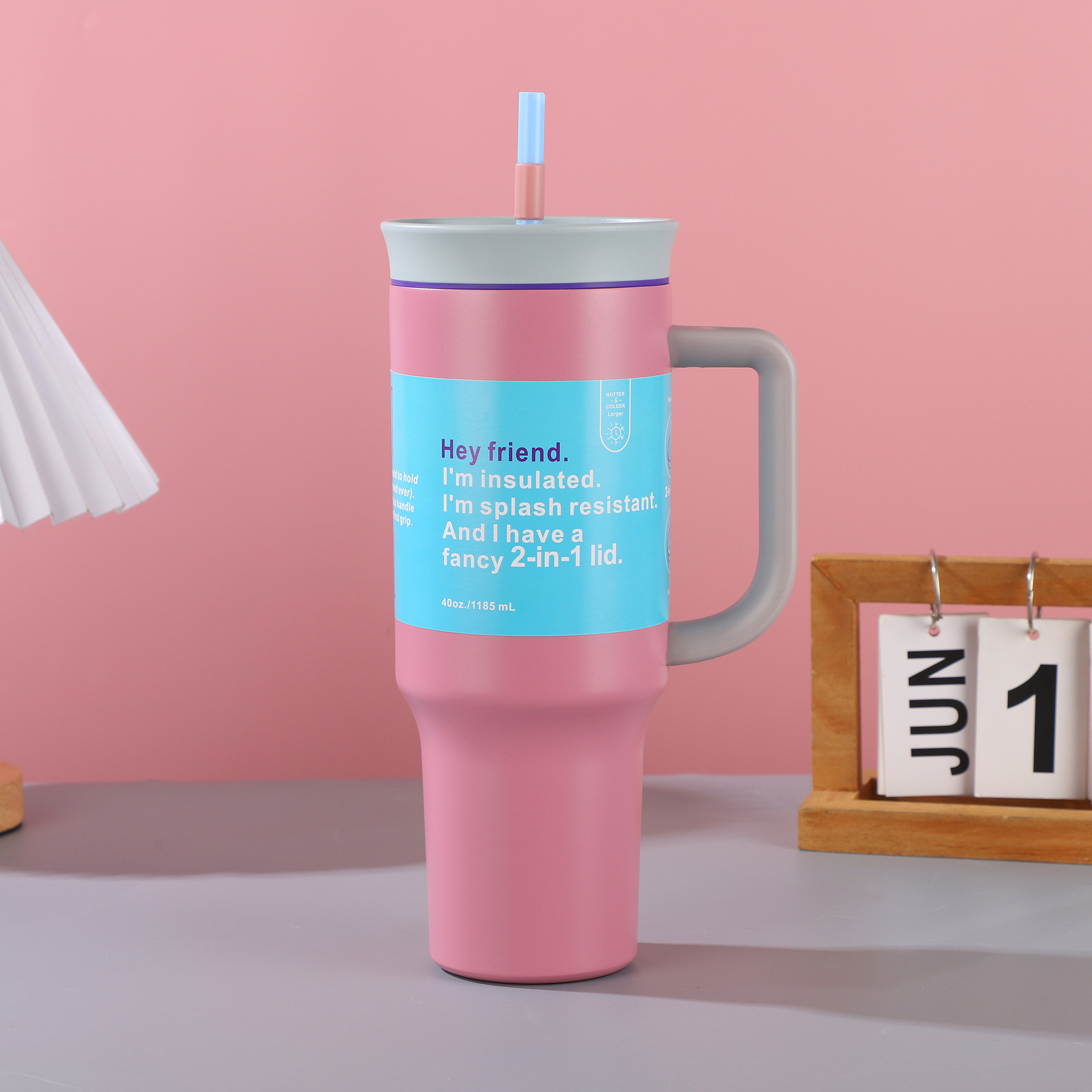 새로운 owala 같은 스타일의 보온병 컵 40oz 자동차 컵 스테인레스 스틸 자동차 손잡이 보온 및 냉각 얼음 컵